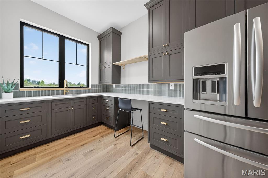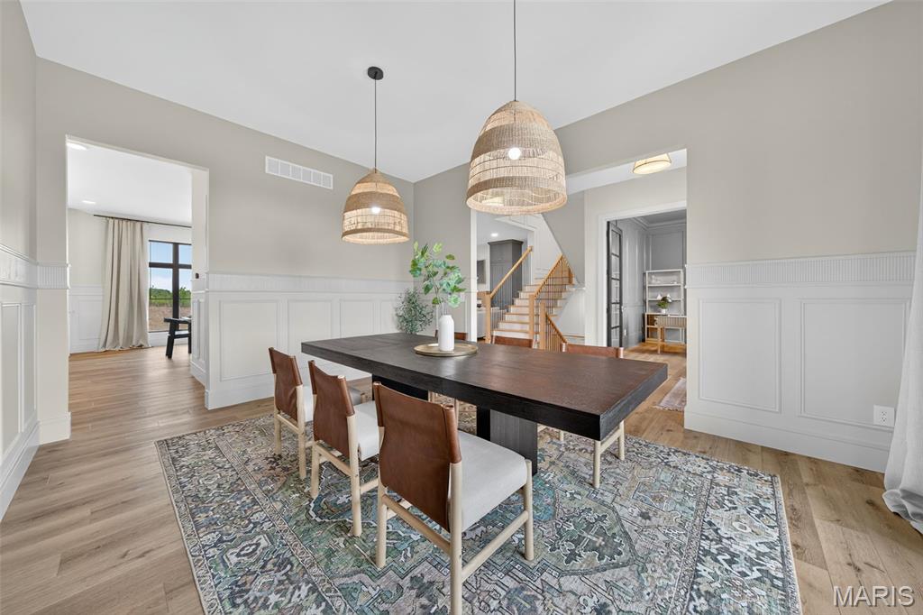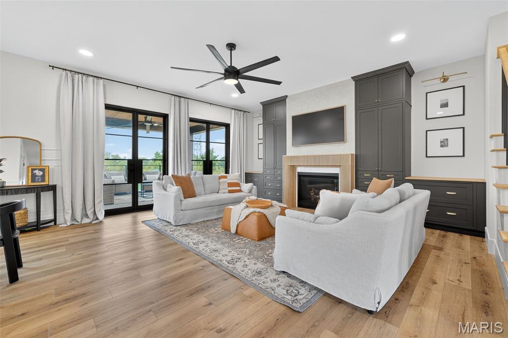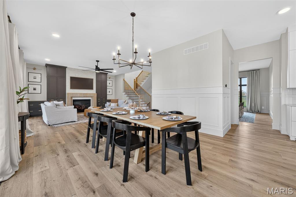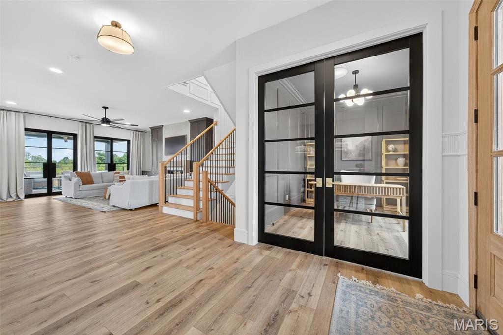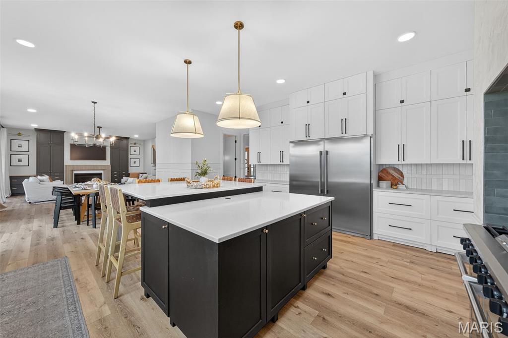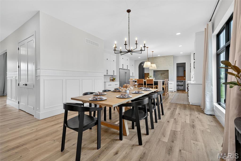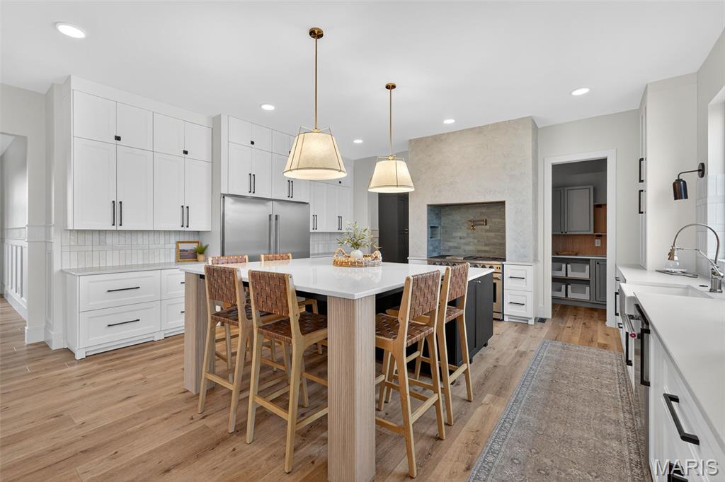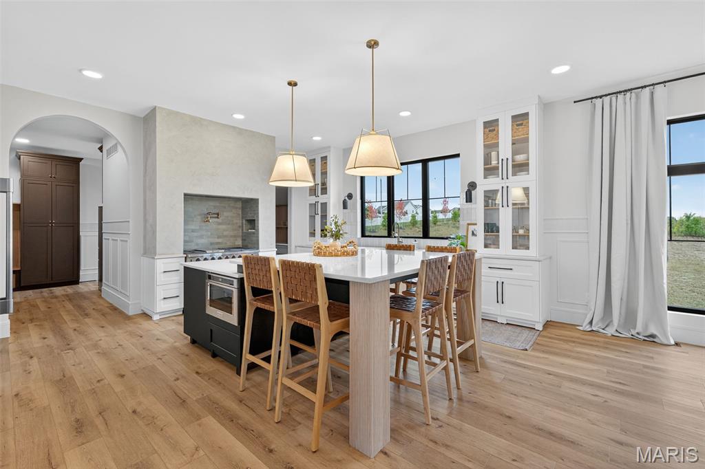 Experience luxury country living minutes from everything in this stunning two-story estate set on over 3 private acres. From the moment you step inside, soaring 10-foot ceilings & gleaming casement windows create an airy, light-filled atmosphere. The main floor flows effortlessly from your private office to a chef’s dream kitchen with custom cabinetry, massive 9-foot quartz island, luxury KitchenAid appliances, & high-end finishes including a Delta Brizo pot filler. Hosting the holidays will be a dream with multiple options for dining & butler's pantry for preparation & storage. The family room boasts a cozy gas fireplace, views of the property & access to the covered patio area for the ultimate relaxation. Upstairs, vaulted ceilings, additional guest bath & bonus entertainment room with a beverage & snack station provide the perfect retreat. The home offers three en suites, including a massive primary suite with its own gas fireplace, custom walk-in closet, & spa-like bath. Guest bedrooms feature 9-foot ceilings, 2 en suites & custom built-ins for both function & style. A second-floor laundry room adds convenience. The lower level is designed with future entertaining & multigenerational families in mind—complete with private garage, rough-ins for two additional baths & walk out to patio entertaining. Don't forget the playground! This home is the perfect blend of refined elegance & practical comfort, offering unmatched space, privacy & amenities in an ideal location.