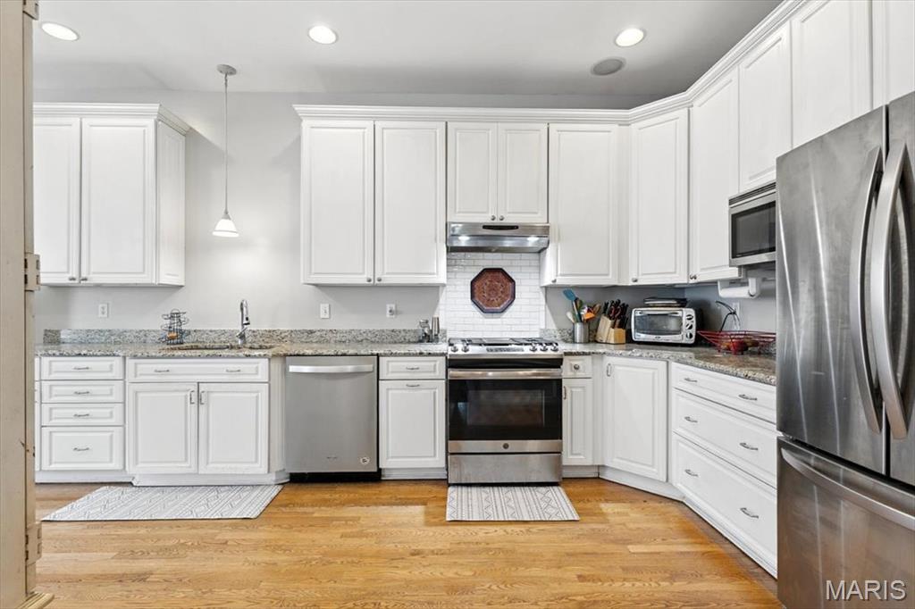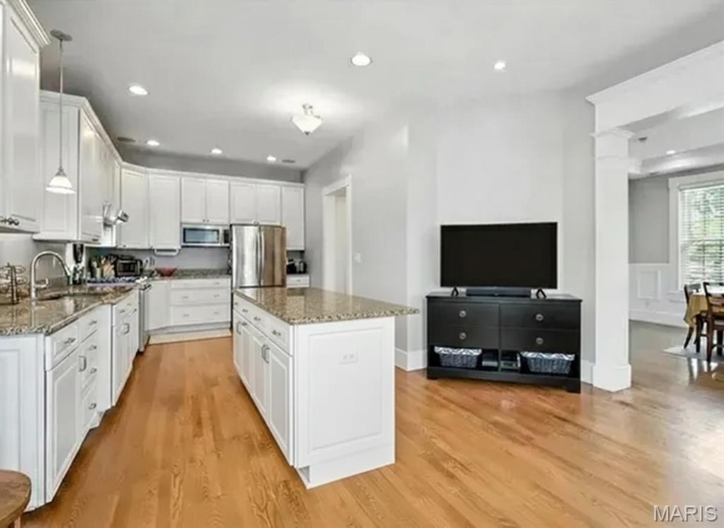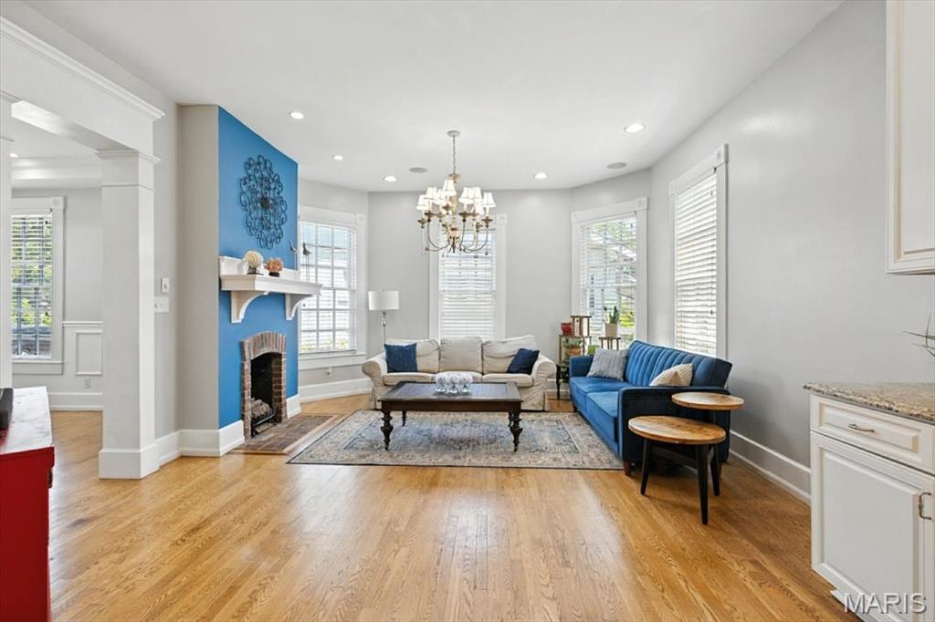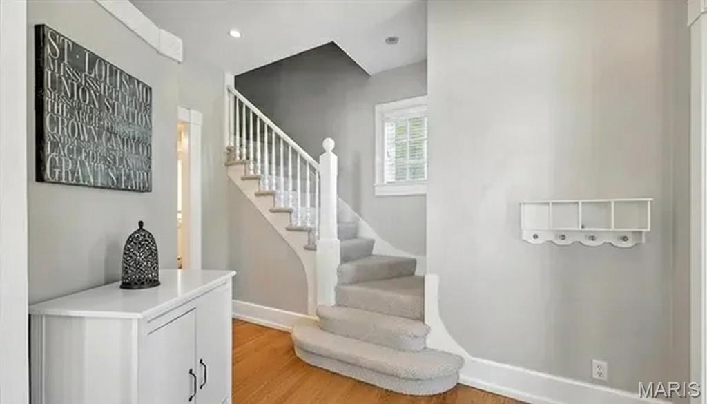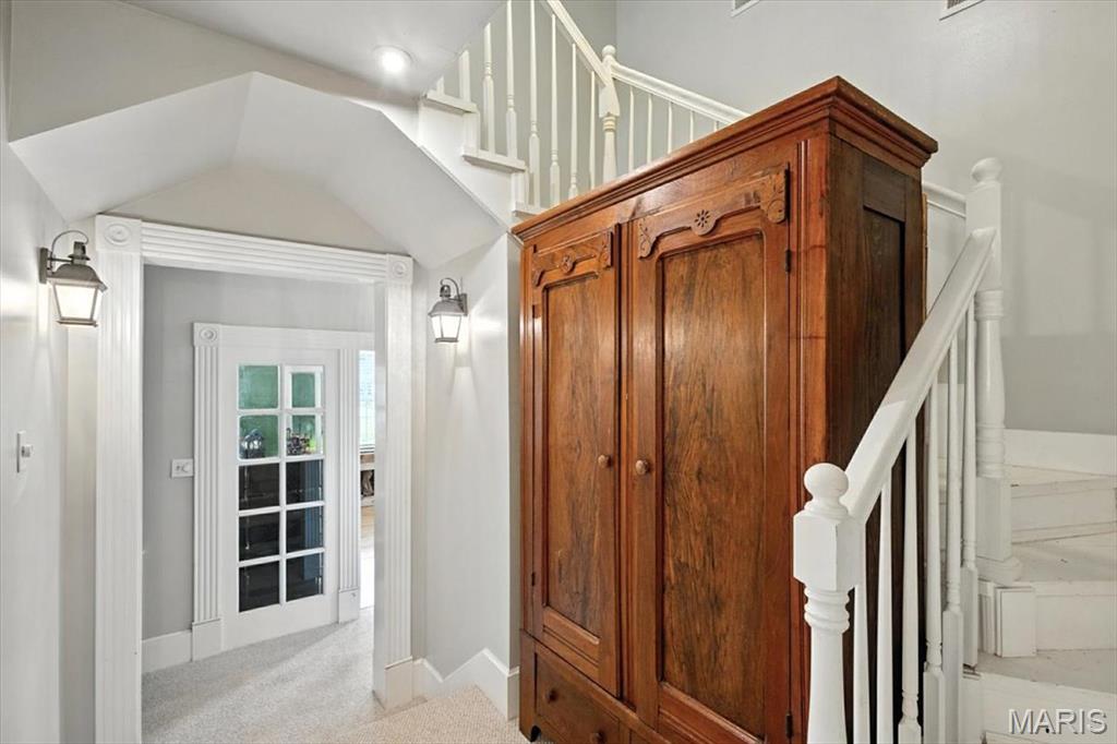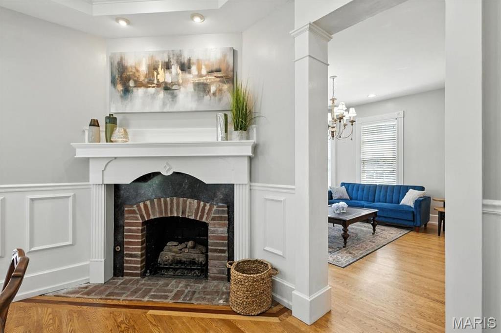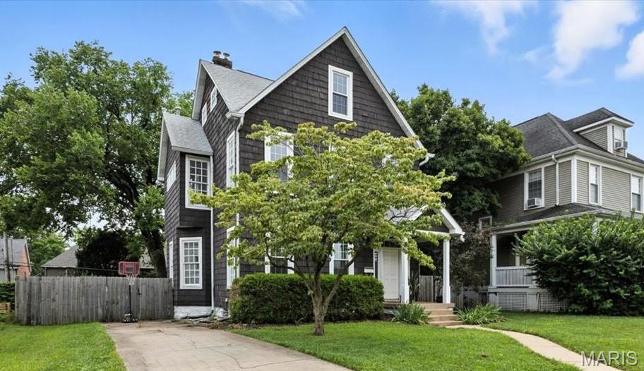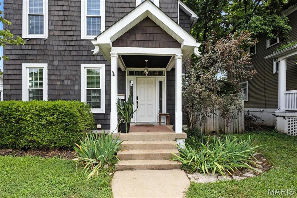 All aboard! Have front row seats to the past and the future with this Cape Cod charmer. This 1895 gem, wrapped in classic wood shake siding, sits across the street from the tracks in a no-horn zone — where neighbors love the quiet, rhythmic rumble of trains rolling past. This was a train town long before it became part of Route 66, and this home proudly carries that legacy forward. The original Maplewood train depot was just a block to the east, and the city's historic district is a block to the west. This property is the oldest on its block by five years and has witnessed tremendous change over the decades. The upcoming Great Rivers Greenway will be the next transformation, turning the front door into a gateway to an outdoor lifestyle. Imagine having a boundless connection to the metro area via trails — plus living mere blocks from Maplewood restaurants, parks, shops and activities! This home connects history, community and convenience all in one spot. Inside, timeless character meets modern comfort. The spacious, light-filled entry showcases period woodwork and fresh, neutral paint. Ten-foot ceilings and an abundance of windows fill the home with natural light, highlighting the hardwood floors found throughout most areas. Recessed lighting and ceiling speakers throughout elevate the living experience. The spacious kitchen features granite counters, stainless appliances and a large gas range, opening seamlessly to the family room and dining area. Gas fireplaces in the family and dining rooms offer glimpses into the home's 130-year history. Up the freshly carpeted staircase are two bedrooms and full bath; the larger room could easily be divided to create a fourth bedroom. From the landing, retreat up the winding wood stairs to the private primary suite on the third floor, where sunlight dances across the hardwood floors and the cross gable roof creates cozy, inviting spaces. Back on the main floor, exit out the side door to one of the larger lots in the city — fully fenced for privacy and perfect for pets or play. Enjoy the huge shade tree, large concrete patio, wood play set and storage shed, with plenty of grassy space left to garden or relax. The clean, bright lower level includes a laundry area, full bath, storage galore and walk-up access to the back yard. The zoned HVAC keeps every floor comfortable year round. With its large lot, open layout, and unbeatable blend of history and lifestyle, this Maplewood treasure isn’t just a house — it’s a home with personality, community, and a front row seat to the best of the past and the future. Updates: Downspouts, carpet and paint 2025; water heater 2024; roof 2019. Municipal inspection has been passed.