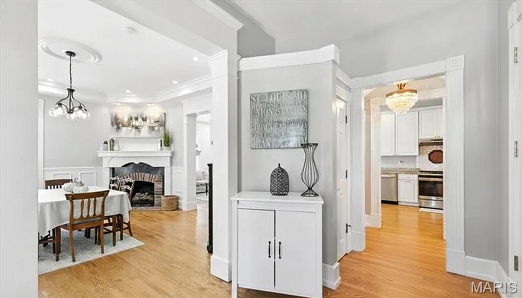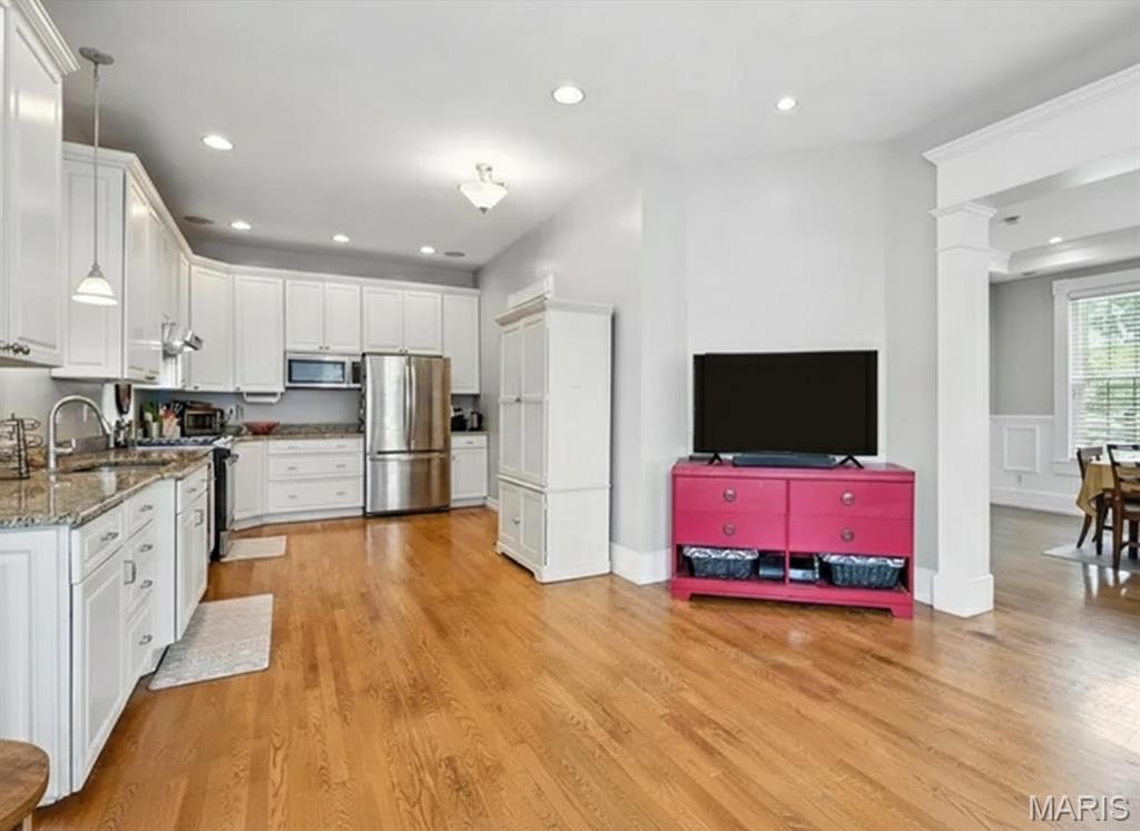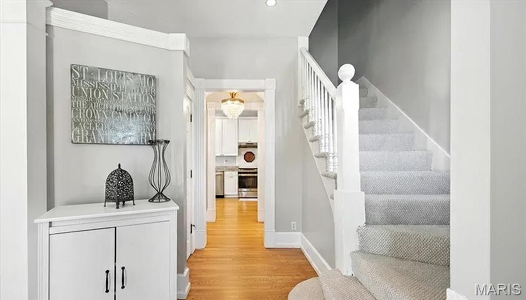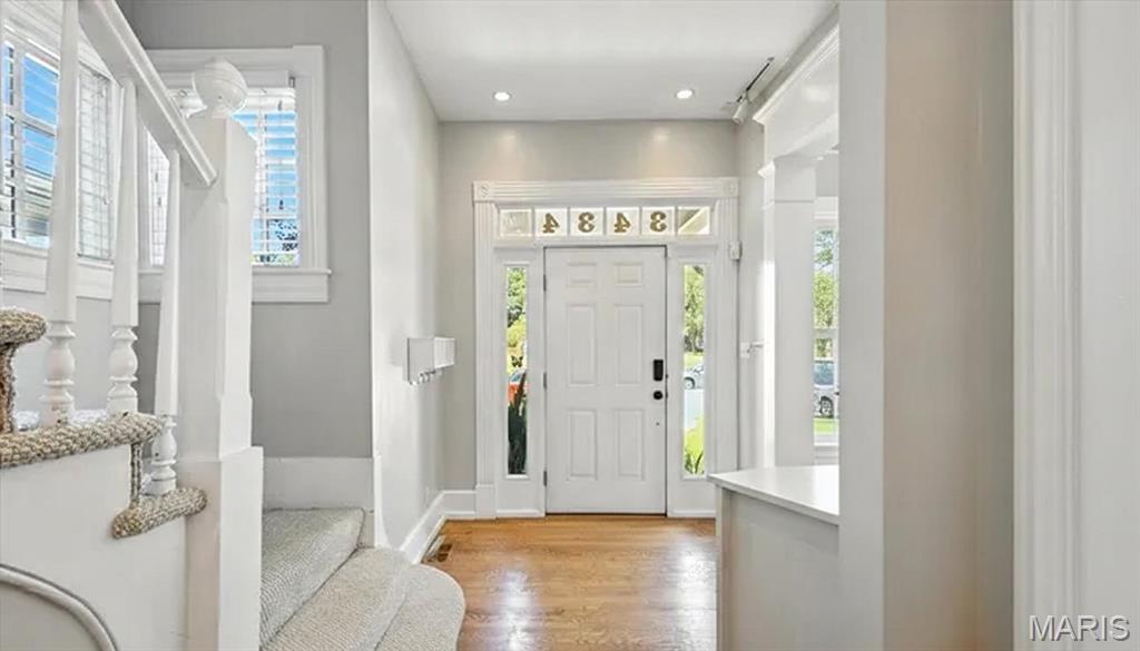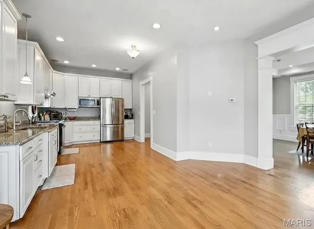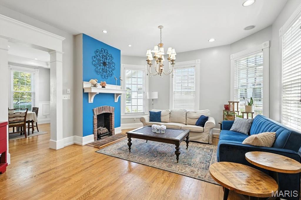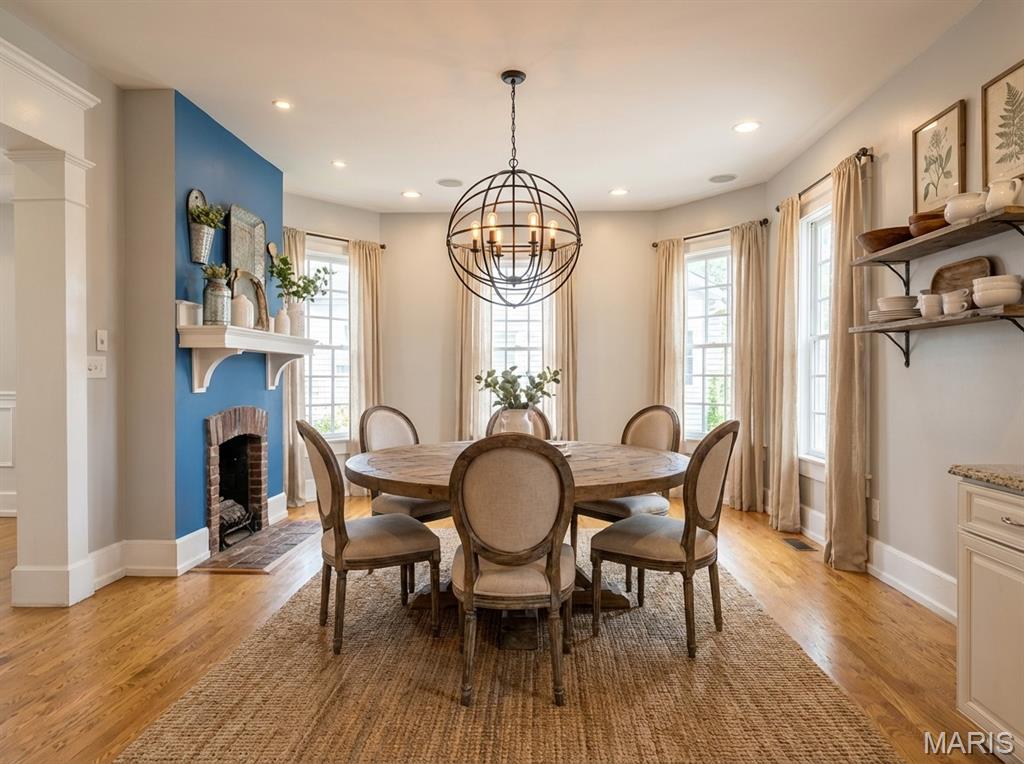 All aboard! Have front row seats to the past and the future with this Cape Cod charmer. This 1895 gem, wrapped in classic wood shake siding, sits across the street from the tracks in a no-horn zone — where neighbors love the quiet, rhythmic rumble of trains rolling past. This was a train town long before it became part of Route 66, and this home proudly carries that legacy forward. The original Maplewood train depot was just a block to the east, and the city's historic district is a block to the west. This property is the oldest on its block by five years and has witnessed tremendous change over the decades. The upcoming Great Rivers Greenway will be the next transformation, turning the front door into a gateway to an outdoor lifestyle. Imagine having a boundless connection to the metro area via trails — plus living mere blocks from Maplewood restaurants, parks, shops and activities! This home connects history, community and convenience all in one spot. Inside, timeless character meets modern comfort. The spacious, light-filled entry showcases period woodwork and fresh, neutral paint. Ten-foot ceilings and an abundance of windows fill the home with natural light, highlighting the hardwood floors found throughout most areas. Recessed lighting and ceiling speakers throughout elevate the living experience. The spacious kitchen features granite counters, stainless appliances and a large gas range, opening seamlessly to the family room and dining area. Gas fireplaces in the family and dining rooms offer glimpses into the home's 130-year history. Up the freshly carpeted staircase are two bedrooms and full bath; the larger room could easily be divided to create a fourth bedroom. From the landing, retreat up the winding wood stairs to the private primary suite on the third floor, where sunlight dances across the hardwood floors and the cross gable roof creates cozy, inviting spaces. Back on the main floor, exit out the side door to one of the larger lots in the city — fully fenced for privacy and perfect for pets or play. Enjoy the huge shade tree, large concrete patio, wood play set and storage shed, with plenty of grassy space left to garden or relax. The clean, bright lower level includes a laundry area, full bath, storage galore and walk-up access to the back yard. The zoned HVAC keeps every floor comfortable year round. With its large lot, open layout, and unbeatable blend of history and lifestyle, this Maplewood treasure isn’t just a house — it’s a home with personality, community, and a front row seat to the best of the past and the future. Updates: Downspouts, carpet and paint 2025; water heater 2024; roof 2019. Municipal inspection has been passed.