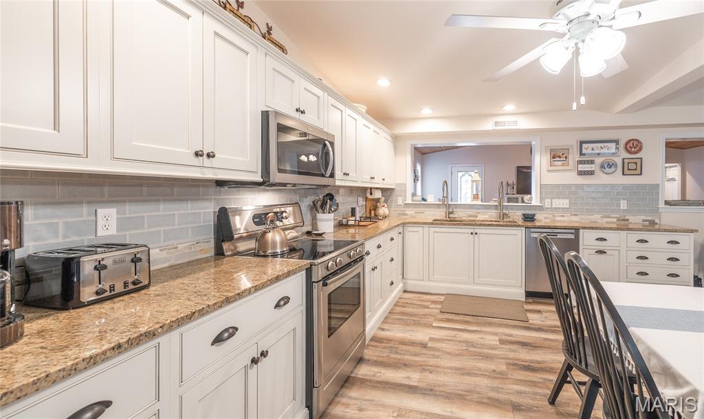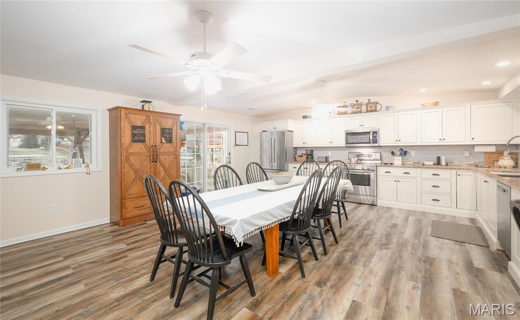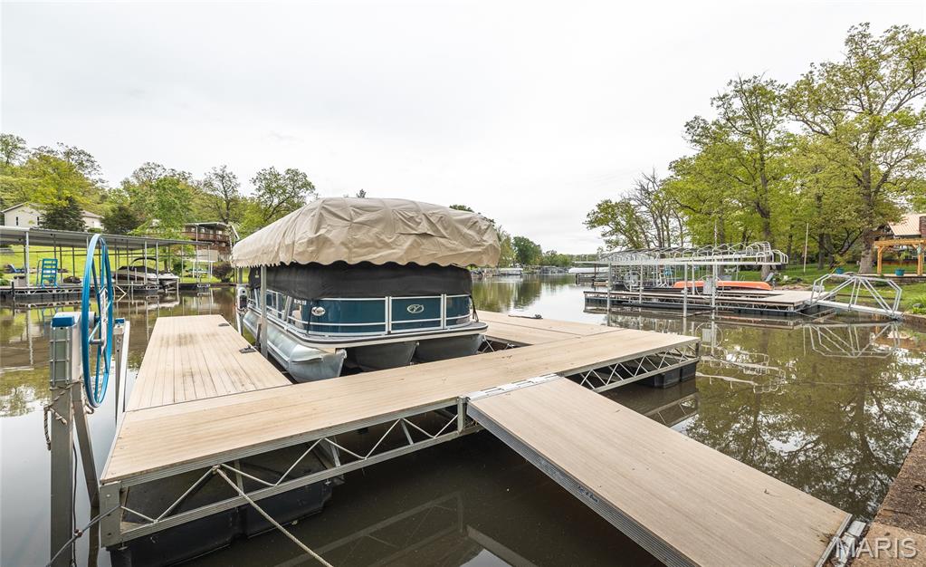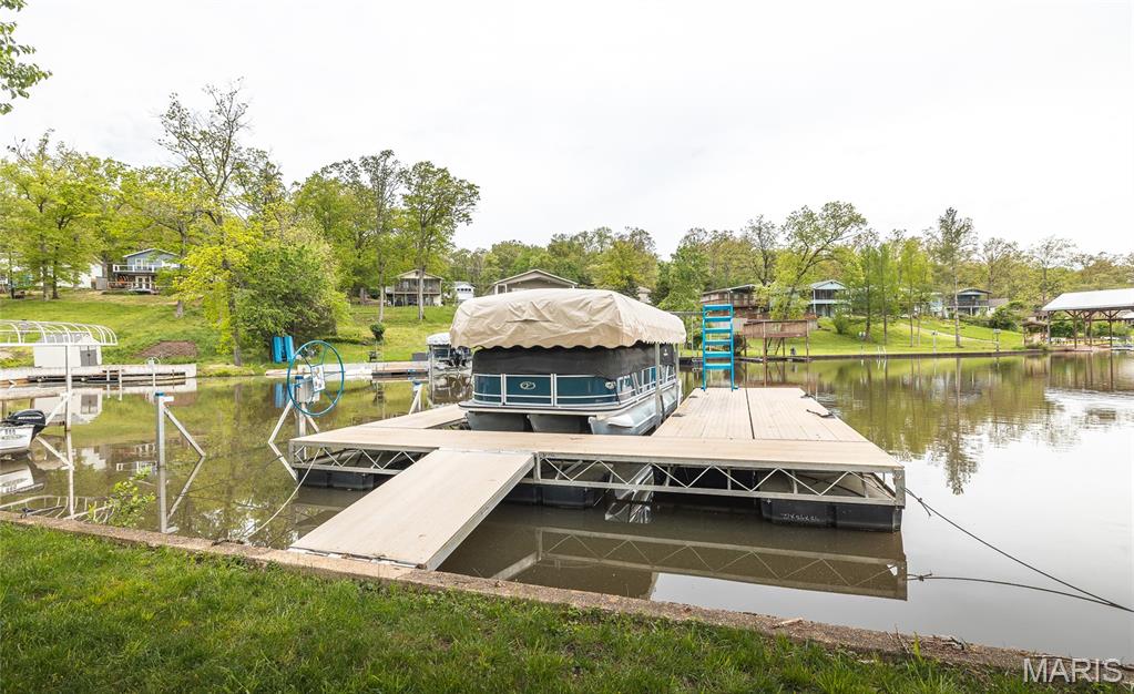 This house makes LAKE LIFE a breeze! Newer dock and lift and a level walk to the water make lake life easy! Situated close to end of cove 7, you can easily swim right off the dock or launch kayaks and canoes. The main floor includes a HUGE eat-in kitchen with all the counter and pantry space you need to feed your crowd. Also on this level is your primary suite with solid surface vanity, bidet, walk in shower and walk in closet. A large laundry/storage room is on this level as well. From the kitchen, the sliding glass doors lead to a large, covered deck overlooking a fire pit and the lake. Enjoy the lower level wood burning fireplace in the living room. This level also features LOTS of storage, a half bath and walks out to the yard. The upper level has a full bath and 3 nice sized bedrooms. One bedroom has a bonus room withwindows all around so guests and family can enjoy the view and stairs to exit to yard. The 3 car detached garage has space for your vehicles, golf cart and lake toys. Situated near the end of a cove, there is still plenty of water depth, yet it is easy to swim, float or fish right off your own dock. The house includes many updates and upgrades incuding granite counters, commercial grade flooring and top of the line appliances. Indian Lake is 326 (+/-) acres and allows for boating, fishing, skiing, tubing, swimming, kayaking and more! Community has full service marina, beach/playground area, pickleball/tennis court (recently refurbished), basketball court and volleyball area. The community center hosts a variety of activities including potlucks, bingo, trivia nights, poker runs and other events. It can also be rented for private events.