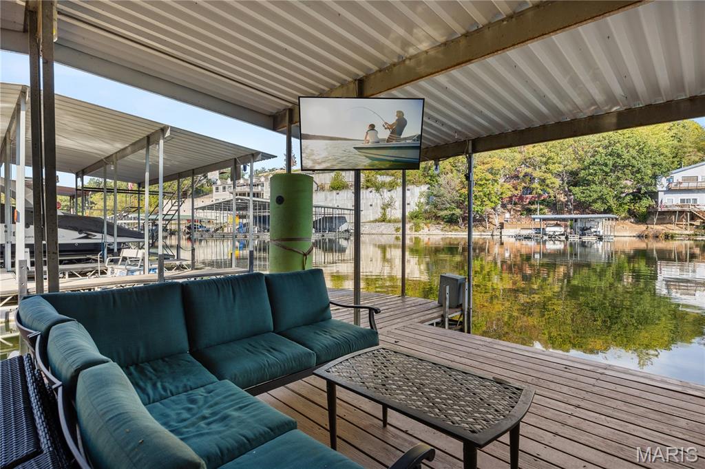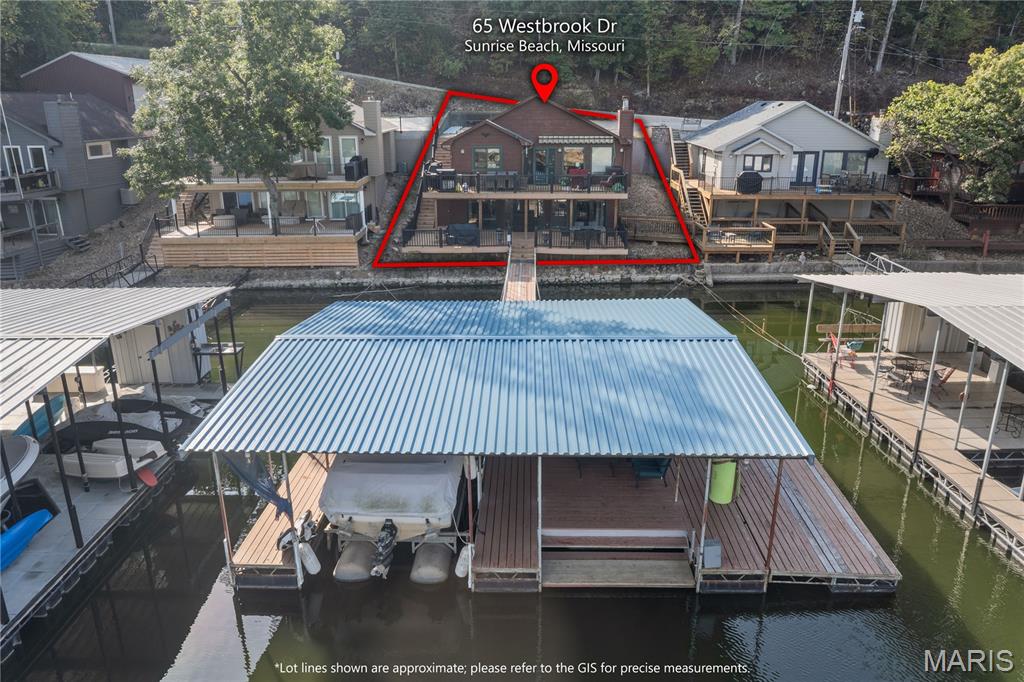 Lakefront Living with Gentle Lot & Deep Water in Sunrise Beach! Your search is over—this charming 3 bd / 3 bath ranch-style walkout home checks all the boxes for an ideal lake retreat or full-time residence. Perfectly positioned at MM25 in a quiet, no-wake cove w/deep water & a wide lake views, this home offers serenity & unbeatable lake access. The main level features an open floor plan w/beautiful hardwoods, cozy fireplace, Pella sliding doors, Trex decking, updated kitchen w/granite countertops, & modern finishes. Also on the main level: 2 bedrooms & 2 bathrooms. Lower level offers a 3rd bedroom & bath, plus a family room w/ laundry area. Step outside to a spacious lower deck, & from there, 3 easy steps to the dock walkway leading to private 1-well dock w/swim platform & infinity steps. 2nd well filled in & can be easily converted back. Additional highlights: Concrete parking pad for 4 vehicles, ready for a future detached garage, well-kept neighborhood, Minutes by boat or car to waterfront restaurants, & just a short drive to both Camdenton & Lake Ozark. Whether you're looking for a peaceful getaway or a home that keeps you close to lake fun, this one offers it all!