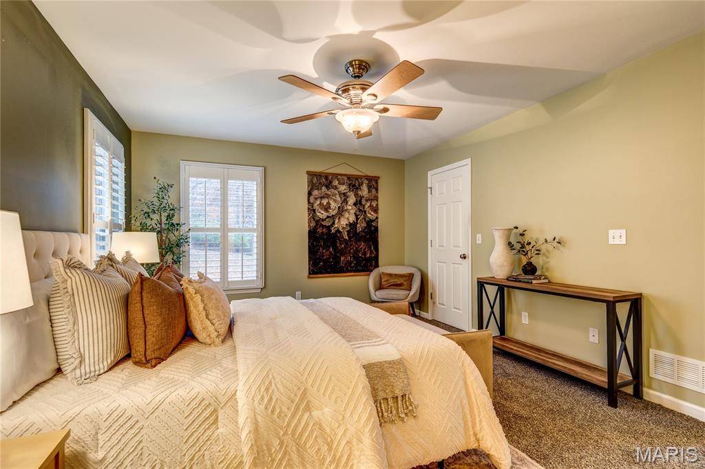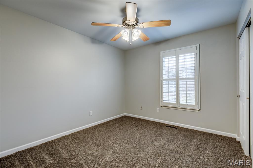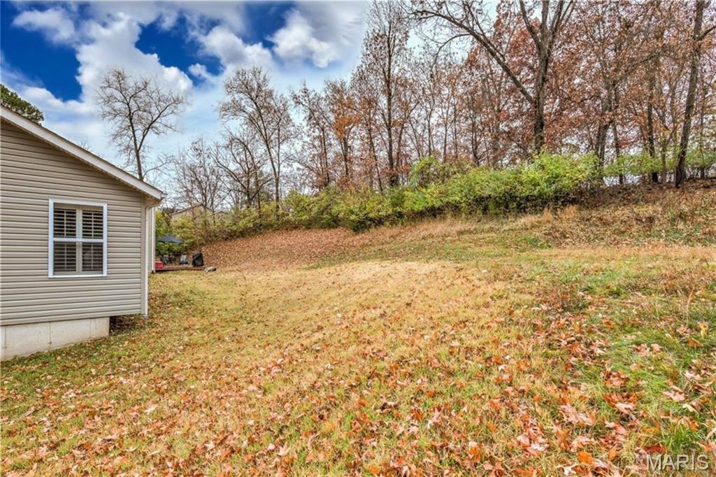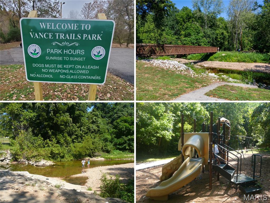 Amazing split foyer built in 2009 with OPEN VAULTED floor plan, situated on dead-end street backing to QUIET WOODS. Close to Fishpot Creek, 35-acre Vance Trail Park, playground and scenic trail. Classic curb appeal with low-maintenance vinyl siding/soffit/fascia, Paladian window accent, tuck-under OVERSIZED 2-CAR garage with coach light, COVERED PORCH and leaded glass entry door. 2-YEAR OLD ROOF and gutters! Soaring 2-story entry foyer opens to vaulted great room with NEW CARPET. Kitchen features WOOD CABINETS, stainless appliances: microwave, dishwasher and smooth-top range (refrigerator stays). Dining area sliding door steps out to SECLUDED BACKYARD - ideal for relaxing and gardening. Primary suite features WALK-IN CLOSET and tub/shower combo. Secondary bedrooms share hall bath with tub/shower combo. Downstairs TONS OF STORAGE and laundry area (washer and dryer stay) - easy future finish with egress window and rough-in bath. Newer water heater. Charter wiring. Easy access to Highways 141/44, near popular Castlewood State Park trails and Meremec River fishing. TOP-RATED SCHOOLS.
