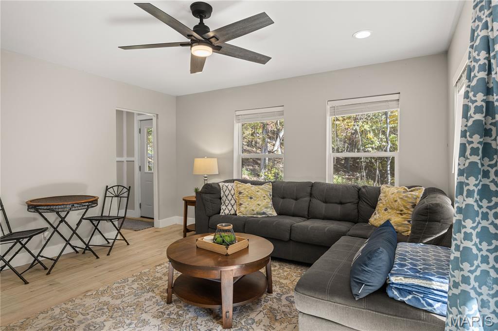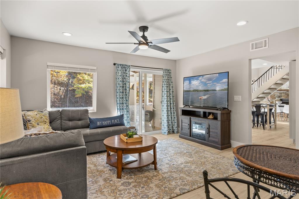 Now Available! This stunning reverse 2-story lakefront home on MM 3 in Eldon, MO has been completely remodeled in 2024 and is ready for you to move right in! Offering 4 bedrooms, 3 baths, and 1,865 sq ft of beautifully updated living space, this home combines modern luxury with serene lake living. Every detail has been thoughtfully redone—new roof, siding, plumbing, drywall, flooring, paint, light fixtures, and HVAC. The modern kitchen features brand-new cabinets, quartz countertops, a stylish backsplash, and stainless-steel appliances. All bathrooms have been fully renovated with new fixtures, and the decks have been refurbished and stained, including new decking on the 1-well dock. Enjoy vaulted ceilings, abundant natural light, wood floors, and both covered and open decks overlooking the quiet cove teeming with wildlife. Located at the end of a private road with no HOA, this property is ideal as a full-time residence, vacation retreat, or investment opportunity. Conveniently close to Village Marina’s popular bar & grill, tiki bar, pool, and rentals, this lake escape truly has it all—come see it today and start living the lake life!