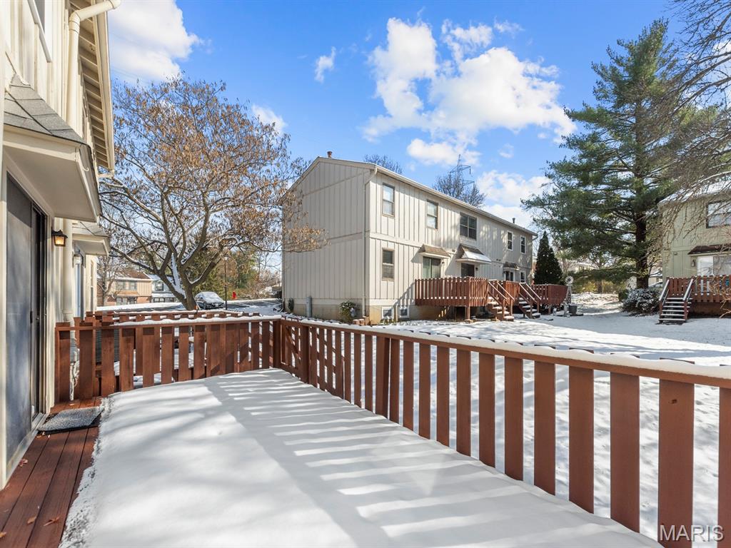 Great price for an updated 2 bd/2.5 bath condo in the quiet, sought after Hidden Meadows community—perfect for an affordable, amenity filled lifestyle. The inviting main level features a spacious living room and dining area that flow into an updated kitchen w/a center island. Sliding doors open to an expansive private deck overlooking a peaceful green space, ideal for relaxing or entertaining. The second floor offers a generous primary suite with a walk-in closet and full bath, along with an additional bedroom and full bath. A finished lower level with built-in cabinetry provides a perfect spot for a home office with desk space, lots of storage, a hobby room, or media area. Hidden Meadows offers resort style amenities, including a pool, tennis courts, a basketball court, and a clubhouse. Two private parking spaces situated directly in front of home convey with condo. Additional updates include a newer washer, dryer, and refrigerator that remain in home, newer air conditioning, plantation shutters, and some new windows. Plentiful guest parking nearby. Move-in ready and impeccably maintained—this is condo living at its best