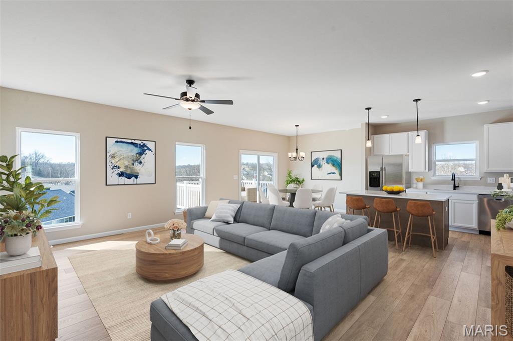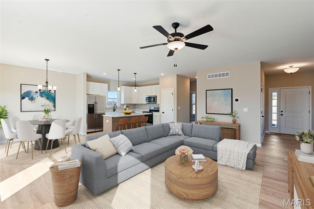 Quick Close Inventory Home - New and ready for January Move-in: Bright and modern 3 bedroom, 2 bath home in the heart of Washington, Missouri. The open floor plan, 9' ceilings, quartz countertops and upgraded flooring immediately set the tone. The kitchen and living spaces flow easily, giving you the perfect setup for everyday living and effortless entertaining. The primary suite offers great natural light and a private bath, while two additional bedrooms provide flexibility for guests, an office, or hobbies. A walk-out basement gives you room to expand—finish it for even more living space or enjoy the extra storage as-is. The 2-car garage adds convenience and makes coming and going a breeze. Modern updates, great design, and a fantastic Washington location make this home a strong contender in today’s market. If you want a fresh, comfortable home that’s easy to love, this one delivers. Why would you waste money on renting when you could own a new home built by Northern Star Homes? Located close to schools, parks, and local amenities, this home is an excellent opportunity to start your homeownership journey. Pricing includes 3 bedrooms, 2 baths, 2 car garage (expanded w/ added depth for larger vehicles) , walk out lower level, covered deck off the breakfast room, nine foot ceilings throughout the main floor and a 9' basement pour show off high ceilings. The kitchen includes an island with plenty of seating. The master suite includes shower with glass enclosure and seat, and walk in closet. Zero step entry is an added bonus (no steps from the garage) If you are having trouble finding the home that checks all the boxes, build new with Northern Star Homes at Stone Bridge in Washington. Choose your home site, floor plan, and choice of cabinets, flooring, paint and countertops. Building is easy and VA/ FHA buyers are welcome at Northern Star Homes. Washington is a fantastic place to call home with a thriving downtown, parks, walking trails, riverfront, and shopping. Northern Star Homes - your hometown builder.