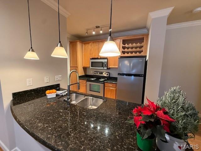 IMPROVED PRICE! Don't miss this sleek, move-in ready second floor condo with in-unit staircase leading DIRECTLY from the unit to your private, oversized attached garage! Conveniently located with easy access to Hwy 40/64 and Tilles Park, the 1-bedroom, 1-bathroom corner unit has been freshly painted, with spacious, airy rooms. The open floor plan features 9-ft ceilings and crown molding in the living room and kitchen. With its breakfast bar and pendant lighting, the kitchen includes 42" maple cabinetry, stainless steel appliances, granite countertops, pantry closet and in-unit laundry with a stackable washer and electric dryer. The bedroom suite offers brand new carpeting, a sunny bay window with window seat, ceiling fan and large walk-in closet. The adjoining bath features maple cabinetry and vanity with granite countertop and a combination shower/tub. The oversized 1-car garage includes an extra storage closet and a newer garage door. The unit is located near the picturesque McKnight Crossing pool--the perfect spot to relax, grill and entertain. Water, sewer, trash, some insurance, landscaping, snow removal and pool maintenance are part of the monthly HOA fee, and the community features its own garden and pet-walk area. With schools, restaurants and retail nearby, this unit is irresistible!