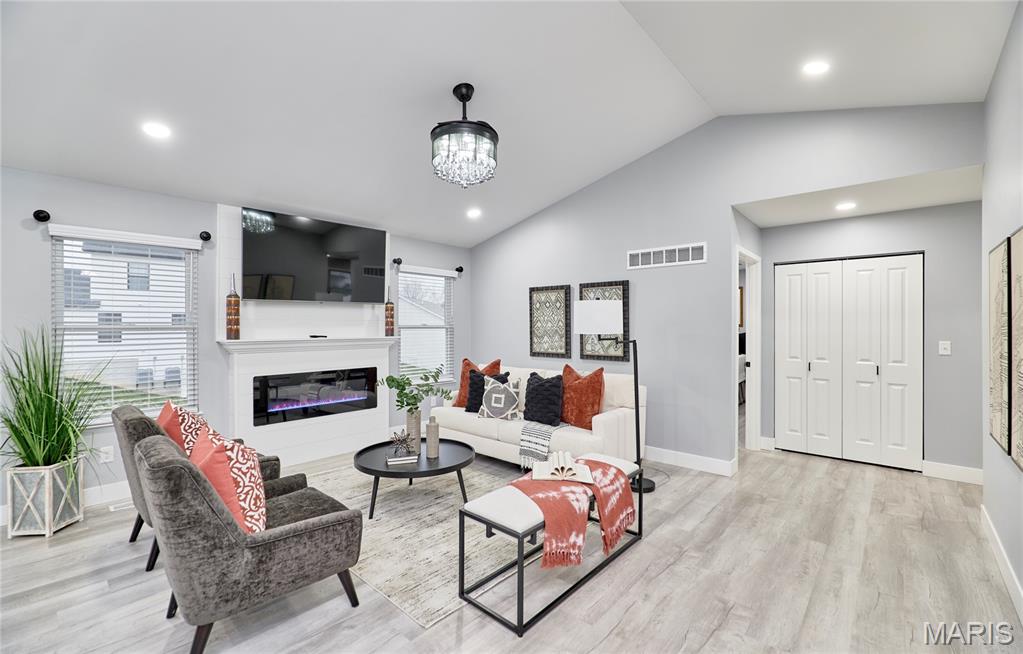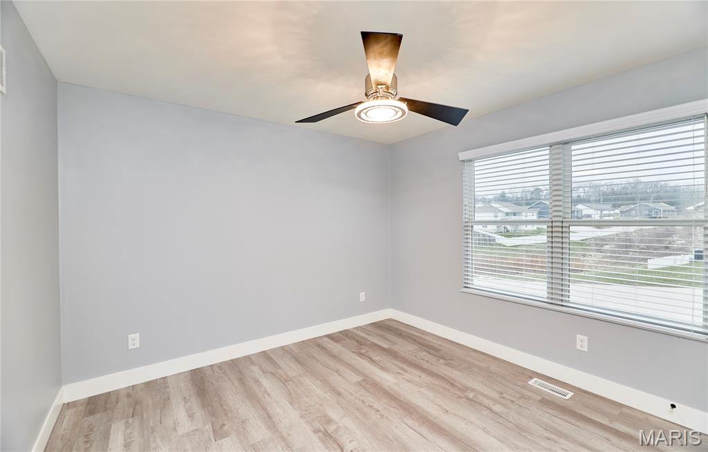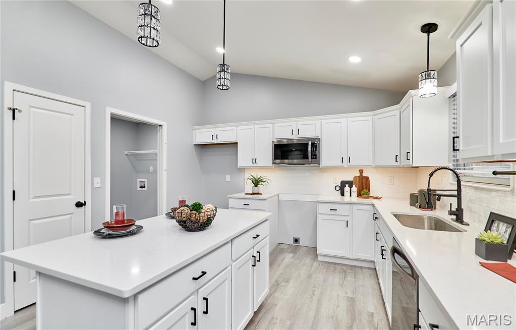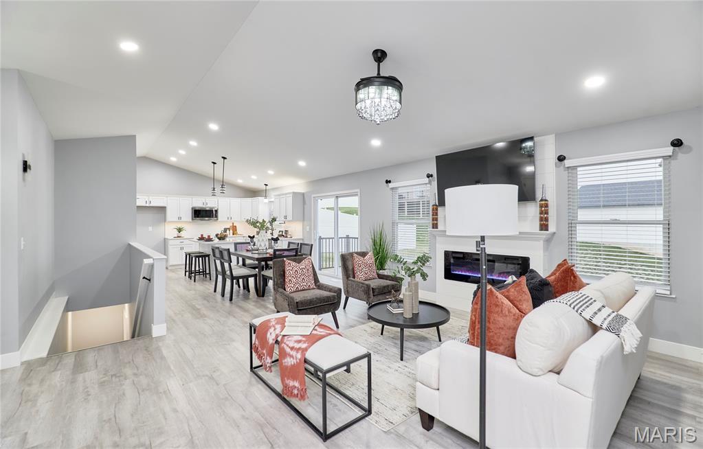Welcome home to this beautifully designed 3-bedroom, 2-bath home with vaulted ceilings and an open, airy floor plan perfect for everyday living and entertaining. Stylish LED lighting, matte black fixtures, and quartz kitchen countertops add a modern touch throughout. The primary bedroom is a relaxing retreat featuring crown molding with soft LED trim lighting, a walk-in closet with extra storage, and a spacious walk-in shower. Enjoy the ease of a main-floor mudroom/laundry and a secondary bedroom with a fun, color-adjustable LED Bluetooth ceiling fan. The walk-out lower level offers rough-in plumbing and endless potential to make it your own. Step outside to a composite deck and a 12x12 concrete patio, ideal for relaxing or hosting guests. With smart features, a Bluetooth-enabled 2-car garage, and a location close to shopping, this nearly new 2-year-old home offers comfort, style, and convenience.