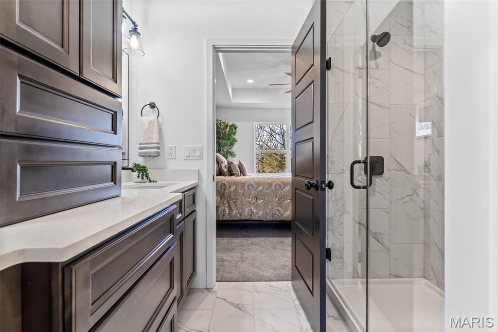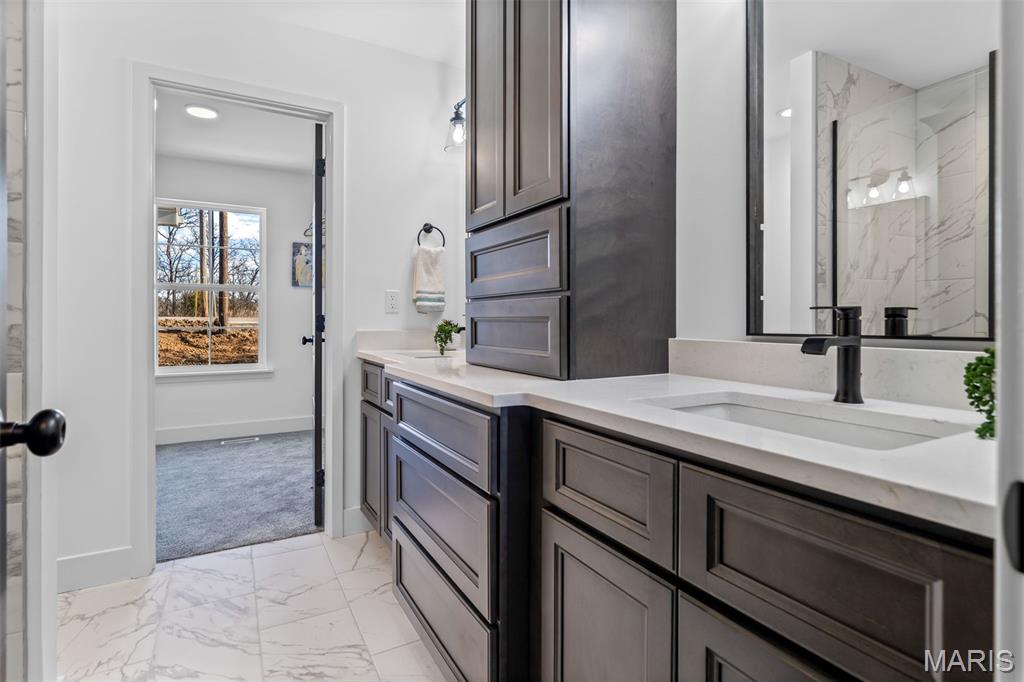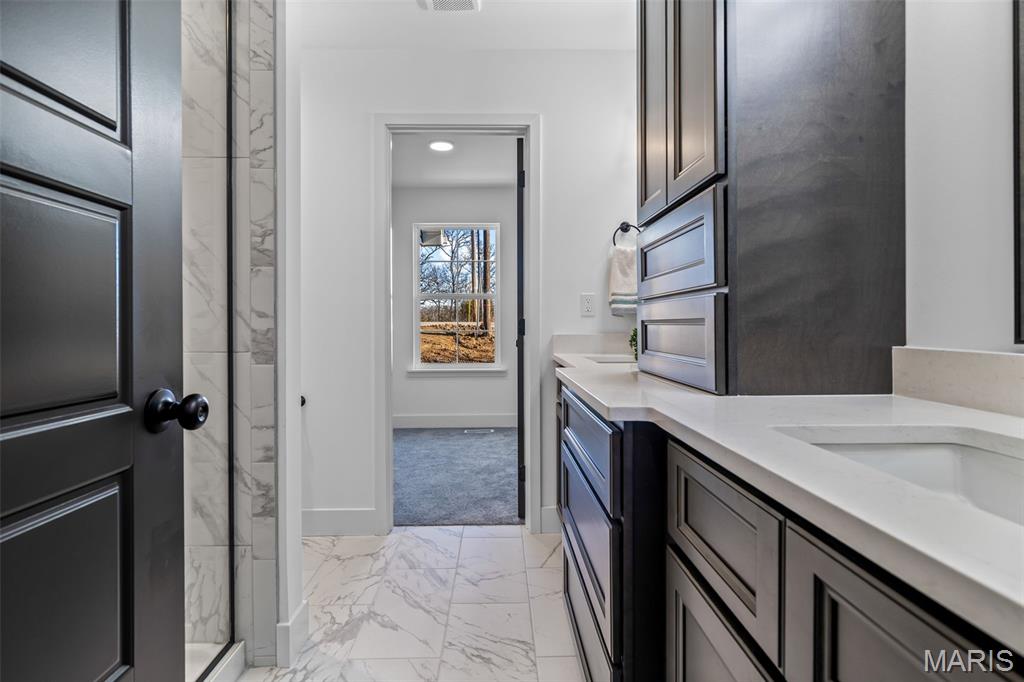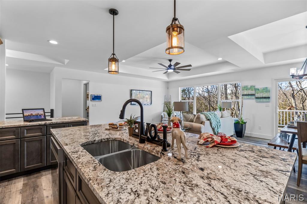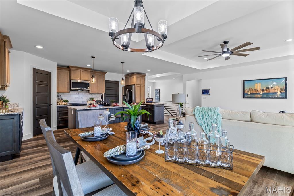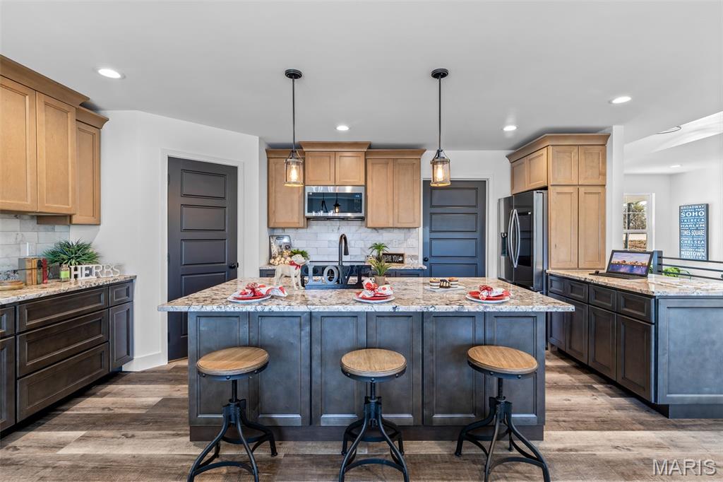 New construction ranch JUST completed and move-in ready! This craftsman quality 3 bedroom, 2 bath home sits on a spacious half-acre lot and features an open, thoughtfully designed layout with upscale finishes throughout. The kitchen offers a large island with breakfast bar, upgraded maple cabinetry with soft close doors and drawers, granite countertops, stainless smart appliances, backsplash, and a walk-in pantry. Tray ceilings and 8-foot ceilings add to the bright, open feel! The primary suite includes a private bath with double bowl vanity, and main floor laundry adds convenience. A walk-out basement provides excellent future living space with an egress window and rough in bath, as well as a below-grade concrete storm shelter. Enjoy outdoor living on the 12x14 composite deck overlooking a wooded backdrop. The oversized finished 3 car garage features 8 foot tall doors, insulated doors, an electric car charger, and extended driveway space. A quality built home offering space, functionality, and modern comfort!!