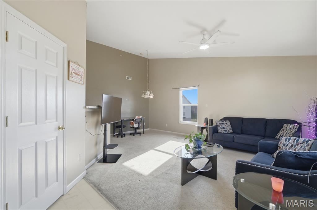 This upper-level 2-bedroom, 2-bath condo with vaulted ceilings offers comfort, convenience, and a fantastic location. Inside, you’ll enjoy a bright and open layout with soaring ceilings that create an airy, inviting feel. Features include in-unit laundry, stainless steel appliances, double sinks in the primary suite, and a private deck with a peaceful outdoor view. This condo provides a wonderful opportunity to personalize and update to your own style. Storage is plentiful with a private storage locker plus additional garage for parking and storage. Perfect for anyone seeking low-maintenance living with room to make it their own, this home is part of a community rich in amenities including a pool, clubhouse, playground, fishing pond, picnic pavilions, basketball court, and more. Ideally located near shopping, dining, and commuter routes, this condo offers easy living in a highly desirable area. Don’t miss your chance to make this one your own! Seller is a licensed real estate agent in the State of Missouri.
