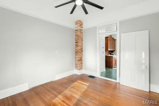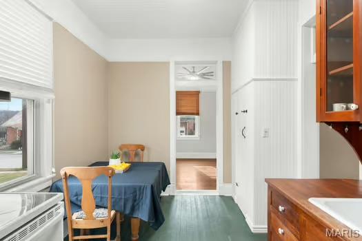 Welcome home to this quaint and character filled 1.5 story ranch home in the heart of residential Hermann, Mo! Main floor welcomes you with soaring ceilings, new fans, hardwoods and crown molding details throughout. Living room flows into dining room that could be used as an office, reading or play area. Eat-in kitchen features custom built cherry wood cabinet built ins and pantry. Primary bedroom is adorned with beautiful hardwoods, 10ft ceilings, and brand new updated fan! Spacious bathroom with new LVP flooring finishes this floor. Convenient main floor laundry is located in enclosed porch off dining room. Upstairs you’ll find a massive bedroom with hardwood flooring and large walk in closet or utilize as an extra living space. You’ll love the fenced yard with raised garden beds, wood working shed and additional storage shed. This home is waiting for you to call it yours! Walking distance to school, and just a minutes drive to all of what downtown Hermann has to offer! This home is NOT zoned for STR’s.