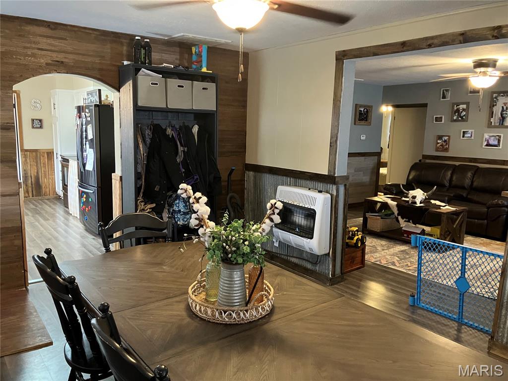 Country living on 3.9 acres just minutes from town. Take a look at this three-bedroom, two-bath vinyl-sided home with a formal dining room that has a wood-burning fireplace in the family room with a bonus of an additional living room. Newly updated home of 2031 sq. ft. with plenty of room to grow. Central heat and air with appliances. There are two wells on the property, one for the home, one for the shop. The roof is approximately two years old. 2294 sq ft. Industrial shop with one and three-phase electric. Property is fenced with pipe and barbed wire. Don't let this opportunity pass you by; this type of property on paved roads with small acreage does not come along very often. "Motivated Seller".
