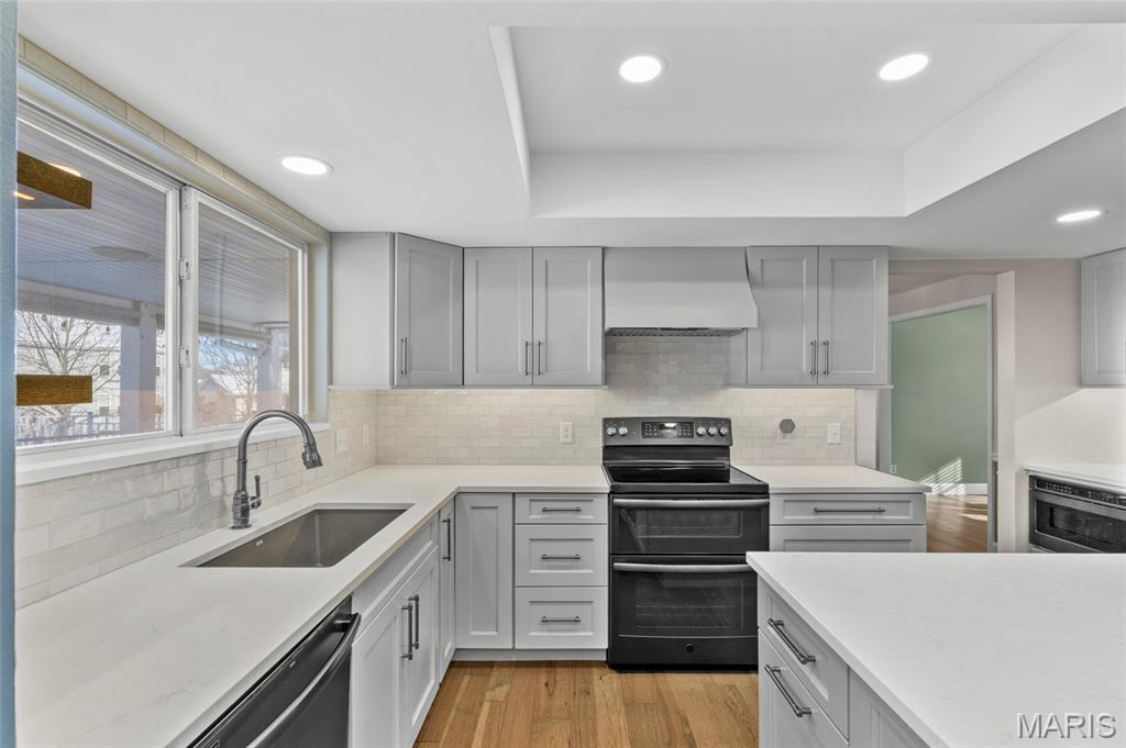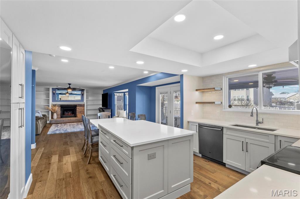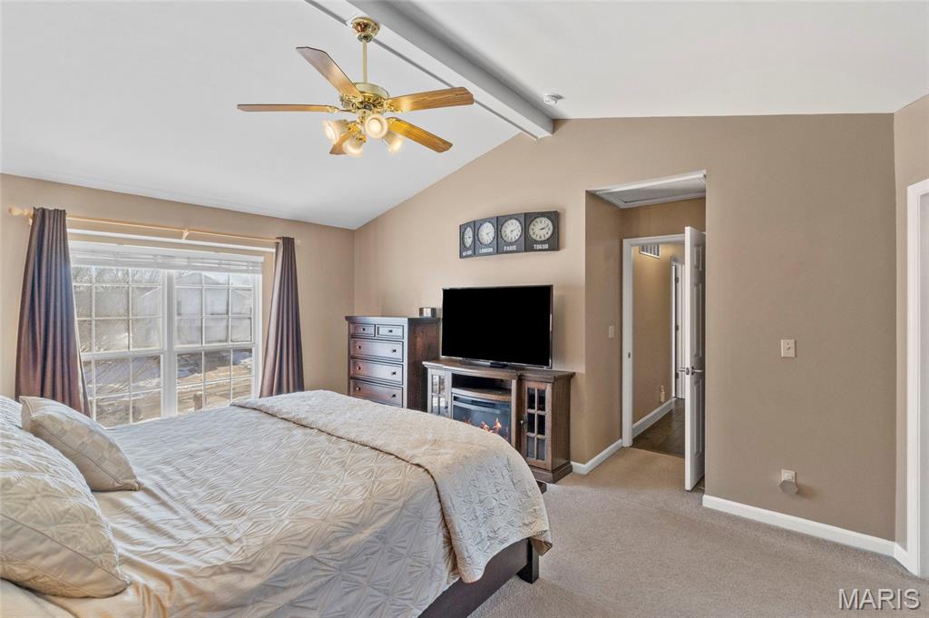 Welcome home to this beautifully updated 5-bedroom, 4-bath two-story home nestled on a quiet cul-de-sac lot with a resort-style in-ground heated saltwater pool and an oversized 3-car garage. The striking exterior blends brick and siding with enclosed fascia and soffits, a full irrigation system, brick mailbox, and an inviting covered patio overlooking the pool. Inside, you’ll love the newly updated designer kitchen with quartz countertops, a huge center island, and engineered hardwood floors throughout the main level. The family room showcases a bay window with window seat, updated lighting, and a gas fireplace. Crown molding in Living area and Breakfast nook. Entertain in the formal dining room highlighted by a tray ceiling. Step out from the breakfast room to a covered patio overlooking the stunning 35,000-gallon, 36’ x 18’ in-ground heated saltwater pool featuring coolcrete decking, outdoor speakers, custom outdoor shades, outdoor tv and gas grill connected to natural gas —perfect for summer entertaining. The finished lower level adds over 1000 sqft of living space, including a family room, recreation room, full bath, bedroom with egress window, and a large walk-in closet. Oversized 3 car garage with extra storage space with built-in cabinets -great for tools, bikes and sports gear. Fantastic location close to schools, dining, shopping, and services along Hwy K. This home truly has it all! Every detail has been thoughtfully curated to offer seamless indoor-outdoor living and timeless sophistication!