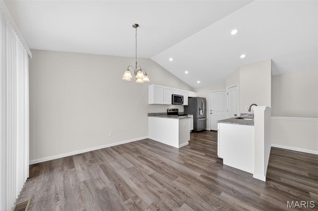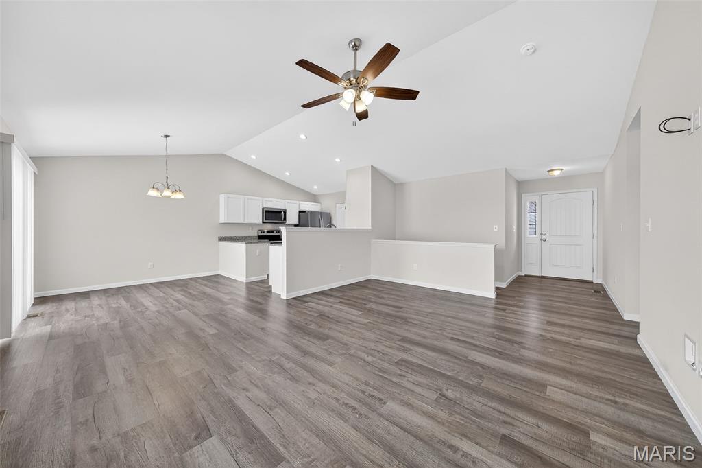 Welcome home to this beautifully maintained 3-bedroom, 2-bath ranch in the heart of Winfield! Built in 2023, this nearly new home offers an open and functional floor plan with modern finishes throughout. The spacious kitchen features granite countertops, ample cabinetry, and a convenient pantry, flowing seamlessly into the main living area—perfect for everyday living and entertaining. The primary suite provides a private retreat with a walk-in closet and en suite bath, while two additional bedrooms offer flexibility for guests, a home office, or hobbies. The unfinished basement includes a rough-in for a future bathroom, creating endless potential for added living space. Situated on a generous half-acre level lot that backs to mature trees, this property offers privacy and a peaceful setting. A 3-car garage provides plenty of storage and parking. This move-in ready home is full of opportunity!