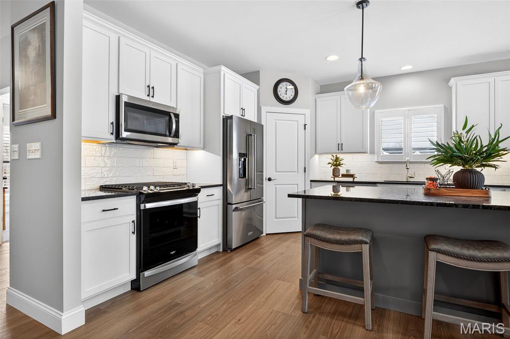 An exceptional luxury detached villa distinguished by thoughtful design, extensive upgrades, and immediate availability at a value worthy of comparison to new construction. Just 1.5 years young, this meticulously maintained residence incorporates approximately $170,000 in premium builder upgrades, along with additional post-closing enhancements already completed. Positioned on a premium lot that allows for a 3-car oversized garage, a notable distinction within the community where most homes are limited to two, this residence offers enhanced functionality without sacrificing architectural harmony. The home features 3 bedrooms, 3 full baths, and a look-out lower level, all presented in pristine condition. The gourmet kitchen serves as the focal point of the home, appointed with refined white cabinetry featuring 42" upper cabinets with crown molding, rich granite countertops, a gas range, upgraded stainless steel appliances, under-cabinet lighting, an undermount sink, and an elegantly scaled 8' island with seating. The adjacent breakfast room opens to a covered, screened, maintenance-free deck, creating a seamless extension of the living space. The open great room, kitchen, and breakfast area are unified by 9' ceilings, carefully selected lighting and plumbing fixtures, black levered door hardware, and custom plantation shutters throughout, offering a timeless and elevated aesthetic. The primary suite provides a serene retreat, featuring an oversized tile-to-ceiling shower with frameless glass enclosure, adult-height double vanities with double sinks, marble-look LVT flooring, and a professionally designed walk-in closet system. A second main-level bedroom enjoys a full bath with equally refined finishes. The mostly finished lower level expands the living space with a generous family room, third bedroom, full bath, and abundant storage currently utilized as a hobby or workshop area, offering flexibility for guests, entertaining, or everyday living. Beyond original construction, the seller has fully drywalled and finished the garage, installed high-quality epoxy flooring, completed professional landscaping, and added a full irrigation system. All yards are fully sodded and maintained by the HOA, with snow removal also included, providing a truly carefree, lock-and-leave lifestyle. The community offers an appealing balance of convenience and natural beauty, featuring walking trails within a Certified Wildlife Habitat, two scenic ponds, and easy access to major highways and interstates, allowing effortless travel while preserving a tranquil residential setting. While similar selections may be available through new construction, this residence offers the advantage of having those choices already executed, refined, and absorbed in cost, presenting a sophisticated alternative for buyers who value immediacy, quality, and discretion.