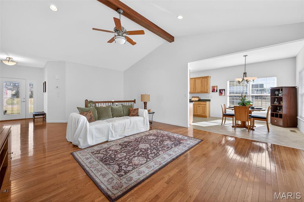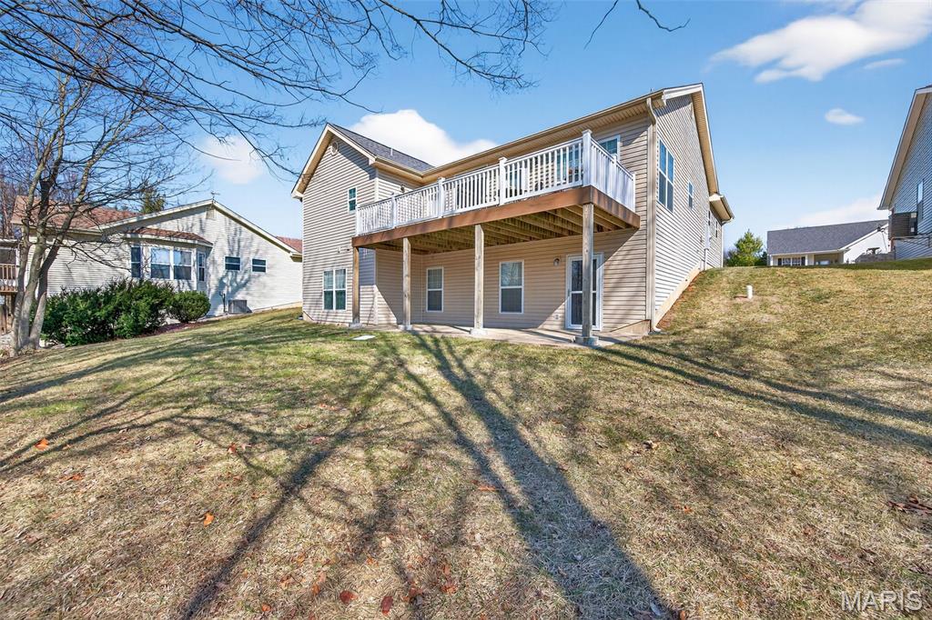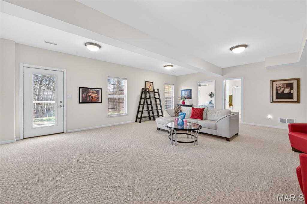 Beautifully well maintained 3-bedroom, 3-bath Villa, over 2,500 sq ft of finished living space, offering easy living and serene surroundings. This home features a vaulted ceiling in the Great room with hardwood flooring and expansive tall windows that creates a bright, open feel. The spacious master bedroom has a tray ceiling and a large walk-in closet. Step outside to a maintenance-free 26X10 deck off the Great room or relax on the cement patio off the finished 9ft pour walkout basement, both overlooking a peaceful, wooded backyard with natural views. The finished lower level includes a third bedroom, full bath, generous storage area, and flexible living space—perfect for guests, a home office, or entertaining. Enjoy the convenience of low-maintenance living, as the association covers all exterior maintenance, including landscaping, lawn care, irrigation, snow removal, trash service, and sewer. **1-year Home Warranty included** Ideally located just minutes from New Melle shops, local wineries, and scenic parks with hiking trails. The community also features three catch-and-release fishing ponds, adding to the tranquil lifestyle this home offers. A wonderful opportunity to enjoy comfort, convenience, and nature all in one place. Schedule your showing today...