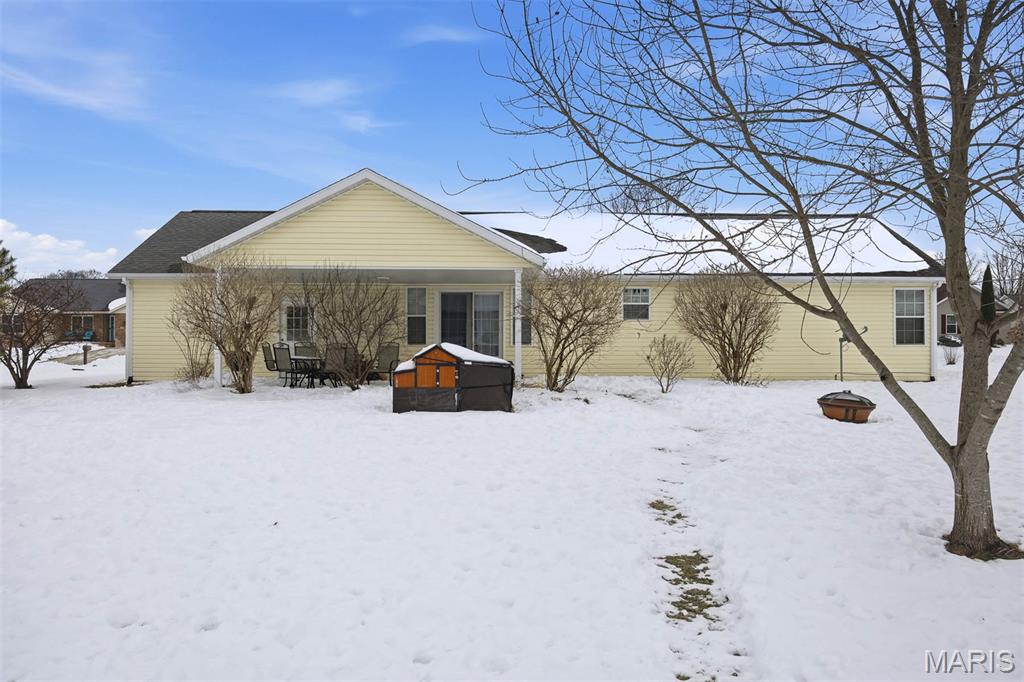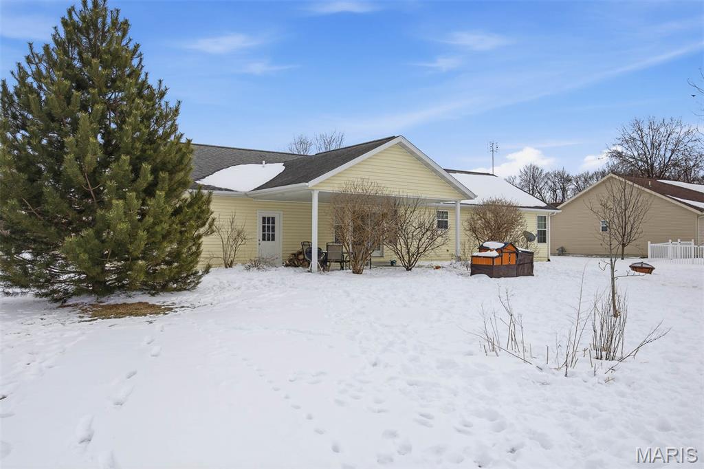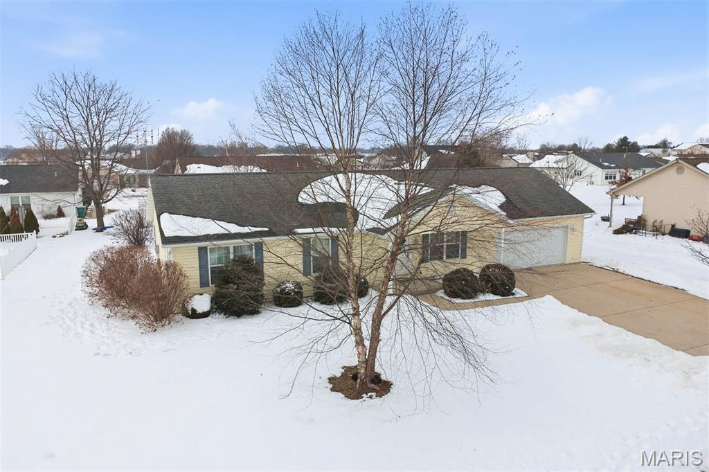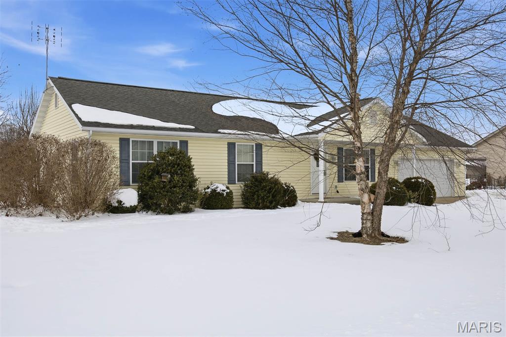 Charming 3-bedroom, 2-bath ranch-style home offering a desirable open-concept layout. The living room features a vaulted ceiling and flows seamlessly into the dining area and kitchen, creating an inviting space for everyday living and entertaining. The kitchen includes a pantry for added storage and convenience. The main floor offers a spacious primary bedroom, a second bedroom, a full bath complete with a jetted tub and separate shower, and a convenient main-floor laundry room. The partially finished lower level adds a third bedroom with large walk in closet and an additional full bath, with plenty of unfinished space ready for future expansion or storage. Step outside to a covered patio overlooking the backyard—perfect for relaxing or hosting guests.