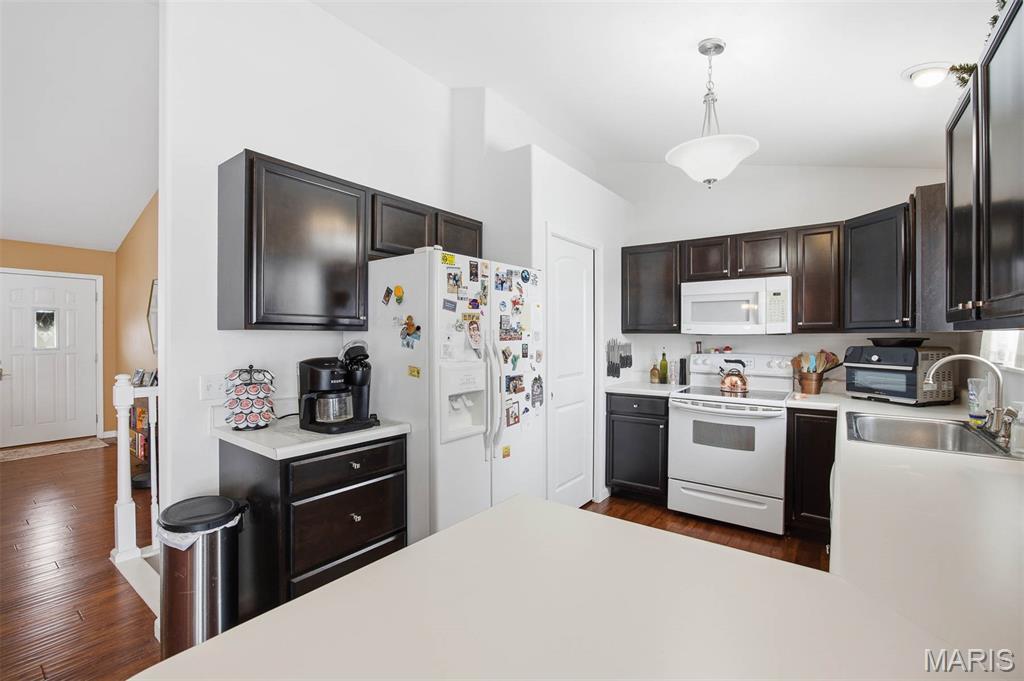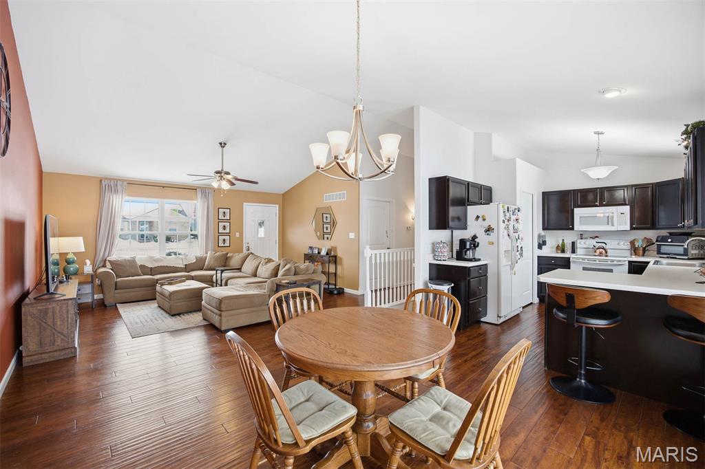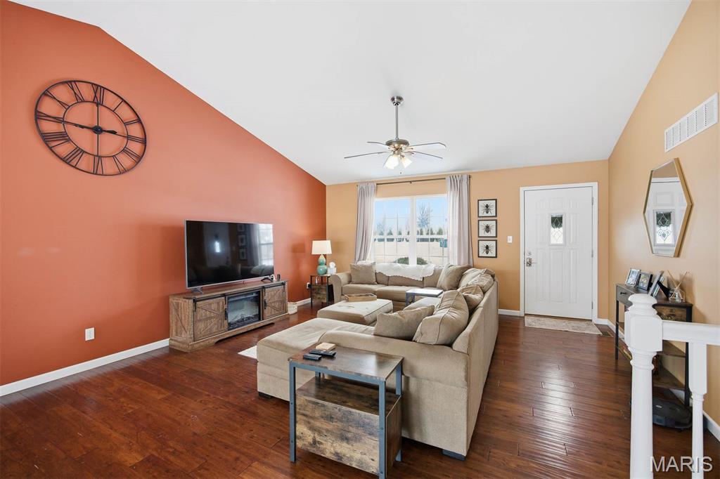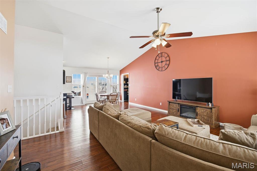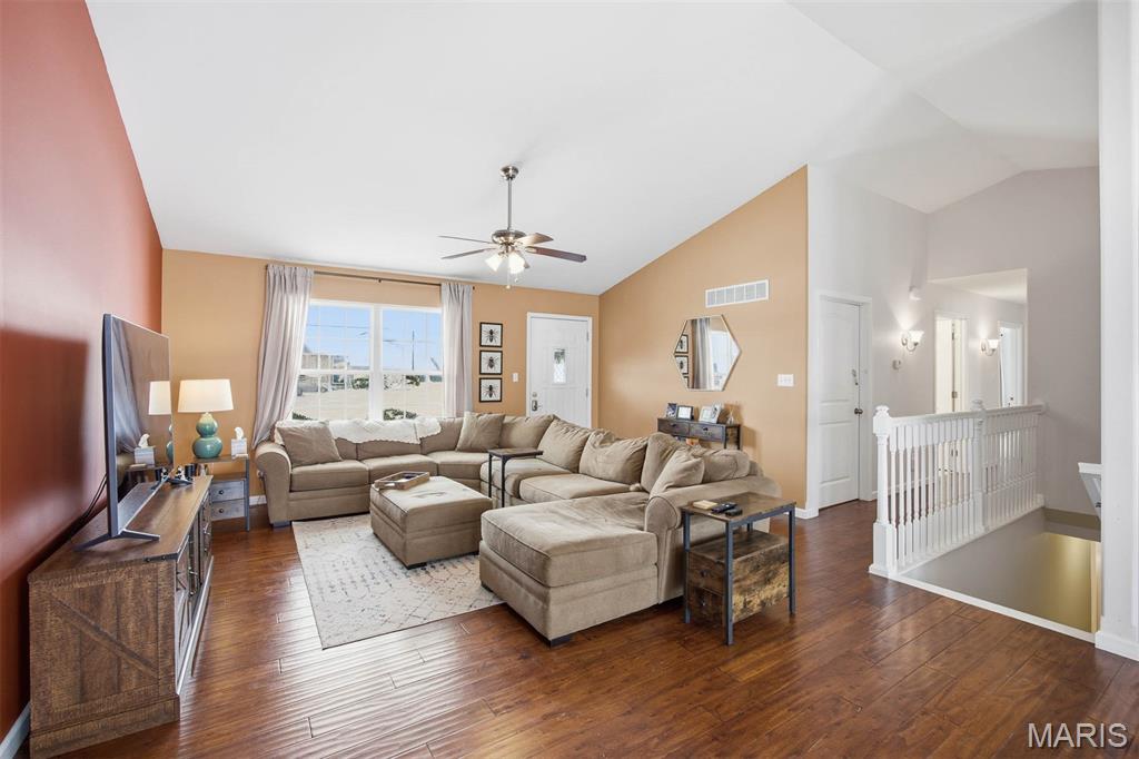 Charming 3-bedroom, 2-bath ranch-style home offering a desirable open-concept layout. The living room features a vaulted ceiling and flows seamlessly into the dining area and kitchen, creating an inviting space for everyday living and entertaining. The kitchen includes a pantry for added storage and convenience. The main floor offers a spacious primary bedroom, a second bedroom, a full bath complete with a jetted tub and separate shower, and a convenient main-floor laundry room. The partially finished lower level adds a third bedroom with large walk in closet and an additional full bath, with plenty of unfinished space ready for future expansion or storage. Step outside to a covered patio overlooking the backyard—perfect for relaxing or hosting guests.