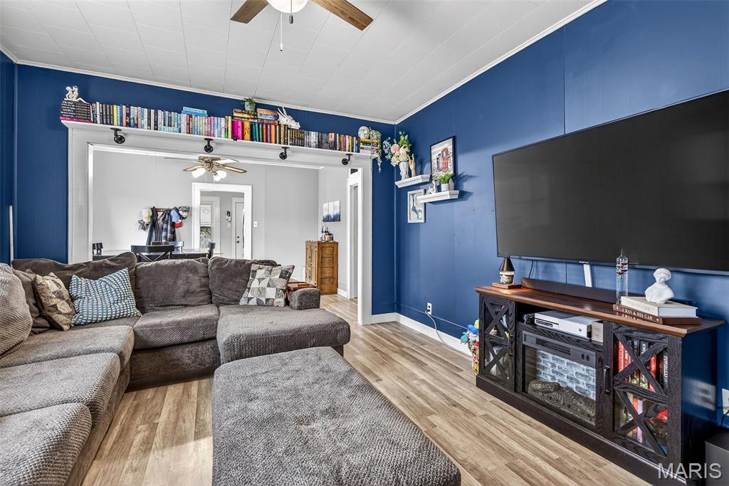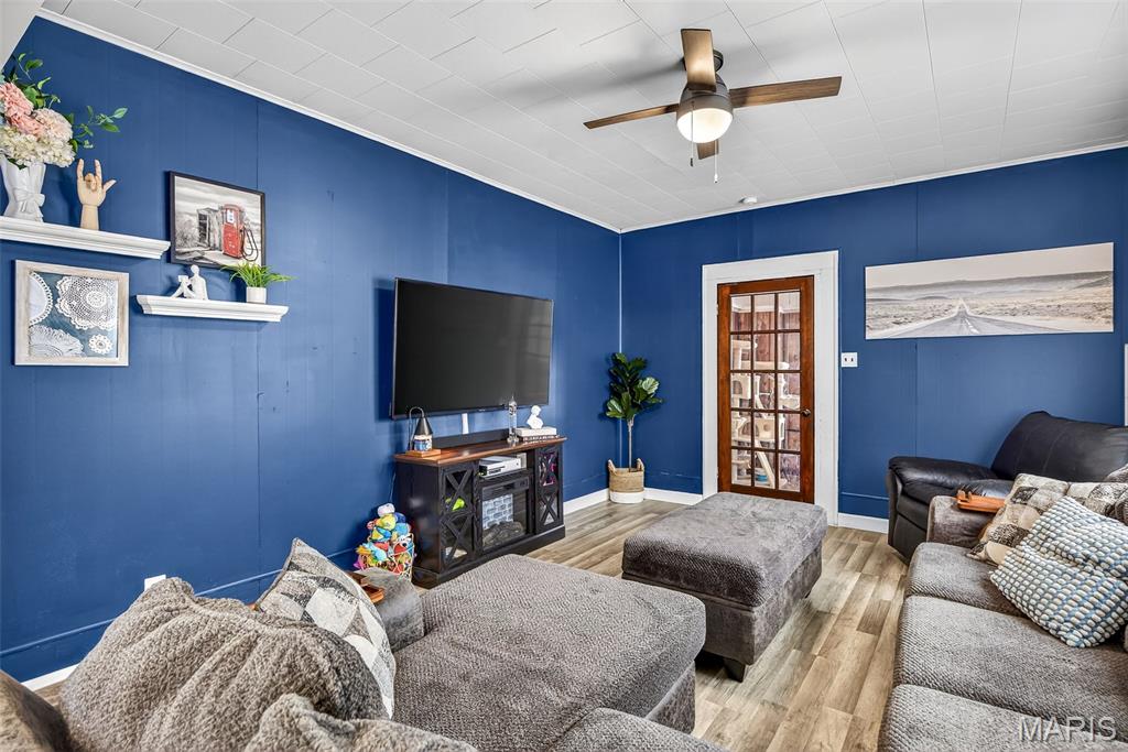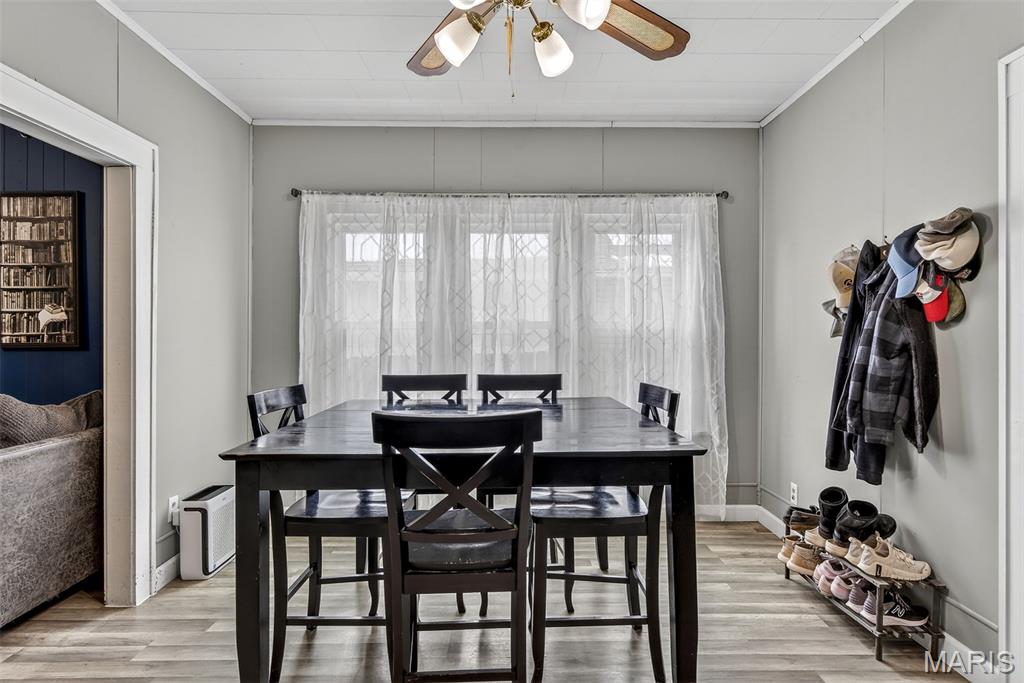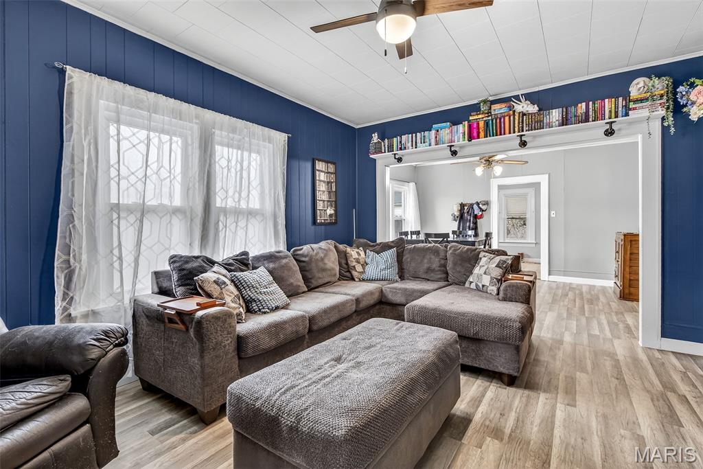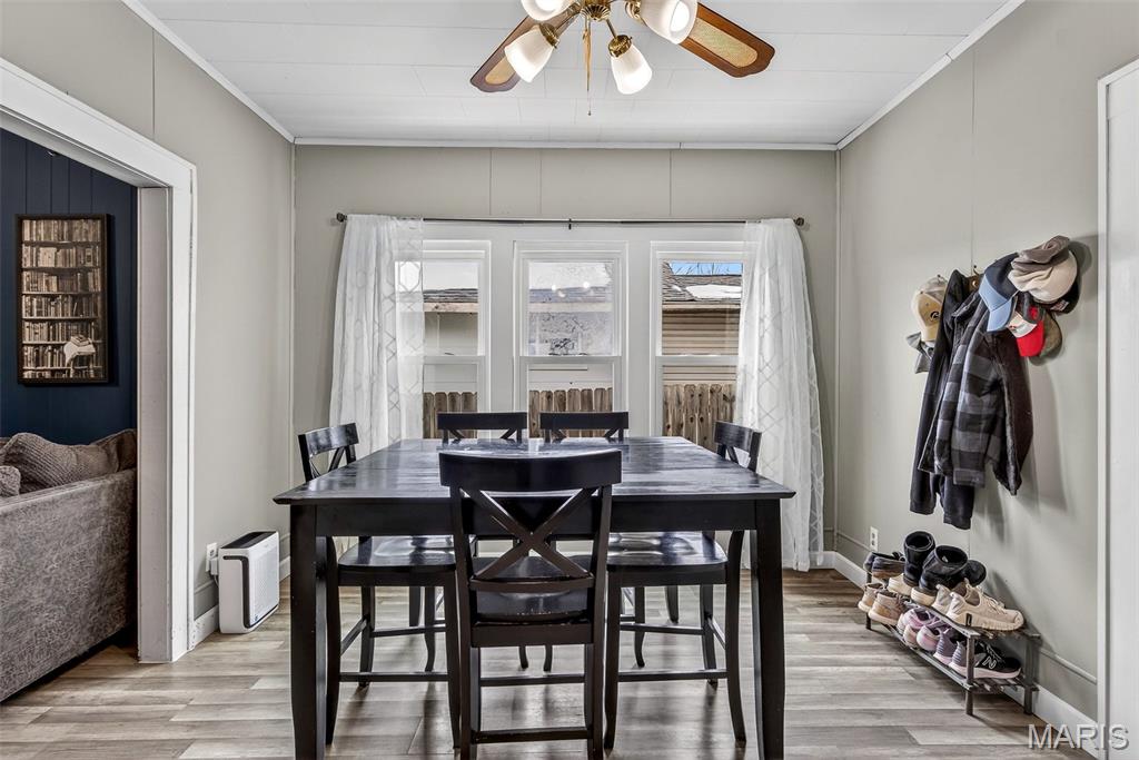 Charming downtown bungalow featuring 2 bedrooms and 1 bath with a great floor plan and spacious rooms. The home offers newer flooring, stainless steel appliances, and a separate dining area. Enjoy the enclosed front porch, newer vinyl windows, and a level backyard with back patio, perfect for relaxing or entertaining. A detached garage plus additional parking add convenience. Very well maintained and ideally located in town, just steps from City Hall and all downtown amenities.
