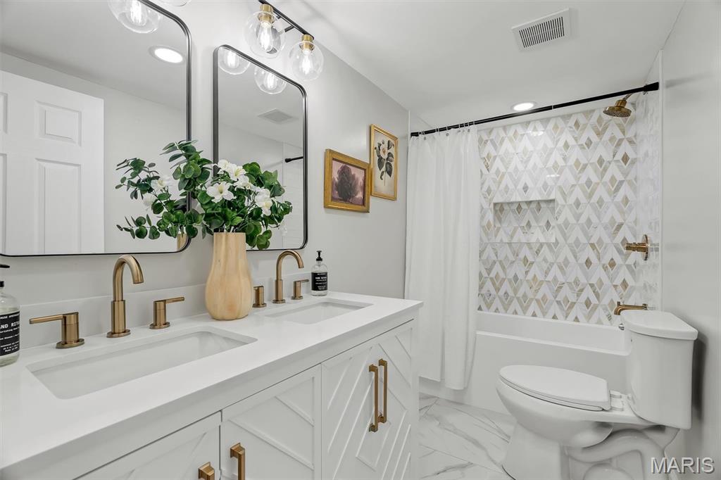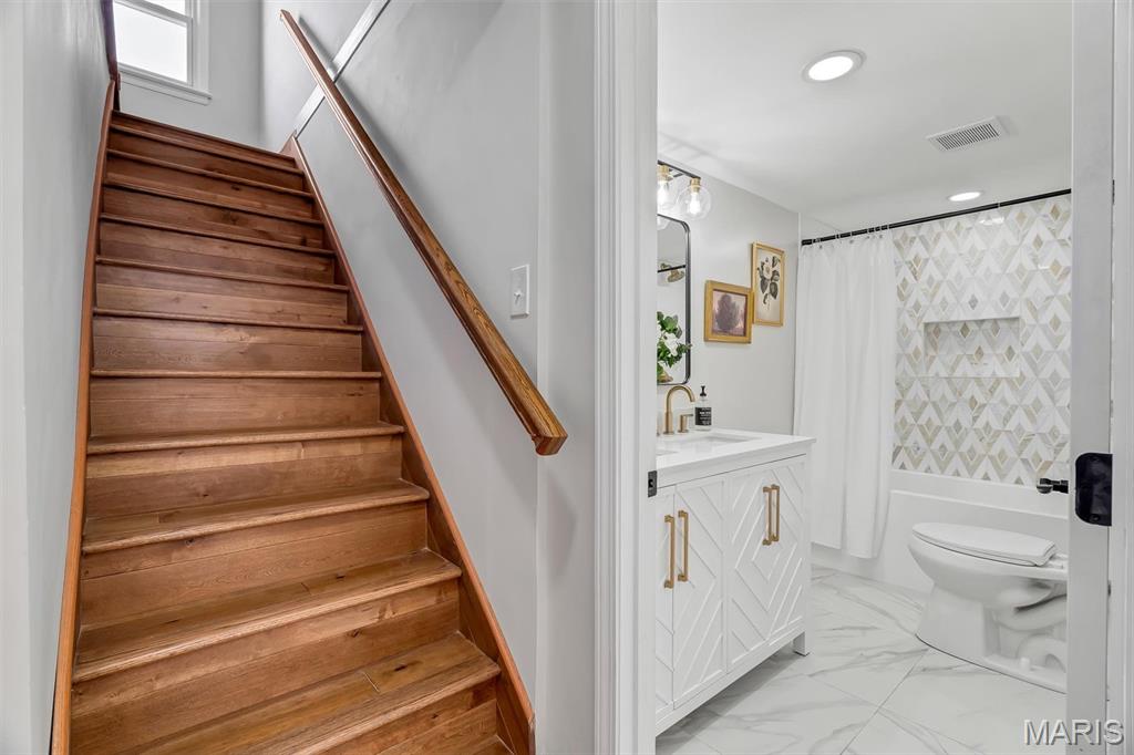 Welcome home to 582 Brookhaven Ct, an extensively renovated 5 bedrooms and 3 full baths gem perfectly situated in one of Kirkwood’s most desirable tree-lined neighborhoods. Step inside to a welcoming foyer with gleaming hardwoods and an inviting traditional floor plan that creates comfort and functionality. Experience a lot of natural light through beautiful new windows, complemented by recessed lighting. Enjoy abundant living-space with elegant living-room, a dining room that provides access to the deck and an additional family room in the finished basement. The stunning kitchen has been renovated with white shaker cabinets, gorgeous marble tile backsplash, quartz counters and stainless steel appliances. The beautifully updated main-floor bathroom has top-tier finishes flanked by two generously sized bedrooms, one can be used as a master-bedroom due to its spacious layout. Upstairs, you will find three additional spacious bedrooms and a completely renovated full bath. Downstairs, the newly remodeled lower level offers an expansive rec/family room, a gorgeous 3rd full bath, laundry room and additional closet space. Outside, you can enjoy the wide deck overlooking the beautifully manicured & fenced backyard perfect for outdoor entertainment and relaxation. Additional highlights ; new gutters and downspouts, updated plumbing, electric, all new light fixtures, garage door, sump-pump, water-heater, hardwood floors, carpets, new AC, ductless tri-zone mini split air conditional system on second floor for enhanced comfort control and new interior and exterior doors. Wonderfull location, easy walk to Tillman Elementary School. Kirkwood schools /Amenities. Don’t miss your opportunity to make this beautiful home your own!