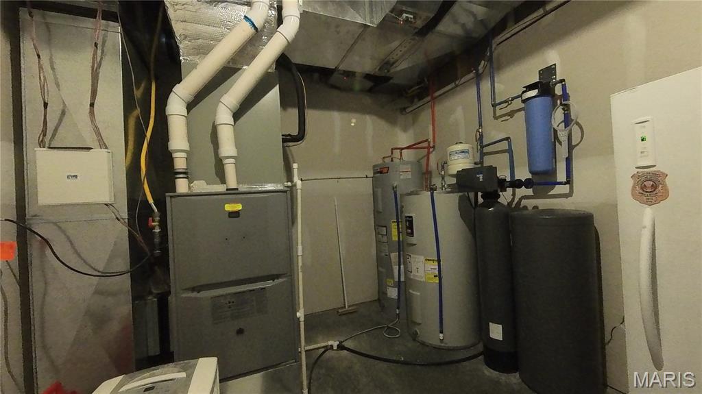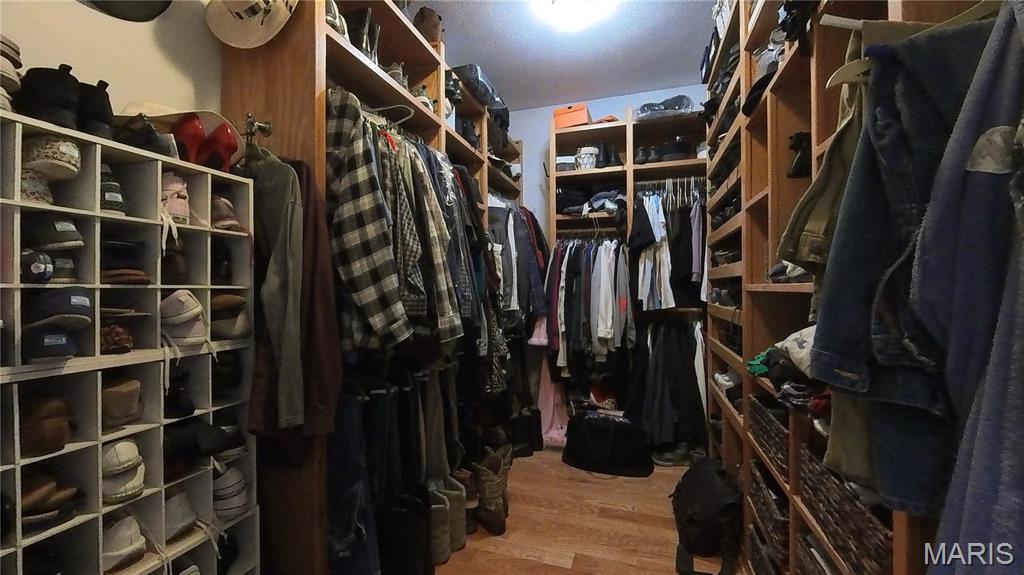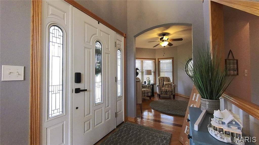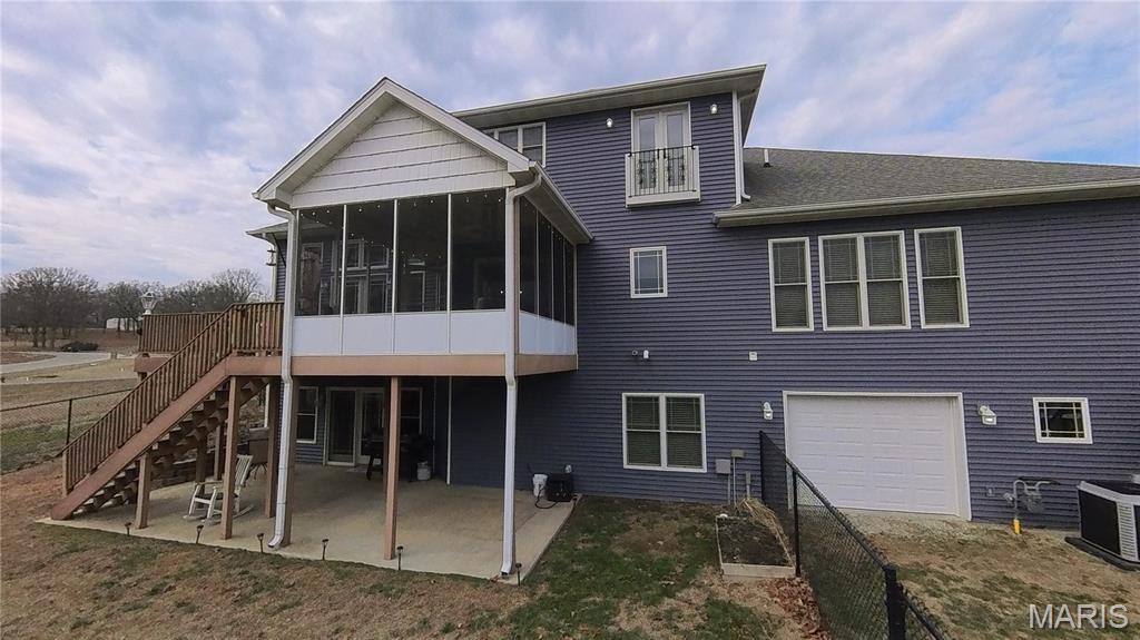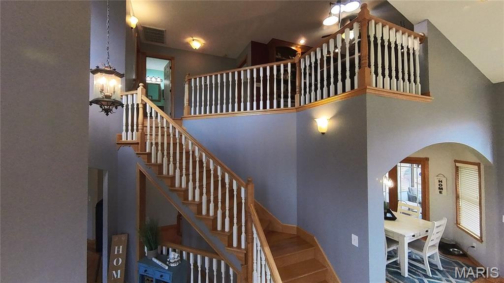 Check out this 1.5 Custom Home on a double corner lot. Updated Kitchen with Quartz countertops with soft-close and pull-out drawers. Pantry. Island, Eat-In, Separate Dining, and Formal Dining. Plus an abundance of custom-built shelving in all closets, den, etc. All stays. All walk-in closets throughout. This is truly one of a kind. Lots of windows for natural lighting. 16' ceilings in the living room. Real Hardwood flooring. Screened in Porch, large deck, patio, wrap-around covered front porch. Spacious primary bedroom with tray ceiling. Full primary bathroom with a soaking tub and a large walk-in tile shower. Custom closet with every kind of built-in. Double sinks and ample space to move around. The laundry room is just as spacious, with cabinets, a built-in ironing board, and ample storage. The oversized car garage provides convenient storage for all your belongings. 1/2 bath off the kitchen. Gorgeous Staircases. Upstairs library/den with views! Some of the best shelving for all your books! 2 Bedrooms with walk-in closets and custom shelving. One bedroom with a French deck to look out. Full bath upstairs. The basement includes a family room and a bonus space. Three-quarter bath and full bedroom with a walk-in closet. On the other side, the man cave with a wet bar, kitchenette, storage, and a John Deere Room. Walks out to the fire pit. The family room opens to a patio with a secure chain-link fence for pets or children. *Newer blinds on windows throughout. (2019) *Complete Water System and Water Filtration System *Water Heater Replacements (two) *Updated kitchen with quartz countertops, subway tile backsplash, and new appliances *Outlet lights added throughout the home *Repainted *Sprinkler System *Central Vac *Laundry Chute *Sound System *List of Updates added to documents!