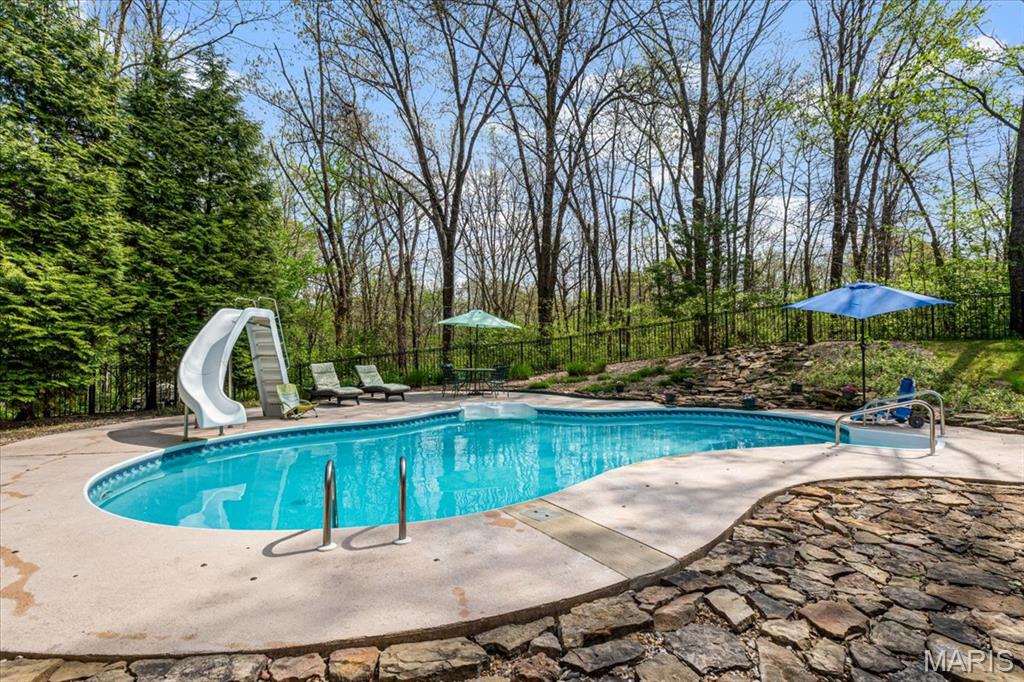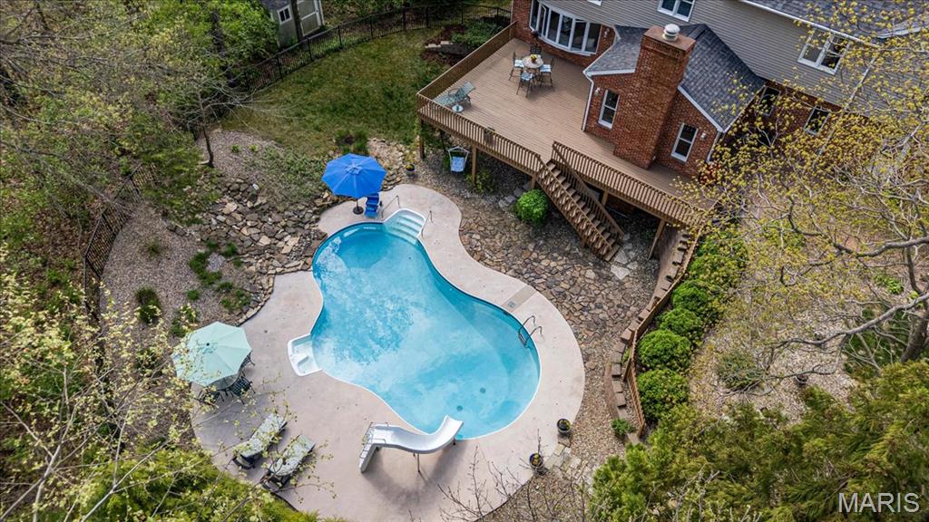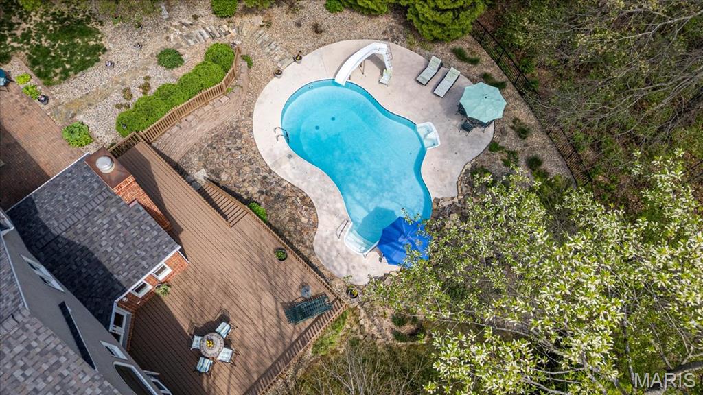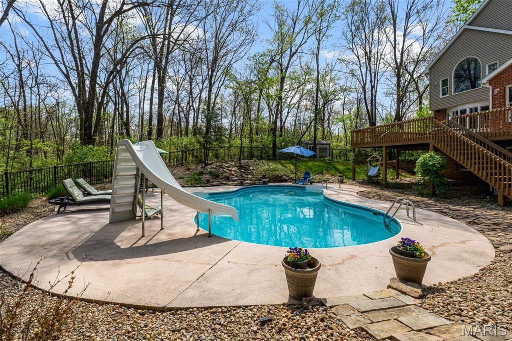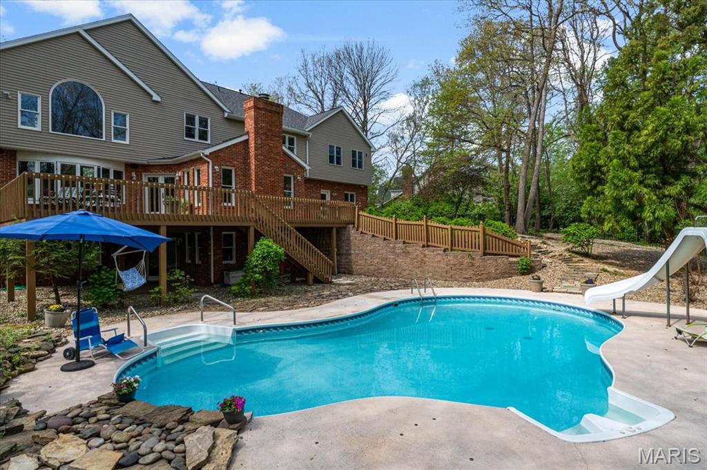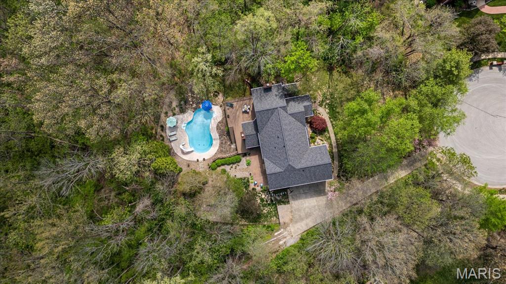 CUSTOM 2-STORY ON A PRIVATE, 1 1/2 ACRE WOODED LOT WITH AN INGROUND POOL! Welcoming cathedral great room with gas fireplace, built-ins and a window seat, plus a cozy hearth room with wood burning fireplace. Kitchen updated with a planning desk, tile backsplash, newer appliances and plenty of space for people to gather around the large island. Off the kitchen you will find a formal dining room that is currently being used as a living room AND a main level laundry with 1/2 bath. Upstairs you'll find the primary suite with tray ceiling and an updated bath with dual vanities, soaking tub and separate shower, plus 3 additional bedrooms and-one oversized over the garage with a walk-in closet. The walk-out lower-level offers cozy family room, a rec space with pool table, wet bar, bonus room and another full bathroom. Walk out to the gorgeous backyard with mature trees, an inground pool firepit area and storage shed. Extras: laundry chute, attic fan, Anderson windows/doors, zoned HVAC and NEW roof. MUST SEE!