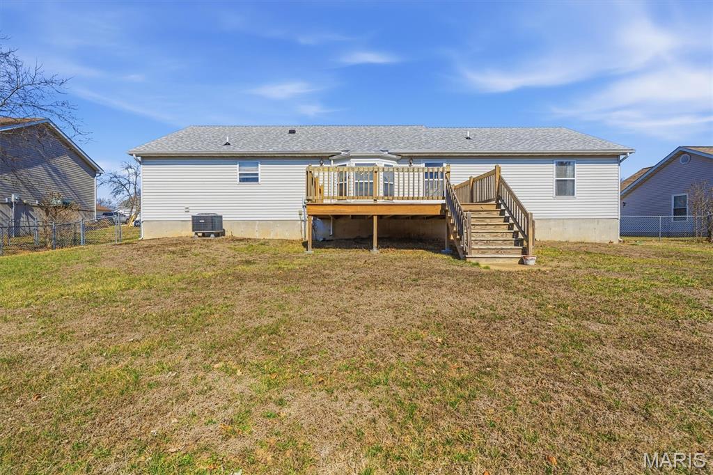 Please note: The open house has been cancelled for 3/8. This is a lovely 3 BR/2 full bath ranch located just two blocks from the elementary and middle school. It offers quick and easy access to shopping, restaurants, local businesses and town activities. Many recent improvements include a new roof in 2025, a wood deck in 2023 and recent updates to appliances and the main living area flooring. The furnace and air conditioner were replaced in 2020. The home has a semi-open floor plan with a galley style kitchen that leads directly into the laundry room and out into the garage. No basement laundry! The master bedroom has an en suite bathroom with a full tub and shower. There's a spacious 2-car garage, a big ole' basement for storage and a large fenced in back yard. The exterior garage and porch lights have been updated along with new shutters. A nice, quiet neighborhood to boot! Add some new flooring in the bedrooms and a fresh coat of paint and you're move in ready! The perfect first home for familie