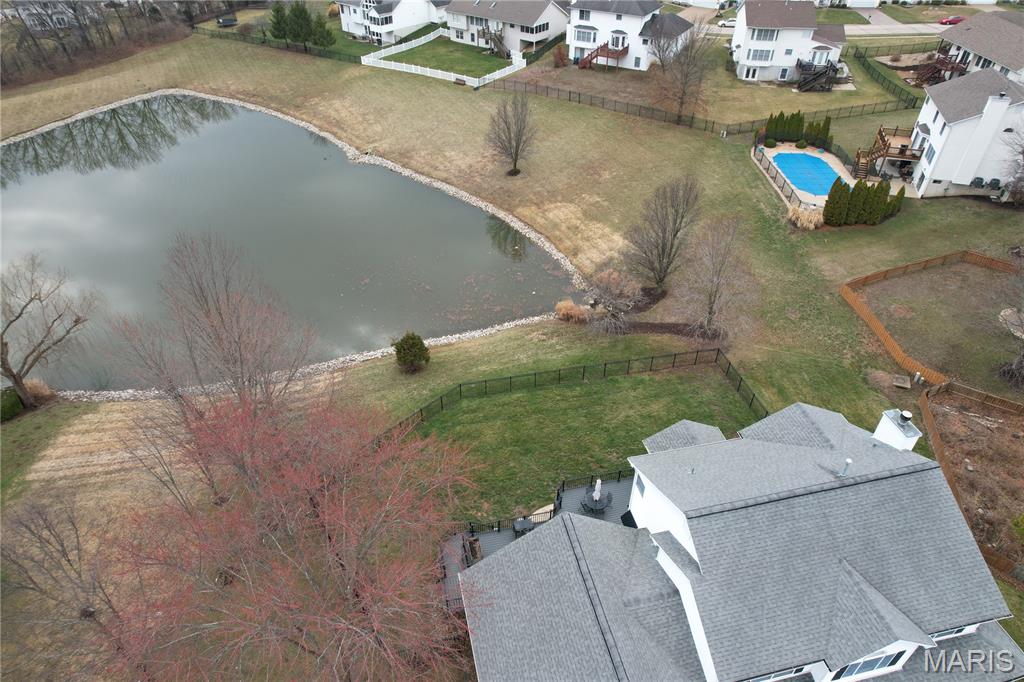 If you have been waiting for a home that feels like a retreat but still keeps you close to everything, this is the one you need to see. Tucked at the end of a cul de sac on a 1/3 acre lot, you back to common ground and a peaceful pond, giving you a view you will actually enjoy every day! Imagine slow mornings on the wrap around porch & easy evenings on the HUGE maintenance free composite deck, grilling, hosting, or simply unwinding while the water and open green space create a calm, private setting. Inside, 9 ft ceilings and beautiful wood floors welcome you in, and the gas fireplace makes the main living area warm and inviting. The kitchen is made for real life and entertaining with 42 inch white cabinets, quartz countertops, a breakfast bar center island, and great flow into the bright 4 seasons room with ceramic tile and Anderson tilt in windows, a perfect spot for coffee, reading, or taking in the pond view year round. Main flr laundry/mud room adds everyday convenience right where you need it. Upstairs you will love the open loft, 4 BIG BRs, and 2 updated full BAs, giving everyone space to spread out. The walk out LL is already finished and ready for your best nights in, featuring an amazing entertainment area with bar, home theater, full BA, and a lounge space that works beautifully for game days, movie nights, and guests. And do not overlook the OVERSIZED 28' x 29' 3 car garage, a rare find with room for larger vehicles, storage, bikes, tools, and the hobby space you have been wanting. Come experience the view and space in person, it is even better than it sounds!
