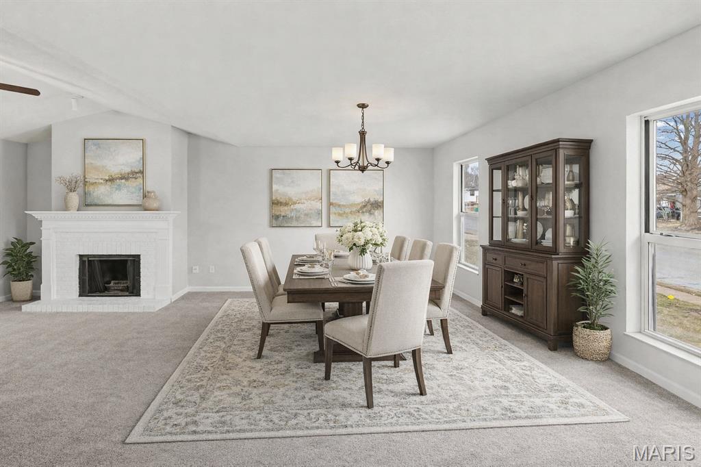 Welcome home to 109 White Pine Ave. This beautifully updated 4-bedroom, 2.5-bath home offers nearly 2,100 square feet of stylish living space in the heart of O'Fallon. With extensive recent upgrades and timeless finishes throughout, this move-in-ready home checks every box. Step inside to discover fresh paint, brand-new carpet, and new light fixtures throughout, creating a bright and modern feel from the moment you enter. The spacious living room features a cozy fireplace—perfect for relaxing evenings at home. The updated kitchen offers abundant natural light, tile backsplash, included appliances, and convenient access to the patio and partially privacy-fenced backyard—ideal for entertaining or enjoying quiet mornings outdoors. On the main floor, you’ll also find a spacious bedroom, an updated half bath, and convenient main-floor laundry—offering flexibility for guests or a home office. Upstairs, you’ll find 3 bedrooms, including a primary suite with private bathroom all designed in timeless white finishes. The hall bath has also been updated. Bedroom three offers direct access to a private upper-level deck, adding charm and versatility to the space. Additional highlights include: New roof (2025), Furnace in 2016, New paint throughout, New carpet throughout, New light fixtures throughout, Updated kitchen with appliances that stay, 2-car garage, large backyard. With thoughtful renovations, modern upgrades, and a fantastic location, this home offers comfort, style, and peace of mind all in one package. Schedule your showing today! OPEN HOUSE SUNDAY MARCH 8th 12-2!!!