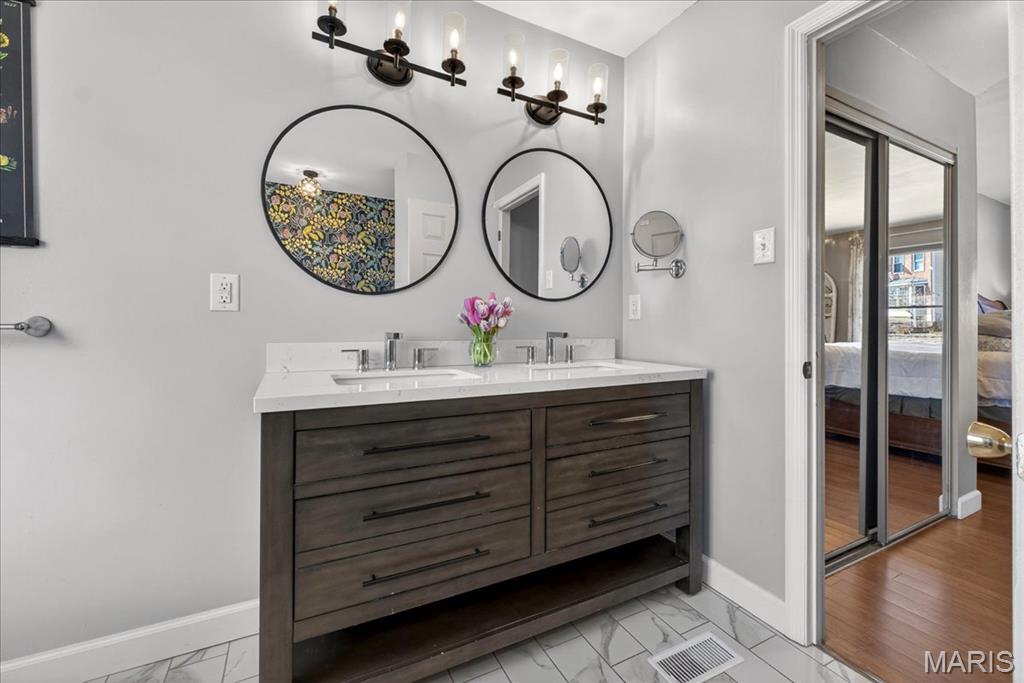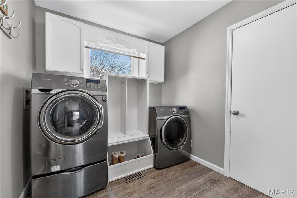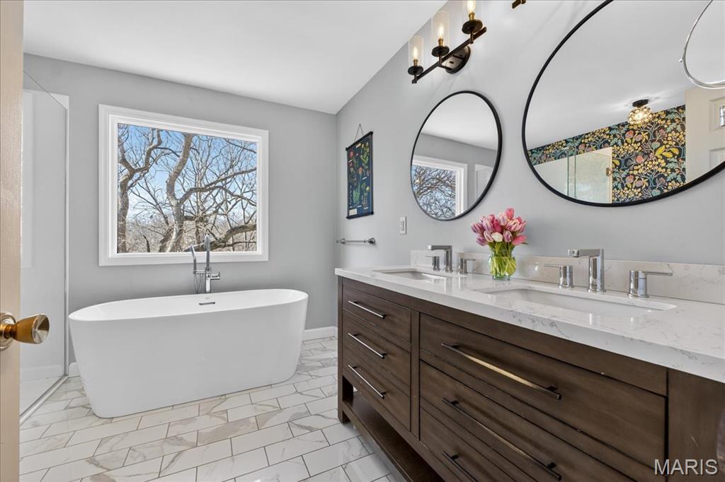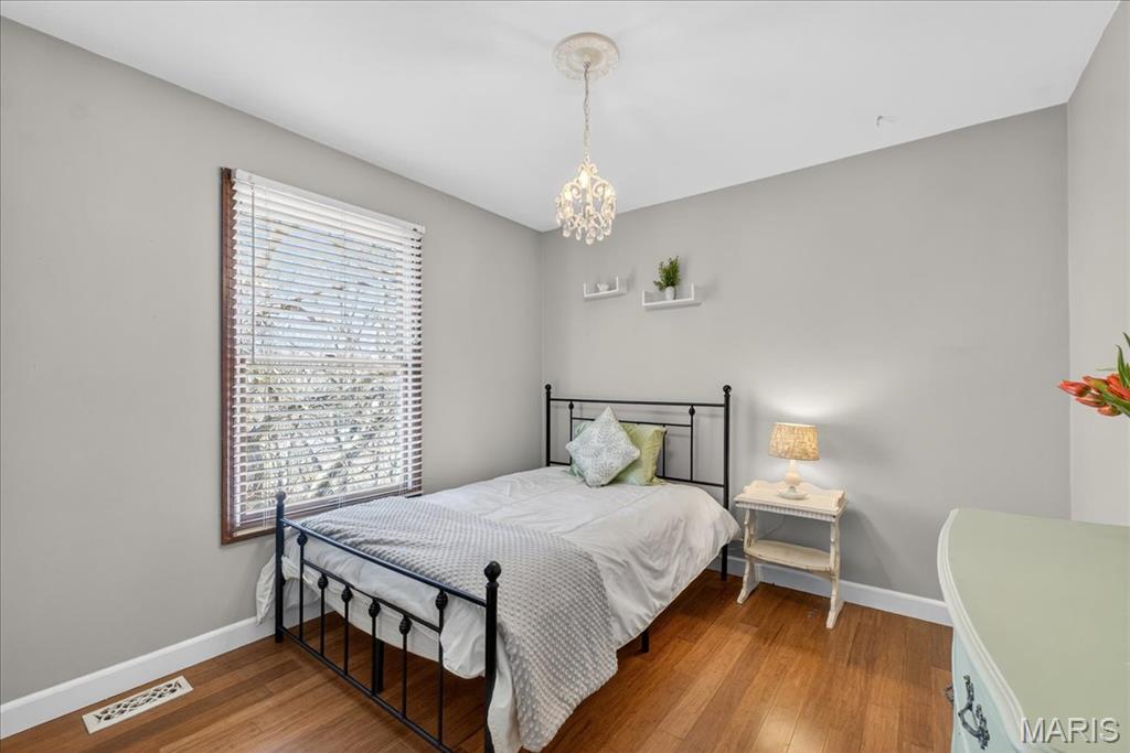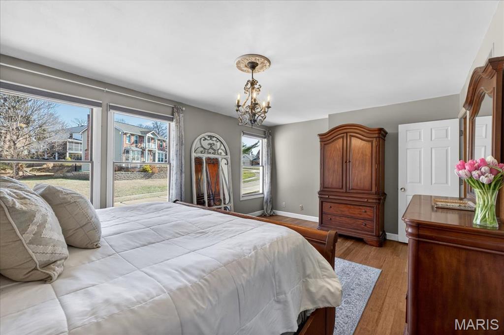 Tucked within the beloved Kirkwood School District, this beautifully updated two-story offers the perfect balance of timeless character, thoughtful updates, and an unbeatable central location just minutes from major highways, shopping, dining, and everyday convenience. From the moment you step inside, bamboo hardwood floors create a sense of warmth and continuity throughout much of the main and upper levels, complemented by classic millwork, statement lighting, and inviting, comfortable living spaces. The welcoming entry opens to an elegant dining room accented by crown molding, chair rail, and chandelier, a space made for both everyday dinners and special celebrations. The living room flows effortlessly into the spacious family room, where a wood-burning fireplace, custom built-ins, wainscoting, and sun-filled bay windows create a space that feels both cozy and connected. A wet bar with custom cabinetry adds both charm and functionality for entertaining and daily living. The kitchen is truly the heart of the home, beautifully designed with custom soft-close cabinetry, quartz countertops, tile backsplash, under-cabinet lighting, stainless appliances, gas cooktop, double wall ovens, wine fridge, and a large center island that invites connection. A sliding glass door opens directly to the covered deck, creating seamless indoor-outdoor flow and extending the living space, perfect for morning coffee, quiet evenings, or hosting with ease. Just beyond, the laundry/mudroom provide everyday practicality and organization. Upstairs, the primary suite offers a peaceful retreat with hardwood floors, generous closet space including a walk-in closet, and a beautifully updated spa-like bath featuring a walk-in shower, soaking tub, dual vanity, and custom tilework. Three additional bedrooms with hardwood flooring and ample closet space share a well-appointed hall bath. The finished lower level expands the home’s versatility with a large recreation space, wet bar, wine fridge, full bath, and a flexible bonus room ideal for guests, a home office, or workout space. Outdoor living is just as inviting, with a spacious partially covered deck with ceiling fan, stamped concrete patio, and built-in firepit, a setting designed for gathering, relaxing, and enjoying every season. With its rare combination of prime location, lifestyle, and highly sought-after schools, this Des Peres home offers the warmth, space, and everyday livability buyers are always searching for.