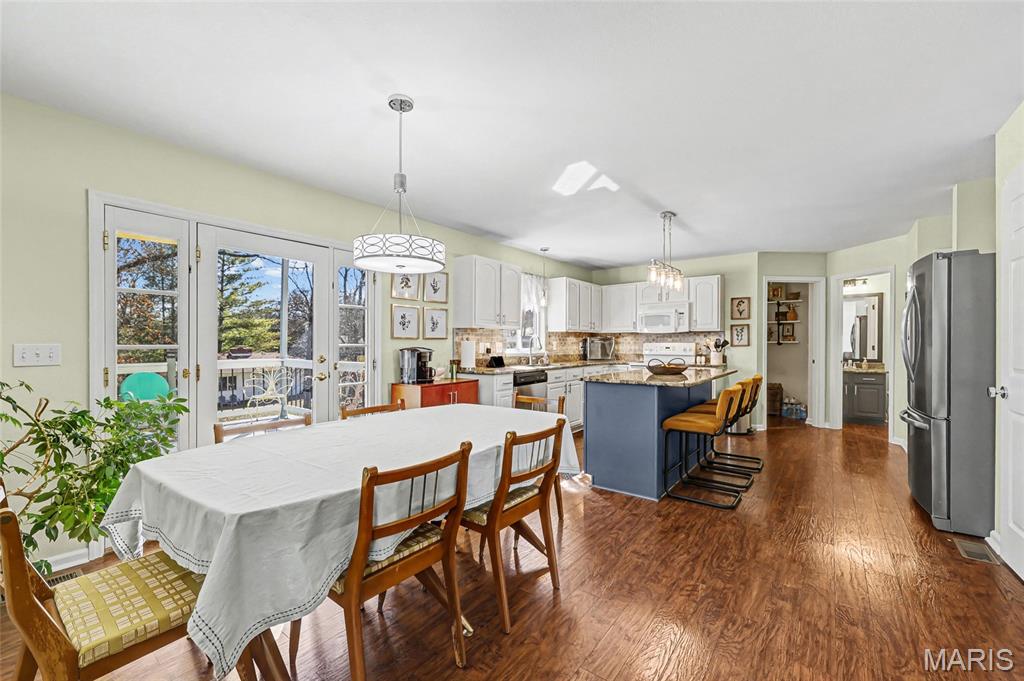 Welcome to this beautiful 2-story home in the sought-after Bailey Station subdivision, located within the award-winning Festus School District. With 5 bedrooms and 2.5 bathrooms, this home offers the perfect combination of space, comfort, and flexibility for a growing household. Step inside and you’re greeted by warm wood floors that flow throughout the main level, setting the tone for the home’s inviting feel. The open living room is filled with natural light thanks to the abundance of windows, creating a bright and comfortable space to unwind. A separate sitting room provides even more versatility—ideal for a home office, reading spot, or playroom. The formal dining room is ready for holiday dinners and special gatherings. At the heart of the home, the expansive eat-in kitchen features ample cabinet and counter space, a center island for meal prep, and plenty of room for a breakfast table. A sliding door leads out to the deck, making it easy to enjoy outdoor dining or entertain guests. You’ll also appreciate the convenience of a main-floor laundry room. Upstairs, all five bedrooms are thoughtfully placed on the same level. The spacious primary suite is a true retreat, featuring crown molding, a large walk-in closet, and a private en-suite with dual sinks, a soaking tub, and a separate shower. The additional bedrooms are generously sized with great closet space—perfect for family, guests, or extra hobby rooms. Zoned heating and cooling on both levels help keep the home comfortable and efficient year-round. Outside, the backyard feels like a private park with plenty of room to play, entertain, garden, or simply enjoy a quiet moment outdoors. This exceptional home offers space, style, and an unbeatable location—just minutes from schools, shopping, dining, and major highways. It’s a fantastic opportunity you won’t want to miss!