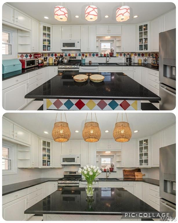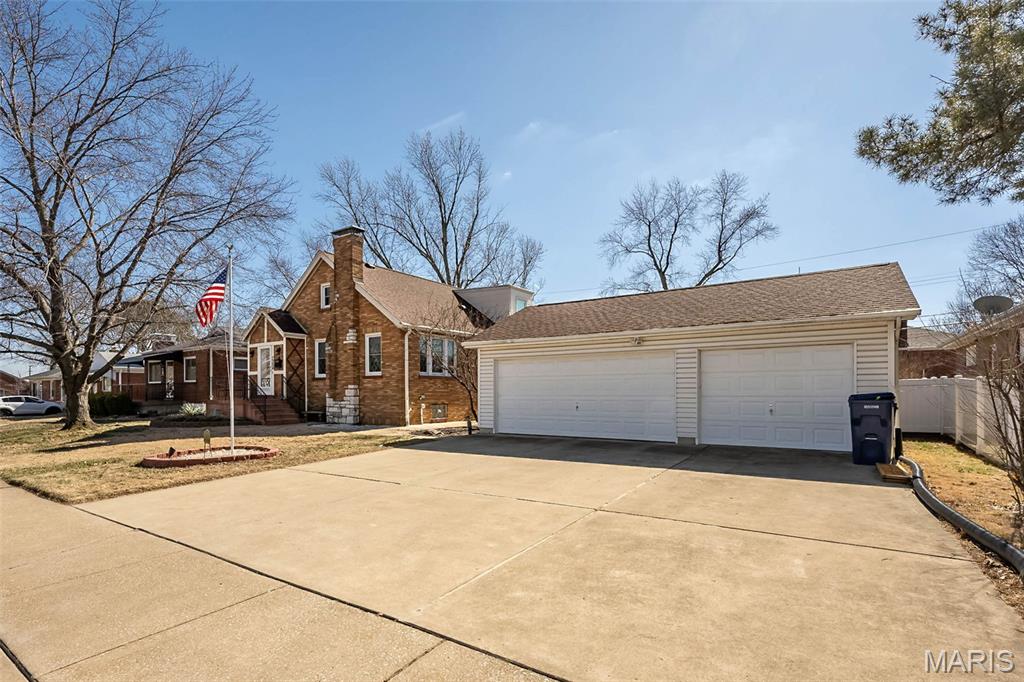 Welcome to this charming all-brick 1.5-story home situated on a double lot in the heart of Shrewsbury that is larger inside from what you see in the photos. From the moment you arrive, the curb appeal is matched only by the incredible peace of mind provided by significant recent upgrades, including a brand-new roof (2025), HVAC (2016), updated windows, and a whole-house generator. The exterior is a true private oasis, fully enclosed by a white vinyl privacy fence (2020) and featuring a three-car detached oversized garage (30x24)—a rare luxury for the area. The grounds are further enhanced by a 12x14 lofted shed for the ultimate workshop space and a charming 8x12 cottage playhouse that adds a touch of magic to the backyard. Inside, the main level radiates warmth with gleaming hardwood floors and a cozy gas fireplace. The heart of the home is the updated kitchen, featuring crisp white cabinetry with soft-close drawers, granite countertops, and stainless steel appliances. You’ll love the unique character of the step-down breakfast nook, perfect for morning coffee. Rounding out the main level are two bedrooms and an updated full bathroom. The upper level offers two additional bedrooms and a shared hall bathroom, with one bedroom boasting a versatile bonus area ideal for a nursery, reading nook, or walk-in closet. The living space extends into the partially finished basement, which has been thoughtfully designed to include a dedicated home office, a quiet sleeping room, and a large recreation area, alongside storage and laundry facilities. With every major system updated this home offers the perfect blend of classic St. Louis charm and modern efficiency.