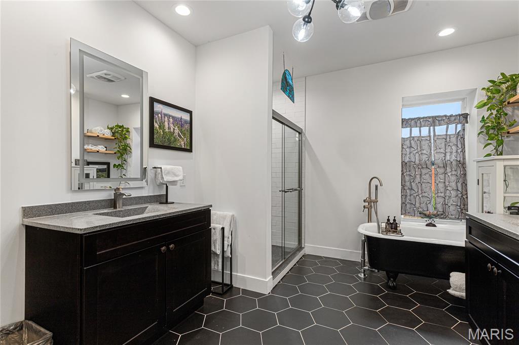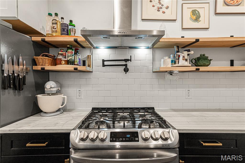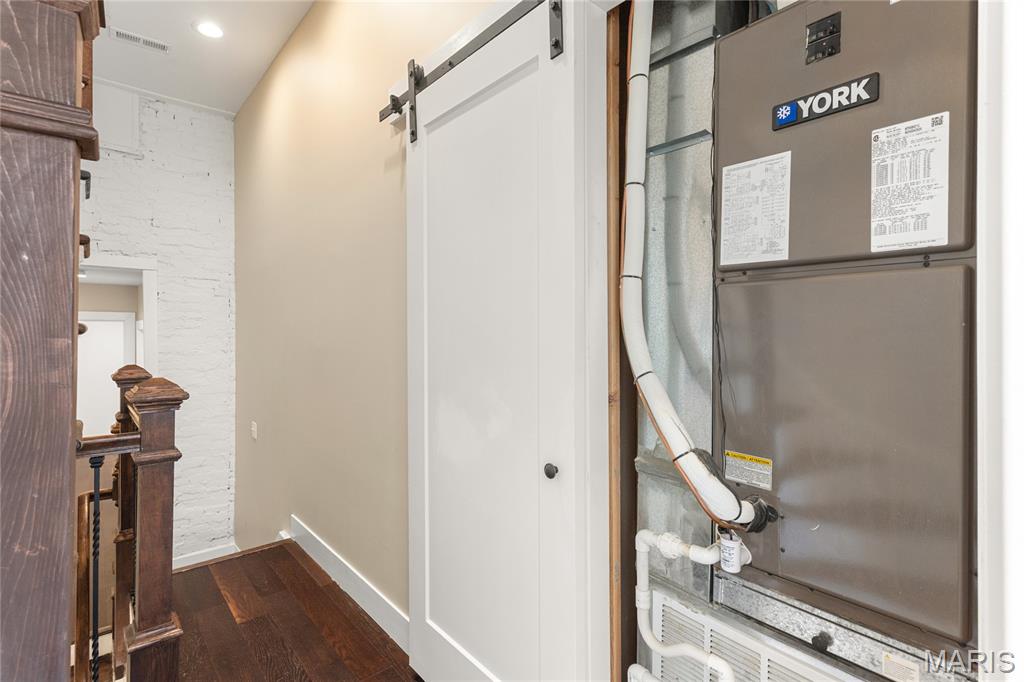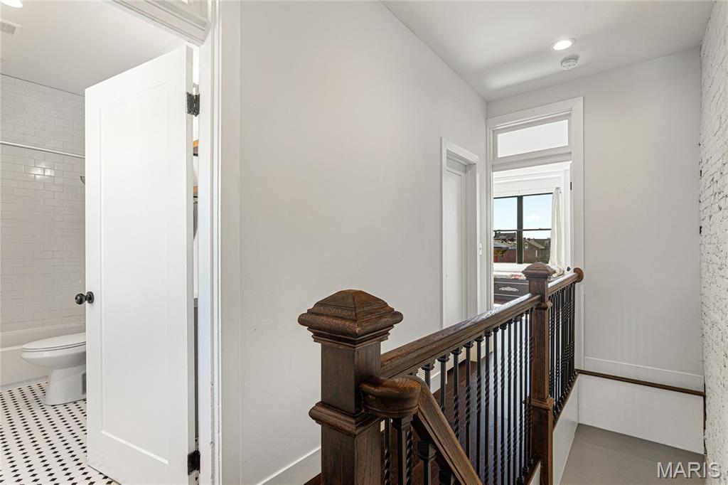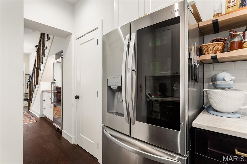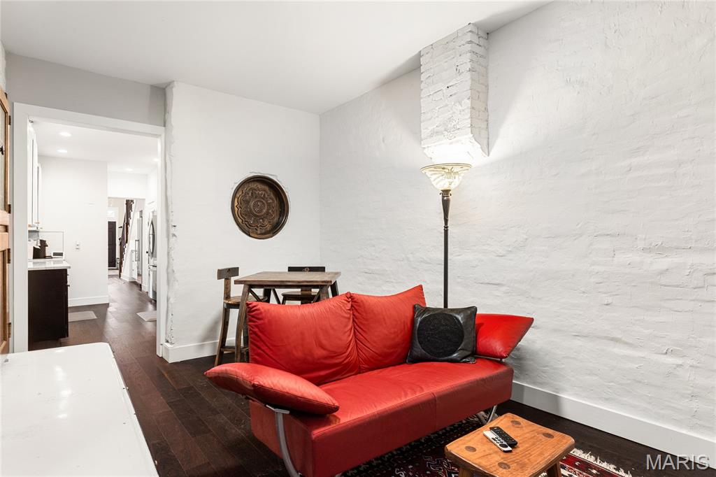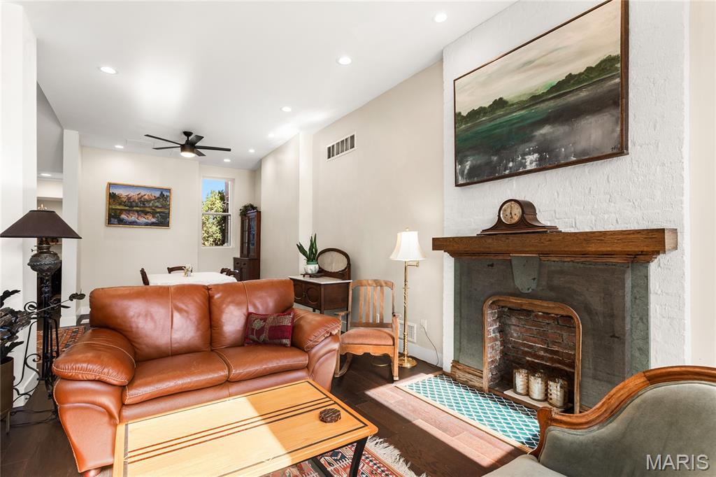 First showing Sat 3/7 at 1 p.m. Open Houses Sat 3/7 & Sun 3/8, 1–3 p.m. Beautifully updated 3 bed | 2.5 bath | 10 rooms | 2,625 sqft. historic townhome in one of St. Louis’ most sought-after neighborhoods, just steps away from Lafayette Square Park, restaurants, and shops. Blending timeless architectural character with thoughtful modern upgrades, the current owners have invested over $130,000 in meaningful interior and exterior improvements. The light-filled main level features soaring ceilings, exposed brick, engineered wood flooring, recessed lighting, and an open yet defined layout ideal for daily living and entertaining. The family room flows into the breakfast area and formal dining space. The galley kitchen offers stainless appliances, custom cabinetry, open shelving, farmhouse sink, and generous prep space, designed for both function and style. The second level includes a spacious guest bedroom, laundry room, and a stunning primary suite with custom ensuite bath featuring tile flooring, dual vanity, walk-in shower, and clawfoot soaking tub. Custom Elfa closet systems maximize storage throughout. The third floor provides an additional bedroom, office or flex space, and full bath, ideal for guests, remote work, or creative use. Interior upgrades include stabilization of the third-floor staircase with the installation of a newel post, new tile flooring in the half bath, a custom under-stair bar, and a stunning living room fireplace mantel that blends historic character with craftsmanship. The fireplace surround was created using reclaimed stone salvaged from the cellar, while the wood mantel and trim were custom-built to complement the home’s architectural style. The backyard has been completely transformed from mud and straw into a true outdoor living space, now featuring a brick patio, professional landscaping, privacy fencing, and an oversized two-car concrete parking pad. A custom-built St. Louis City Garage with an electric overhead door faces the alley, providing both the convenience and appearance of a garage. Additional exterior updates include a new TPO roof, wrought iron front stair handrail and cellar window bars, front and rear landscaping with stone and brick walkways, exterior painting, and a Level 2 electric vehicle charger. A rare opportunity to own a move-in ready home where historic charm meets modern convenience in an unbeatable Lafayette Square location. Note for a comparison of the 2022 date when purchased, MLS #22007124 shows the old backyard, the old living room, the top view of the older roof, and more.
