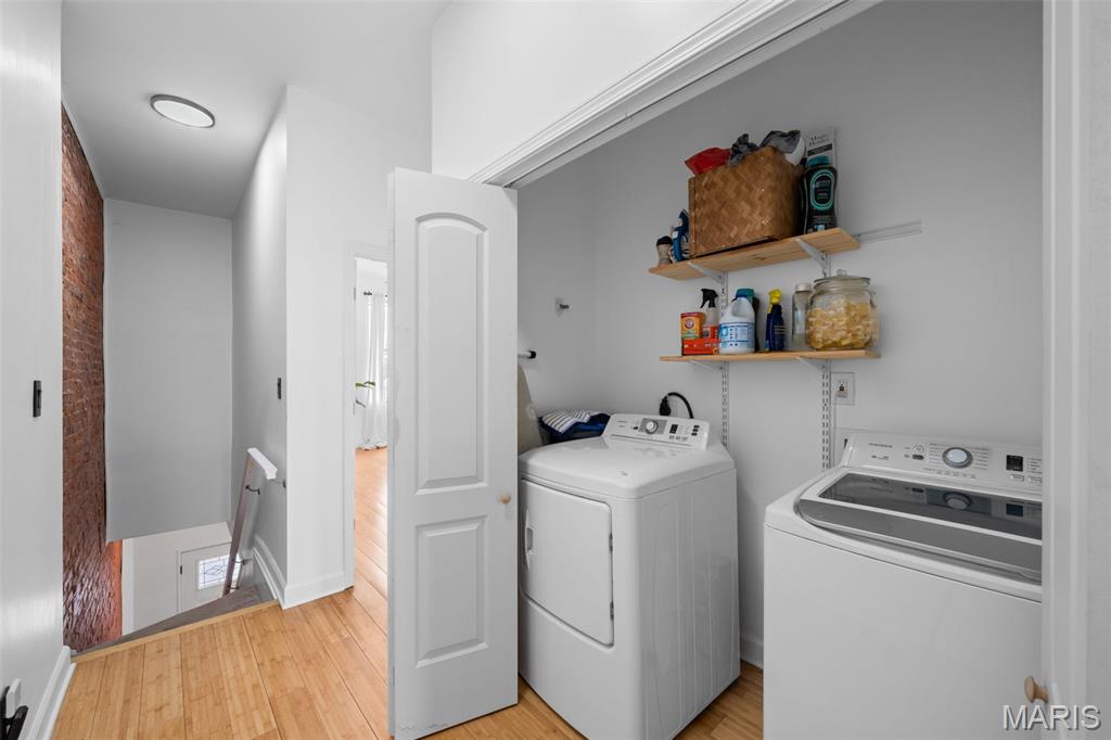 Classic early 1900s brick home in the heart of South St. Louis City’s Gravois Park neighborhood. This classic South City two-story offers 2,328 square feet of living space with a wide-open and inviting main level featuring hardwood floors, recessed lighting, tall ceilings, and striking exposed brick that adds warmth and authentic character. The spacious kitchen blends historic charm with modern updates, offering granite countertops, stainless steel appliances, gas range, subway tile backsplash, and a large center island ideal for everyday living and entertaining. Upstairs, you’ll find three generously sized bedrooms, an updated full bath, and the convenience of second-floor laundry. Additional highlights include a newer roof, updated HVAC, unfinished basement for storage, and a fenced backyard with off street parking. Located just minutes from the Cherokee Street District, Gravois Park, and the restaurants and shops along South Grand, this home delivers space, character, and a vibrant South City lifestyle.