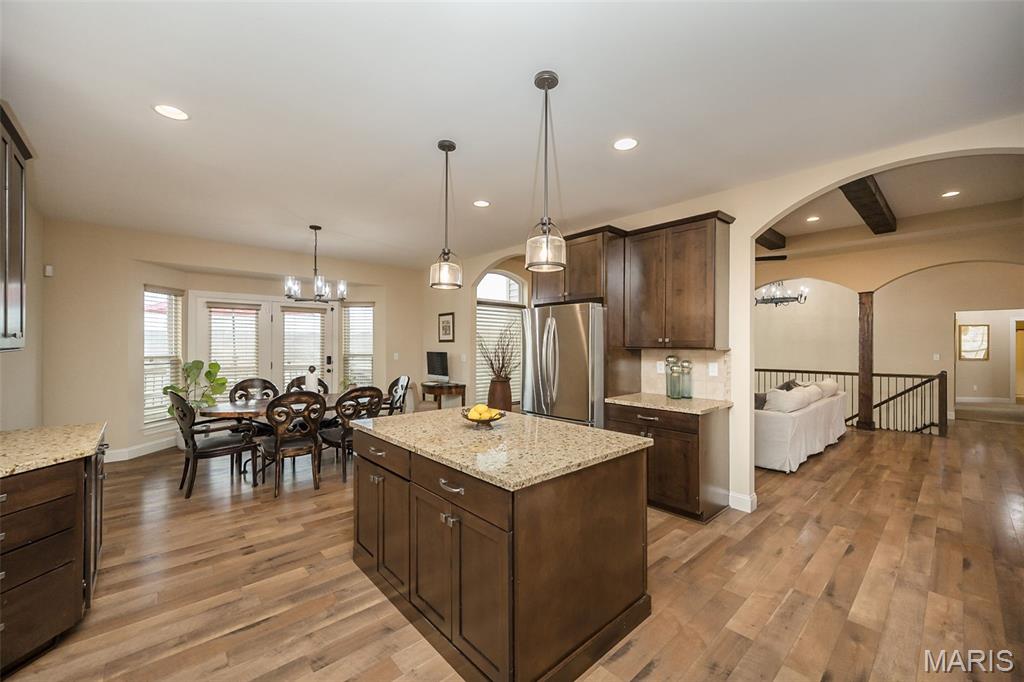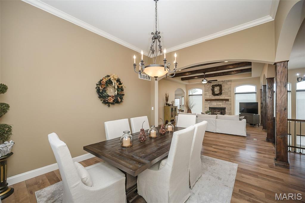 Discover refined living in this exquiste ranch showcasing high-end luxury finishes and a layout perfect for entertaining in sought-after East Hampton Woods. A side-entry 3-car garage, brick and stone facade, and manicured landscaping set the tone, while inside, soaring ceilings, arched doorways, and hardwood floors flow through sunlit spaces anchored by wood beams and a cozy gas fireplace. The chef’s kitchen impresses with a center island, granite countertops, and a custom walk-in pantry, a breakfast room opens to a large composite deck. The great room has with a stunning elevated view overlooking the backyard retreat, offering perfect sunset vistas and sightlines that stretch for miles. A dedicated main-floor office offers true work-from-home convenience, or convert to an additional bedroom. Main-floor laundry for everyday ease. The primary suite is a sanctuary with coffered ceilings, a custom walk-in closet, a spacious spa bath featuring dual sinks, a jetted tub, and a huge shower. An additional main-floor bedroom and full bath provide ideal flexibility. Head down to the lower-level entertainer’s paradise—a sprawling rec room with wet bar, a separate media room, and another bedroom and full bath—perfect for game days, movie nights, and long-stay visitors. Step outside to your private, resort-style backyard oasis: a sparkling, tranquil pool surrounded by lush landscaping—ideal for quiet mornings or weekend gatherings. This is the one—style, substance, and a spectacular setting.