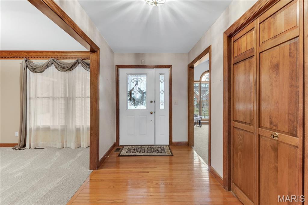 Stunning Atrium Ranch! Over 5000 sq feet of living space. 4 Large Bedrooms, 3.5 baths, 2 car garage. Upgrades include Architectural Shingle roof 2024, HVAC 2024, Carpet 2025, Hardwood floors kitchen area were refinished in 2025. Kitchen Refrigerator stays. Exterior includes 4 gables, brick front, vinyl siding, large deck backing to trees. Interior has Vaulted greatroom/Kitchen/Breakfast Room, wetbar/wineracks, two brick fireplaces, Large Home Office, Dining room, Main Floor Laundry, Hardwood in the Foyer, Kitchen and Breakfast room. Kitchen has center island, wall oven, cooktop stove, microwave, granite countertops, and large pantry. Large Primary Suite with Luxury primary bath. Newly remodeled features include the dual sinks, soaking tub and separate shower. Hall Bath has also been remodeled. Open atrium ranch with wall of windows with lovely greenery. Finished walk out Lower Level with RecRoom, Exercise/Playroom, 4th bedroom, full bath, and large unfinished area for storage. Fantastic Location! Great Price! Shows Well. Come check it out!