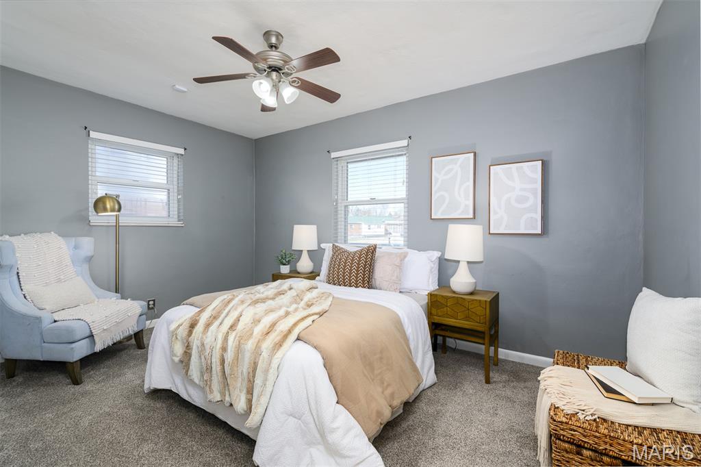 OPEN Sun 3/8 1-3pm! It's your lucky day! An adorable abode packed with updates in a convenient location just came on the market. 9404 Jachurst Lane features cute curb appeal accented by a brand-new architectural roof and downspouts. While stepping in from the covered front porch note the handsome hardwood floors that flow from the spacious living room to the light & bright dining room. The seriously sweet kitchen includes upgraded SS appliances (all stay!), lots of cabinet and pantry storage, and a useful breakfast bar that opens to the living room. Both bedrooms have plush brand-new carpet, along with ceiling fans and nice closets, and are served by the main floor full bath with freshly updated vanity. A unique feature of this home is the convenient finished mudroom area off of the 1-car garage that leads to both the yard and the luxurious lower level. The amount of living space downstairs is both deceiving and amazing: there's a generous family/rec room, sizeable bonus room, huge laundry room/storage den, and even another spa-like full bath. For outdoor entertaining and playing, the backyard is fully fenced and features a patio big enough to fit all of your friends & family and a practical storage shed. Even more to love: the desirable Mehlville SD and the updated HVAC in 2019 for added peace of mind. Don't let your luck run out - check out this move-in ready masterpiece today!