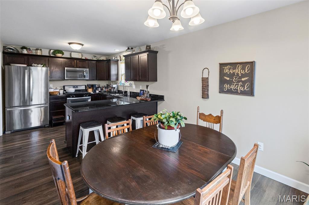 Welcome home to 432 Mockingbird Lane, Waterloo, IL! This well-maintained house offers the perfect mix of comfort and convenience. Step inside to an inviting floorplan designed for everyday living and entertaining. A cozy gas fireplace anchors the spacious living room with a vaulted ceiling and opens to the kitchen, which features extensive cabinets and counter space. The main floor also includes a large primary suite with ample closets and an en suite bath—an ideal retreat for rest and relaxation. You will also find two additional, generously sized bedrooms and a hall bath. The partially finished lower level is made for entertaining. Currently set up as a home theater, the pedestal to elevate seating can be moved to use the space however you like. A wet bar, bathroom, fourth bedroom, and bonus room complete the space. Outside, enjoy a nicely landscaped front yard and a large backyard—a perfect place to relax, garden, play, or host gatherings. As a member of the Westfalen Lake Homeowner Association, you have access to the lake and community clubhouse.