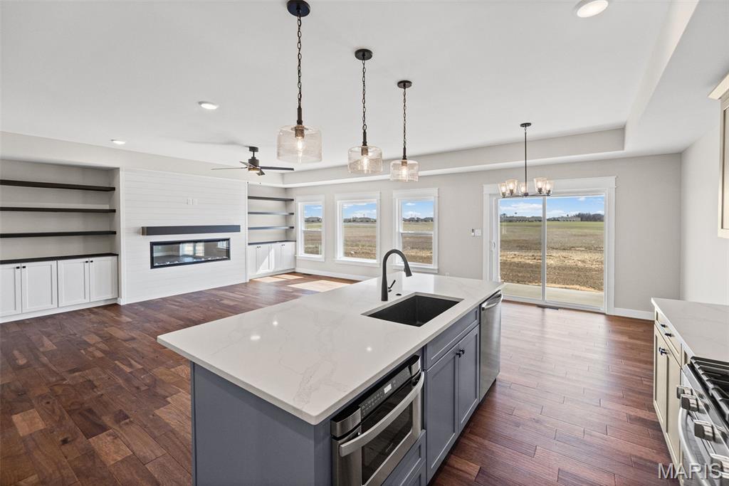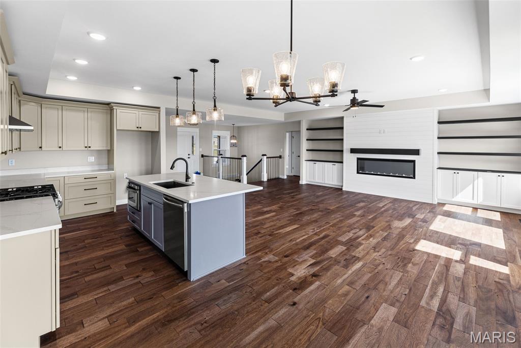 Absolute showstopper! Brand new luxury construction in Troy! This quality built, FIVE bedroom, three bath home offers over 3,500 square feet of living space. Beautiful wood flooring compliments the open concept design, with a well equipped chef's kitchen at the heart of the home. The spacious primary suite offers a spa like retreat, with a stunning walk in shower, his and her vanity/ makeup vanity and spacious walk in closet. Split bedroom floorplan offers privacy for all. Huge family room space, two additional bedrooms and a full bath complete the lower level. Three car garage, shiplap fireplace with built-in cabinets and shelves. All measurements are approximate and not guaranteed.