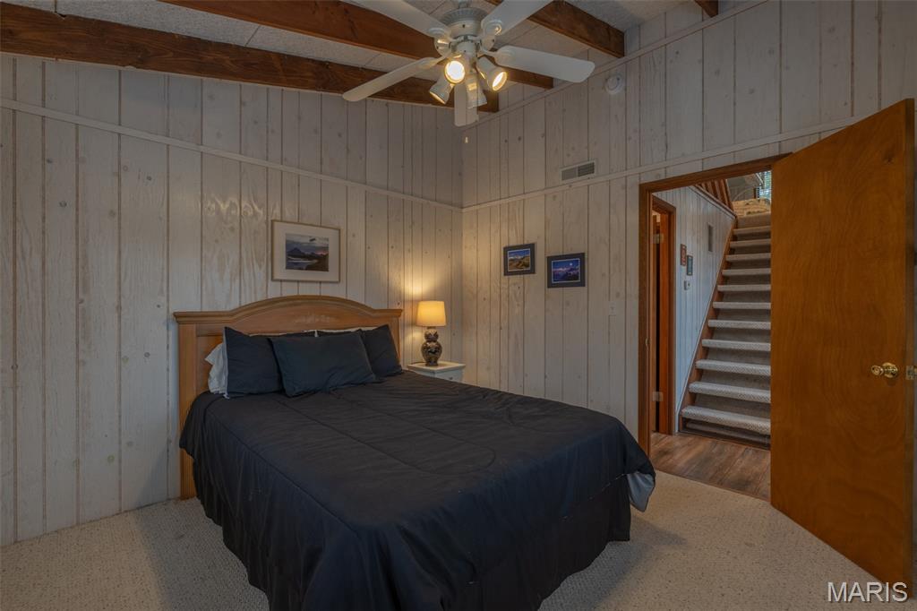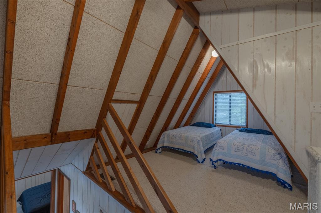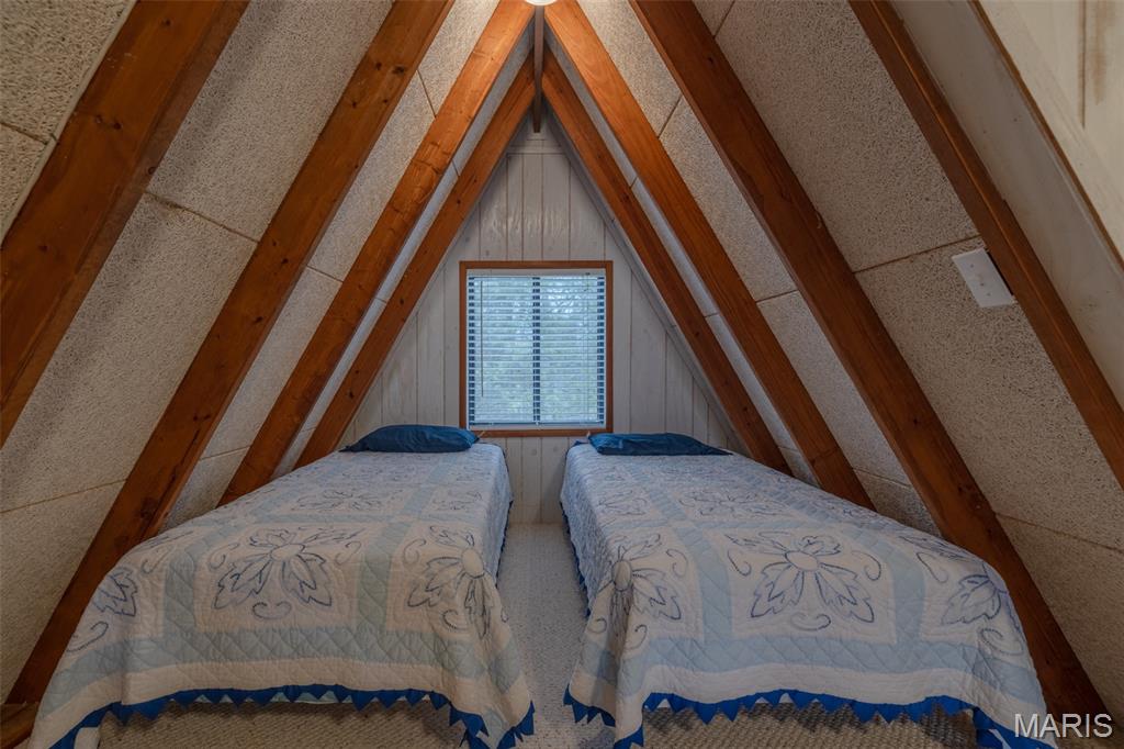 Summer is just around the corner and this lake front chalet at Innsbrook is ready and waiting for you. Clean, furnished, and truly move-in ready, this inviting getaway is tucked among the trees and surrounded by nature. Step inside and you’ll immediately notice the abundance of windows framing peaceful views of the woods and lake. The iconic A-frame living room is a showstopper, featuring three walls of glass that flood the space with natural light. On cool evenings, light the pellet stove and enjoy the warm, relaxing atmosphere that makes this chalet feel like a true retreat. The main level offers a spacious primary bedroom and full bath for easy living. The cute and bright kitchen is ready for meal prep. Upstairs, a generous sleeping loft includes two sets of bunk beds and two twin beds, providing plenty of room for family and guests. Outside, two expansive decks offer incredible space to relax, grill, dine, and entertain. Whether you’re hosting friends or enjoying a quiet morning coffee, there’s room for everyone to spread out and unwind. Follow the path down to your private lakeside dock on Bliss Lake, where you can fish, paddleboard, or simply soak in the peaceful waterfront setting. This special property is being sold mostly furnished (with a few exclusions) and is designated as a second home only. It cannot be used as a rental or primary residence. If you’ve been dreaming of your own place at Innsbrook, this delightful chalet is calling your name.