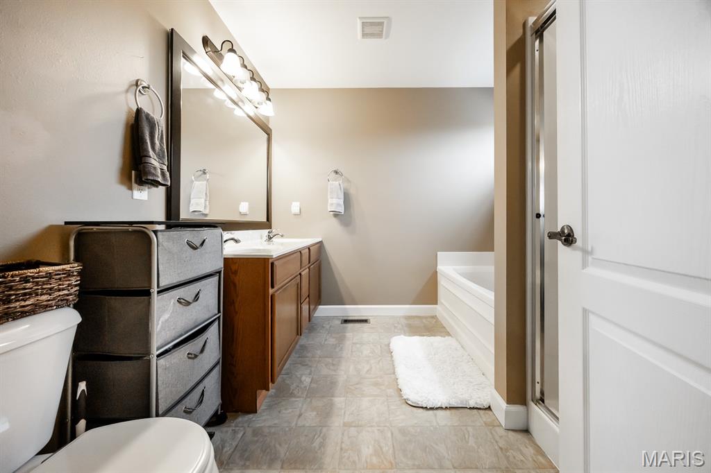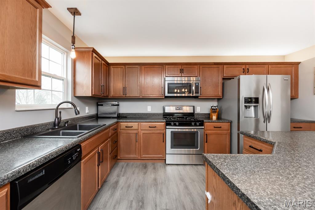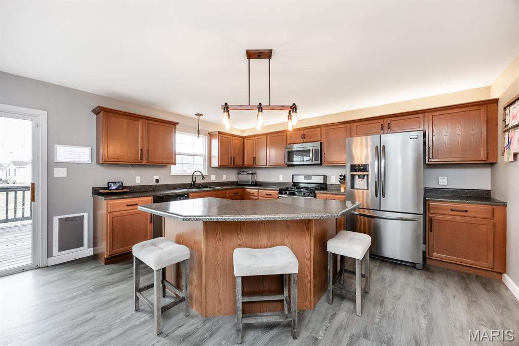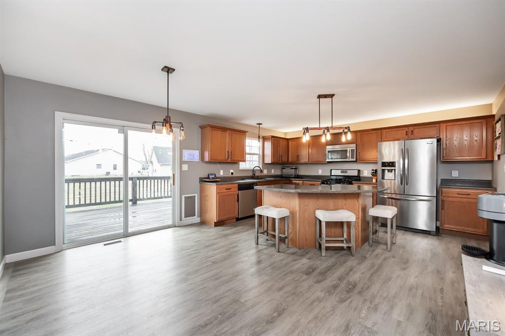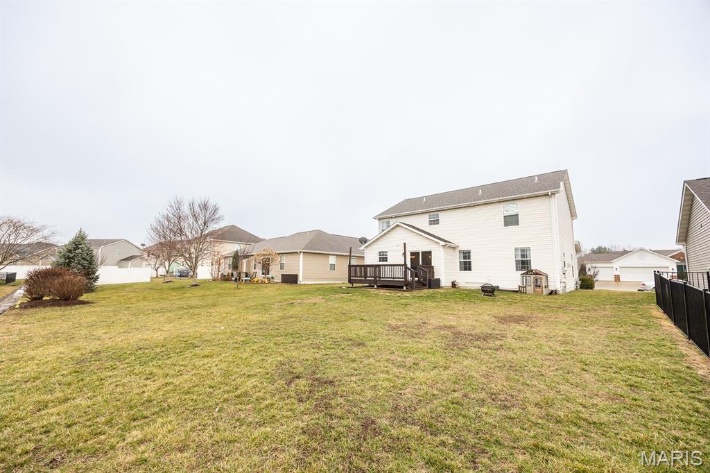 Welcome to this spacious and beautifully maintained 4 bedroom, 3 bathroom two-story home in Mascoutah, offering plenty of room to live, entertain and grow. With a functional layout, thoughtful updates and a full basement, this home is truly move-in ready. The main floor features an inviting living area with a cozy gas fireplace that flows seamlessly into the eat-in kitchen, complete with a large center island and plenty of workspace. Newer vinyl flooring throughout portions of the main level adds a fresh, modern touch. A separate formal dining room provides the perfect space for gatherings or hosting dinner with friends and could be utilized as a home office or playroom. Upstairs, the spacious primary suite offers a relaxing retreat with dual walk-in closets and a private ensuite bathroom featuring a jetted whirlpool tub and separate shower. Three additional generously sized bedrooms provide flexibility for family or guests. The full basement offers endless potential for additional living space, recreation or storage. Step outside to enjoy the large back deck, ideal for entertaining, grilling or simply relaxing outdoors. Conveniently located just minutes from Scott Air Force Base, MidAmerica Airport, Scheve Park, Mascoutah schools, shopping, restaurants and I-64, this home combines comfort, convenience and space in a great location.