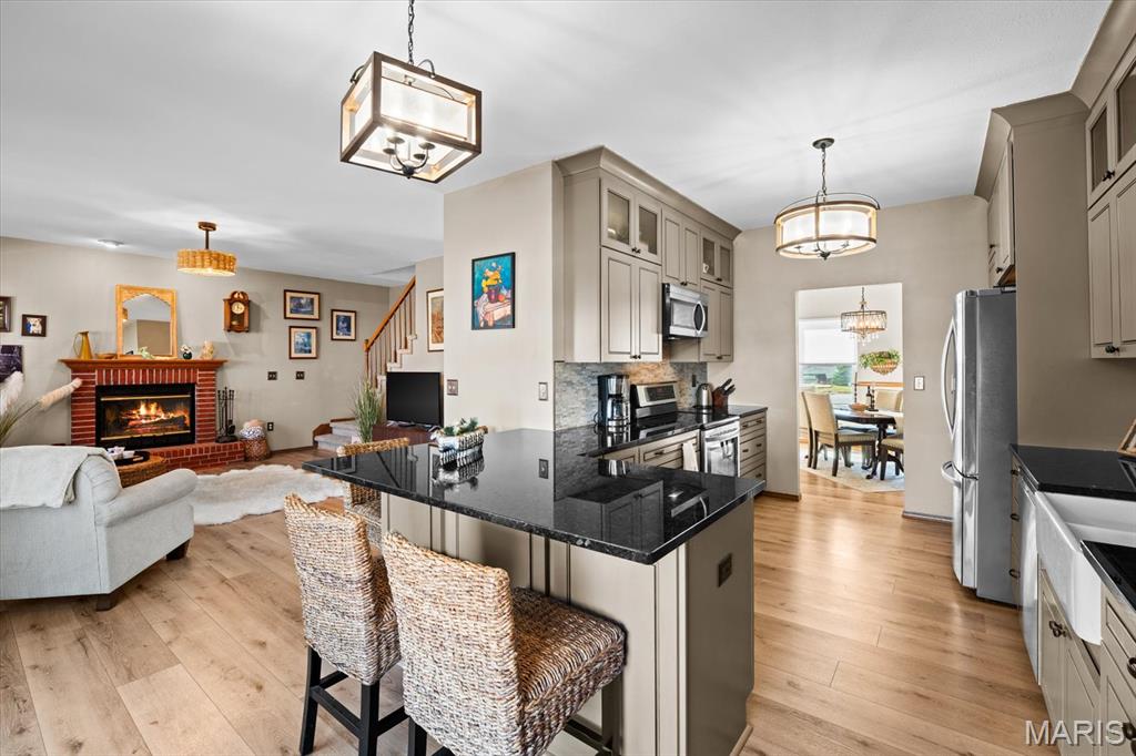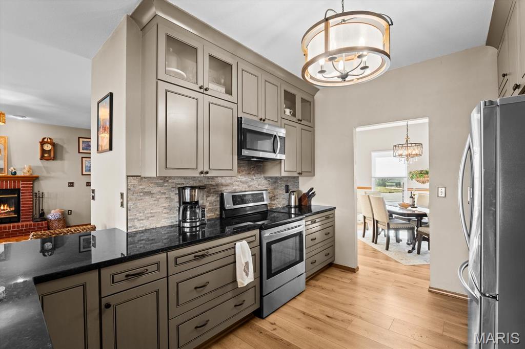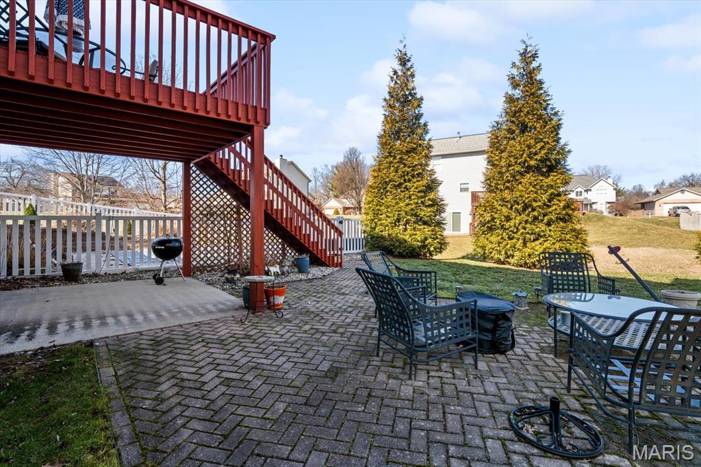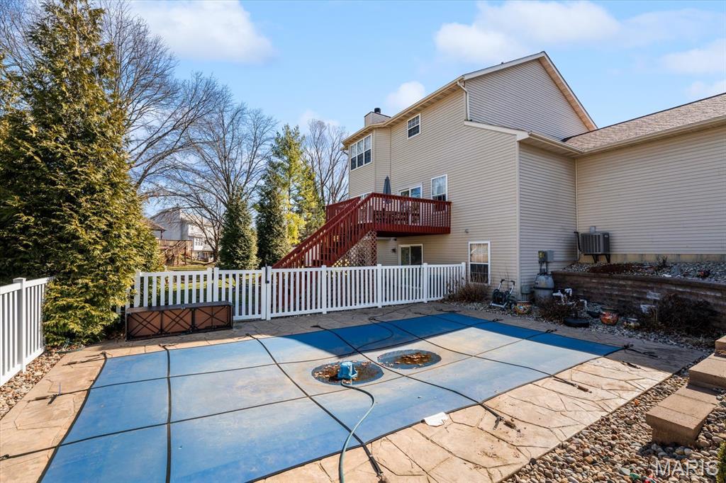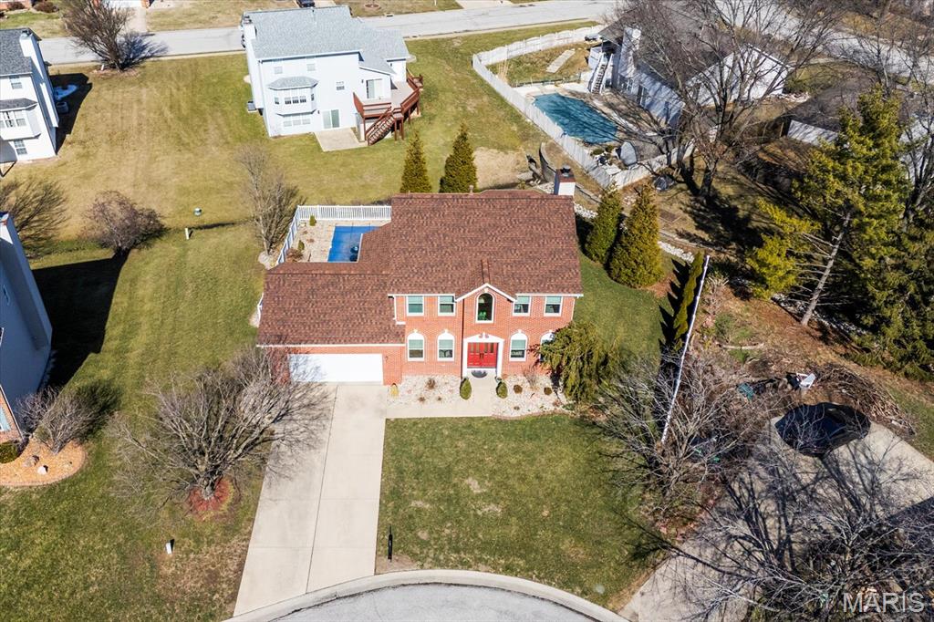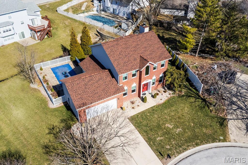 Welcome to 919 Auburn Ct. in Fairview Heights, a beautifully maintained home nestled on a quiet cul-de-sac with great curb appeal and major updates already completed. Step inside to find a warm and inviting layout featuring new flooring, a cozy brick fireplace, and plenty of natural light. The updated kitchen is a standout with granite countertops, stainless steel appliances, custom cabinetry, stone backsplash, and convenient breakfast bar seating that opens nicely to the living area—perfect for both everyday living and entertaining. Upstairs you’ll find spacious bedrooms including a comfortable primary suite with a private bath and a large walk-in closet. Major updates provide peace of mind, including new windows that enhance both efficiency and curb appeal and a roof that is only 2 years old! The backyard is built for entertaining with a low-maintenance saltwater in-ground pool, large patio area, and elevated deck overlooking the fenced yard—creating the perfect space for summer gatherings or relaxing evenings at home. Additional highlights include a 2-car attached garage, finished lower-level living space ideal for recreation or entertaining, and a convenient location near shopping, dining, schools, and easy access to I-64 and Scott Air Force Base. This move-in ready home offers the perfect combination of updates, space, and outdoor living—all in a desirable Fairview Heights neighborhood. Schedule your showing today!