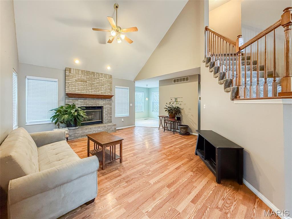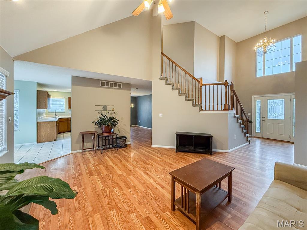 Located in the highly desirable O’Fallon School District, this spacious two-story home offers an ideal combination of convenience, space, and recent updates. The property is within walking distance of St. Elizabeth’s Hospital and just minutes from interstate access to St. Louis and Scott Air Force Base, making it an excellent location for healthcare professionals, military personnel, and commuters. The main level welcomes you with a dramatic two-story vaulted living room filled with natural light and an open staircase leading to the second floor, creating a bright and airy feel. A formal dining room provides space for gatherings, while the eat-in kitchen with breakfast nook offers a comfortable spot for everyday meals. Upstairs, the large primary suite features a private ensuite bath with a soaking tub, providing a relaxing retreat. Two additional bedrooms and a full bath complete the second floor. Additional features include an unfinished basement with excellent storage or future finishing potential, a two-car garage, and an oversized lot offering additional outdoor space. Recent improvements provide peace of mind for the next owner: • New roof – 2025 • New stair carpet – 2025 • Updated flooring upstairs – 2015, 2026 (bedroom) • Furnace and air conditioner – 2015, professionally serviced every year • Refrigerator and range – 2022 with built-in convection and air fryer features With its close proximity to Scott Air Force Base, St. Elizabeth’s Hospital, interstate access to St. Louis, and top-rated O’Fallon schools, this home offers both everyday convenience and long-term value in one of the Metro East’s most sought-after locations.