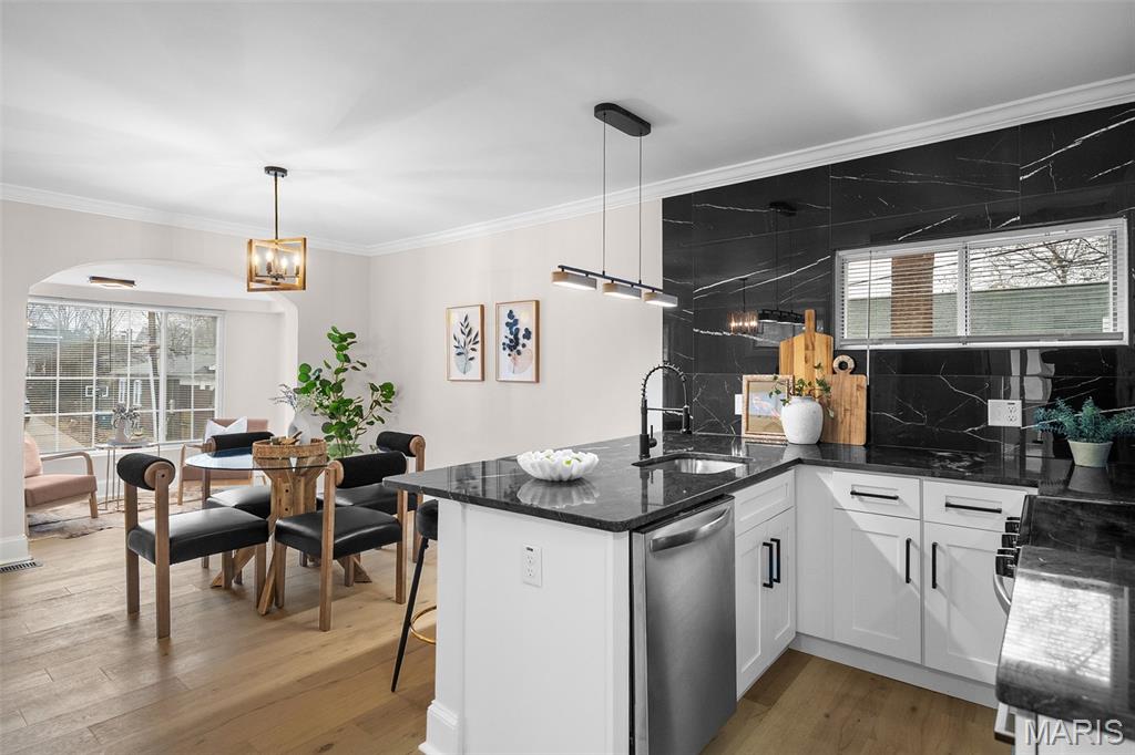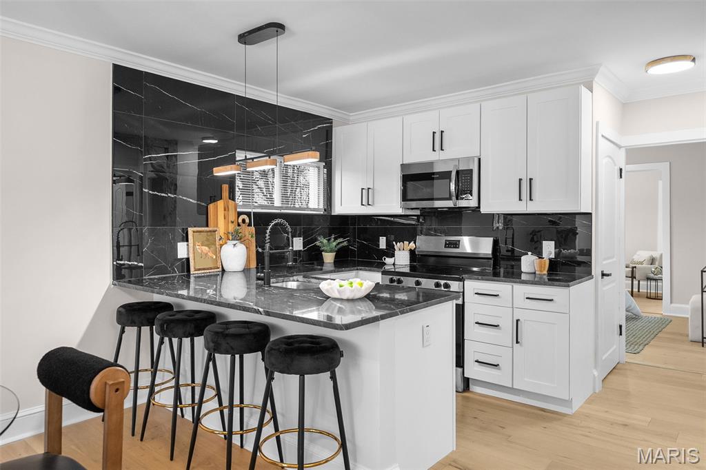 Welcome to Maplewood. Centrally located & a commuter's dream. This home has been tastefully renovated from top to bottom. There's more space here than meets the eye. You are welcomed by a covered front porch. Walk in and note the classy finishes and open floor plan. Natural light everywhere, no need to turn on lights. Cozy living room greets you, dining room for entertaining and front sunroom is perfect for reading and siping on coffee. Kitchen has all the bells and whistles. Solid counters with matching counter to ceiling backsplash, white shaker style cabinets, SS appliances & breakfast bar to chat with guests while cooking! Two large bedrooms. One bedroom has attached office area and large mudroom. Lower level offers more space. Seller even dug out floor to make ceilings taller! 2nd bathroom is equally as beautiful and chic as 1st floor. Laundry room. Storage Room. Outside: a deck large for lounging and a grill! Back yard is large. Plenty of room for FIDO and gardens! Located in desired Maplewood Schools. Maplewood offers wonderful dining & hip pub options on buzzing Manchester Street. Small town vibe with lots of local independent shops too. Grocery stores and shopping are at your fingertips- no need to shop anywhere else. There is even an annual Coffee Crawl! This home is almost brand new- NUMEROUS updates and low maintenance. Come and check out this cutie before it's too late.
