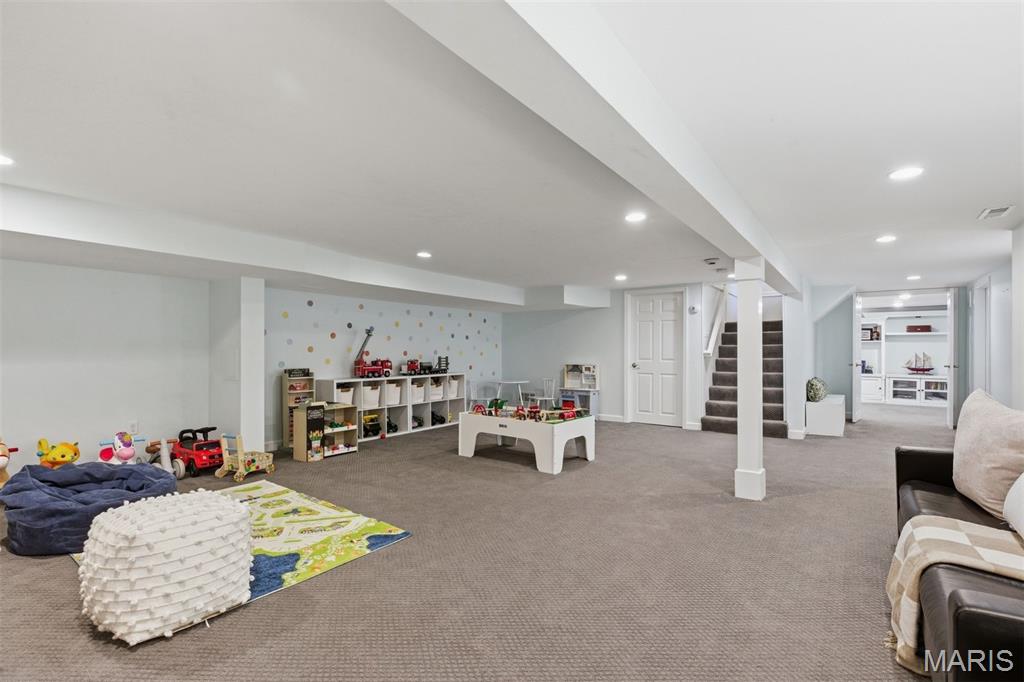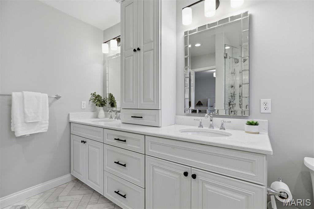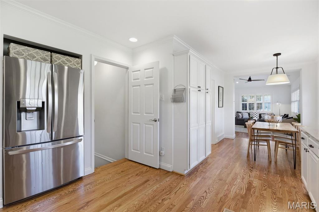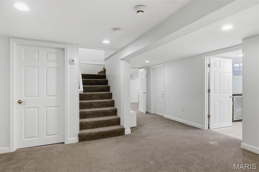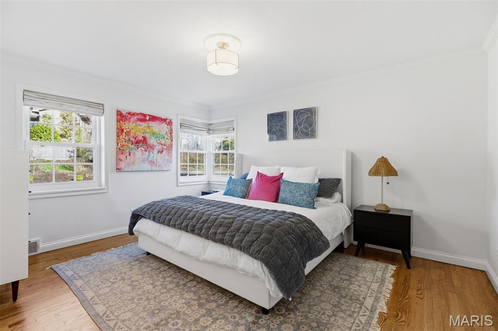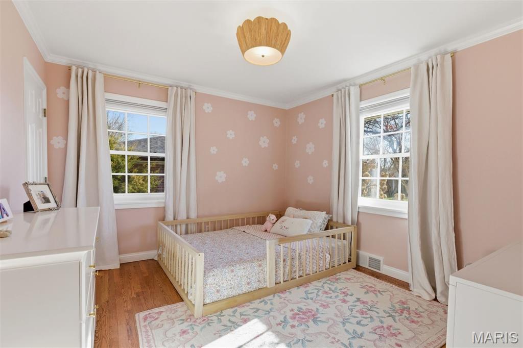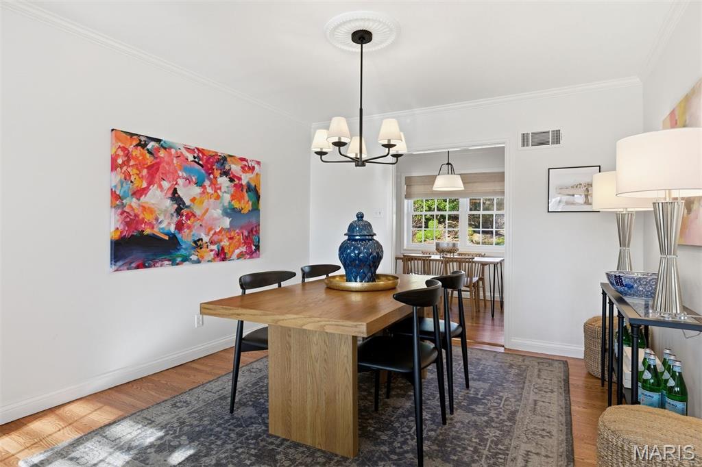 Space, light, and effortless ranch living—set on a rare .4-acre lot in sought-after Warson Woods. This beautifully refreshed 4-bedroom, 3-bath residence offers an exceptional blend of timeless design and modern comfort. Expansive windows and warm hardwood floors create a bright, airy atmosphere throughout the main living spaces, where the gracious living room centers around a classic fireplace framed by custom built-ins, offering both charm and function. The adjoining dining area flows effortlessly for entertaining, while the bright white kitchen features generous cabinetry, stone countertops, stainless appliances, and a sunny breakfast space overlooking the backyard. The primary suite is a peaceful retreat with abundant natural light and generous proportions, while two additional bedrooms and well-appointed baths provide flexible living for guests, family, or work-from-home needs. The finished lower level adds impressive additional living space, offering a large recreation area ideal for movie nights, gatherings, or play, along with a full bath and ample storage. Outdoors, the property truly shines. The expansive .4-acre lot creates a rare sense of privacy and openness, with a spacious patio perfect for dining and entertaining. A tranquil water feature adds a soothing focal point, creating a backyard setting designed for relaxation and connection. With its airy interiors, beautifully scaled living spaces, and coveted Warson Woods location, this home offers an exceptional opportunity.