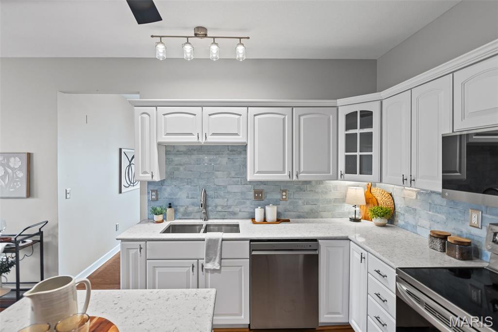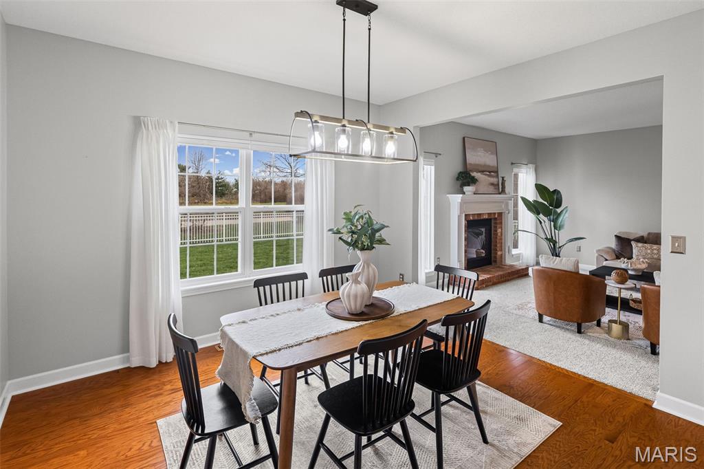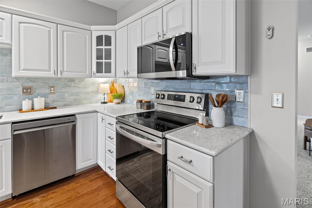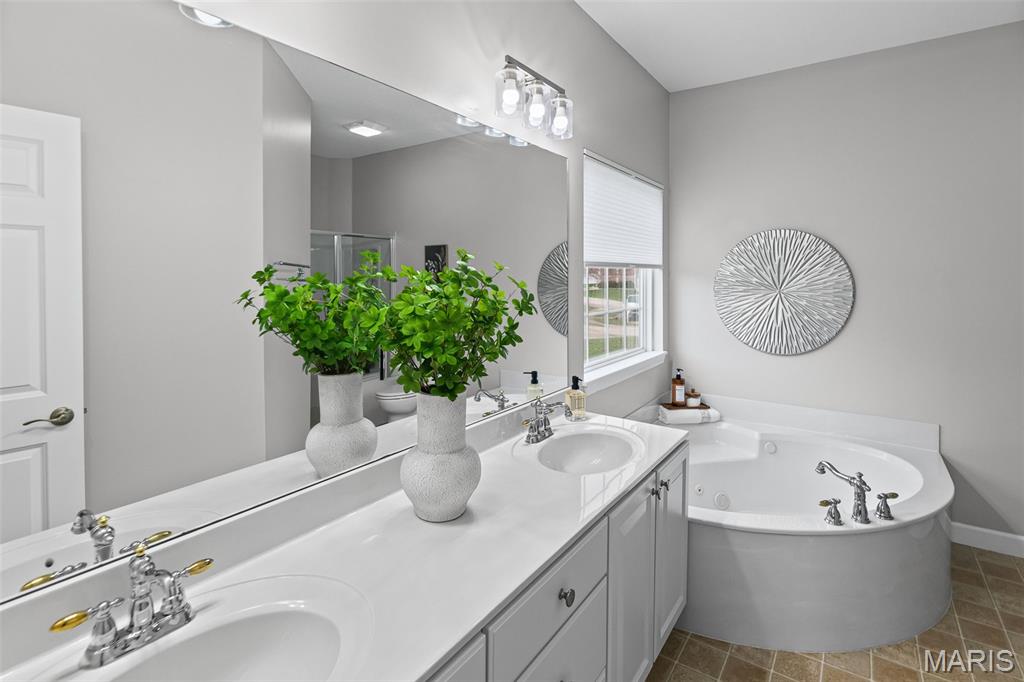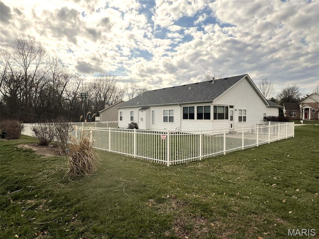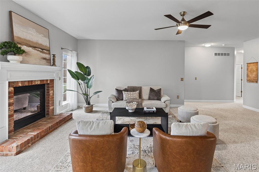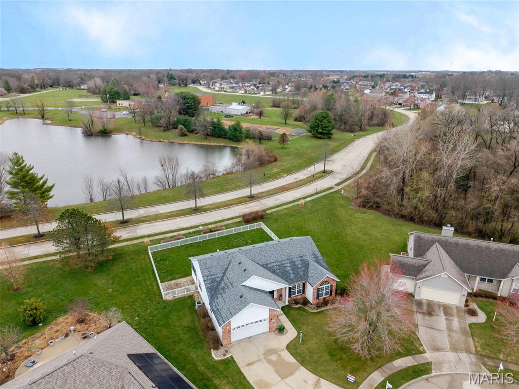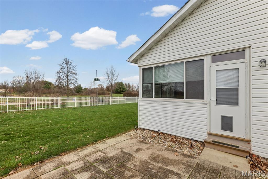 Welcome to this beautifully maintained custom ranch in The Oaks, ideally situated on a quiet cul-de-sac. Offering approximately 2,300 square feet of living space, including a 3-season room and finished lower-level family room, this home blends comfort, style, and functionality. The inviting entry opens to a spacious great room with vaulted ceilings and a gas fireplace, creating the perfect gathering space. The formal dining room flows seamlessly from the living area, offering plenty of room for entertaining or the flexibility to serve as a large home office. The updated kitchen features white cabinetry, quartz countertops, subway tile backsplash, stainless steel appliances, and a center island with seating. There is also an adjoining breakfast room with French doors leading to the light-filled 3-season room, an ideal spot for morning coffee or relaxing in the evening. The primary suite includes a walk-in closet and private bath with double vanity, soaking tub, and separate shower. Two additional bedrooms, a full hall bath, and main-floor laundry complete the main level. The lower level offers a large finished family room, perfect for movie nights, hobbies, or a playroom, along with abundant storage space with built-in shelving. Step outside to enjoy the brick patio and fenced backyard, providing space for outdoor entertaining and pets. Conveniently located just minutes from restaurants, shopping, and easy access to I-55. All appliances to stay, including washer and dryer. Roof replaced in 2024.