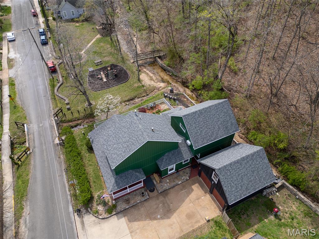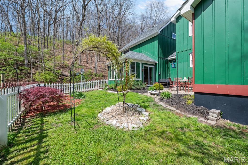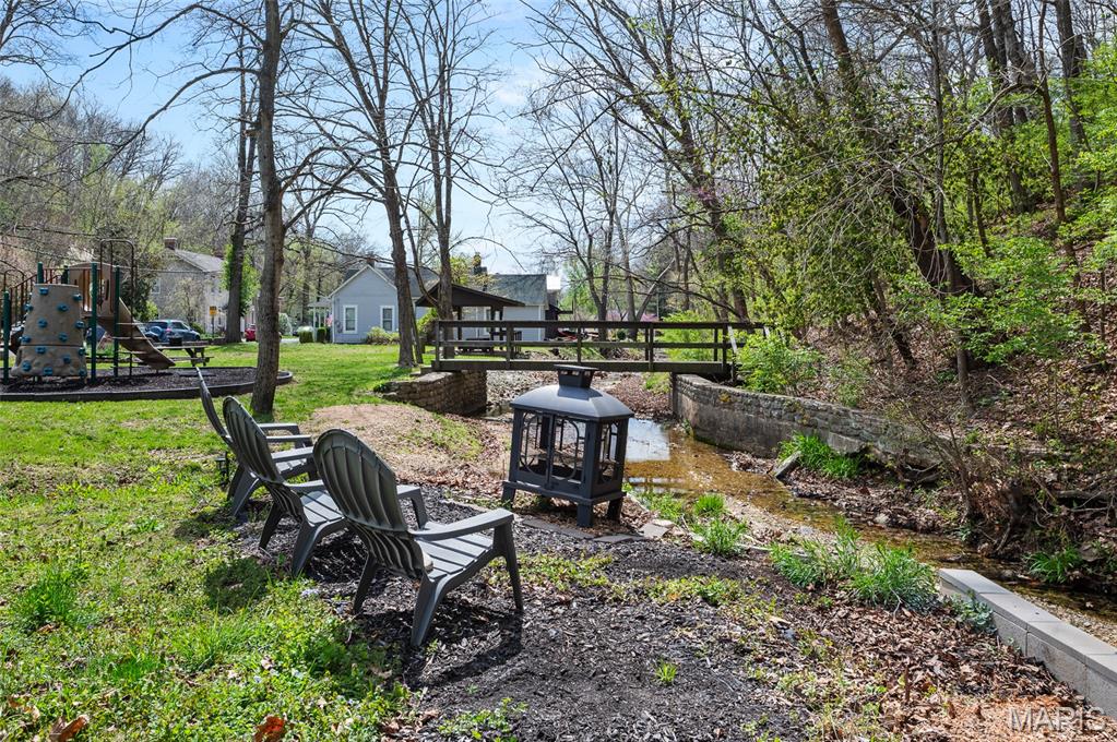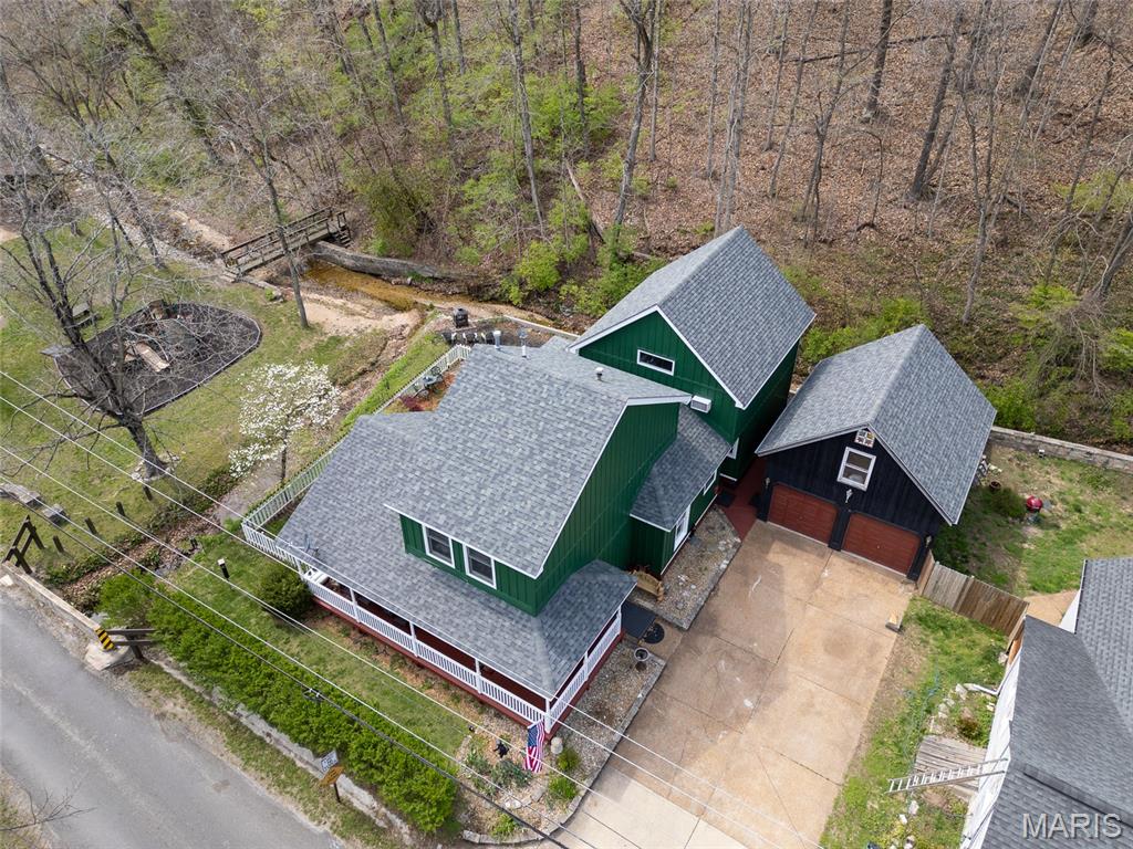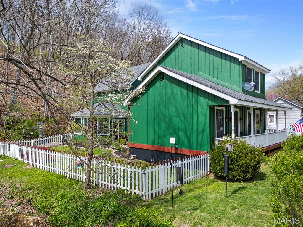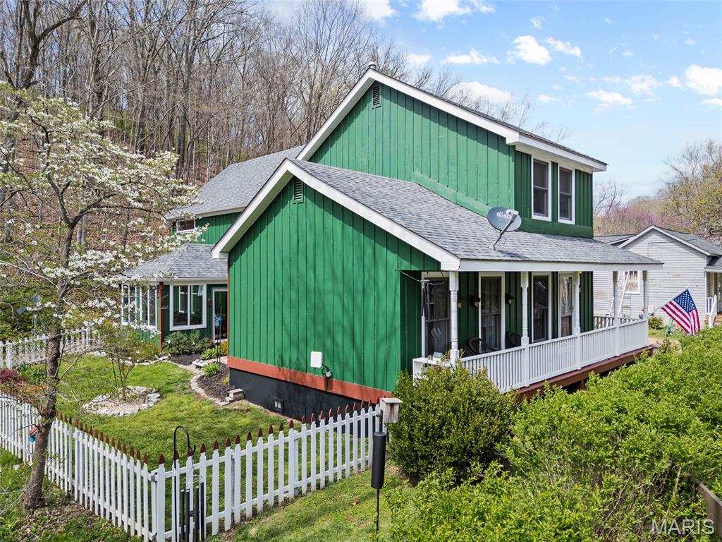 Step into a truly one-of-a-kind opportunity at 67 Mill in the historic village of Elsah—where timeless character meets modern comfort in a serene, storybook setting. Thoughtfully designed to honor the traditional Holland heritage of its owners, this charming home showcases distinctive board and batten siding and sits nestled beside a peaceful park and gently flowing creek. Inside, you’ll find a spacious and versatile layout featuring 4 bedrooms with a desirable split-bedroom floor plan, including a main-floor primary suite for ultimate convenience. The home offers 2.5 baths, main-floor laundry, and a dedicated office with tranquil views overlooking the woods and water—perfect for working from home, now made even easier with newly available high-speed internet. Designed for both relaxation and entertaining, the home boasts three separate living areas: a welcoming living room, a cozy family room, and a light-filled sunroom that brings the outdoors in. Recent updates provide peace of mind and modern appeal, including a new roof, siding, gutters with leaf guards, fresh paint, updated trim, expanded living space, new fencing, an inviting fire pit, and updated appliances. Outside, the meticulously landscaped yard is a true retreat, highlighted by a stunning retaining wall that gracefully separates the home from the creek. The oversized detached 2-car garage includes a loft area ready to be finished—ideal for additional living space, a studio, or a private getaway. With regular septic maintenance and quarterly service checks already in place, this home has been lovingly cared for at every turn. Located just minutes from local attractions like Raging Rivers, the Great River Road, and Grafton, you’ll enjoy the perfect blend of privacy, charm, and accessibility. Rare, refined, and rich with character—this is more than a home; it’s a lifestyle. Schedule your private showing with your favorite agent today and experience the magic of Elsah living.