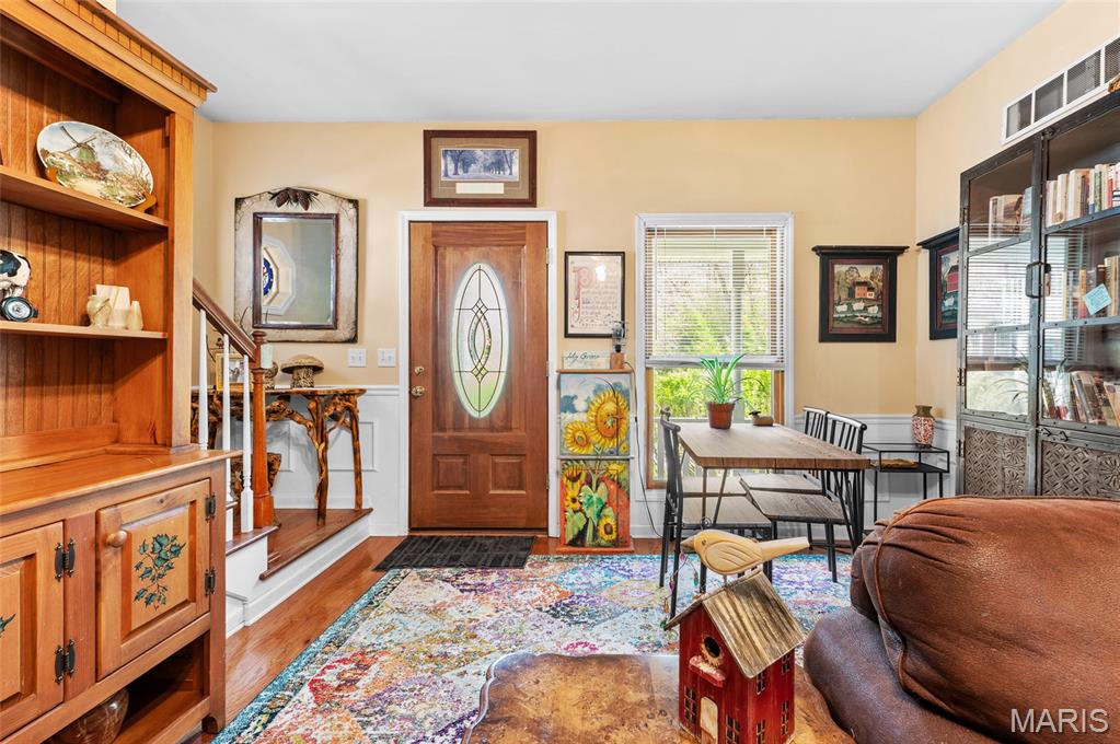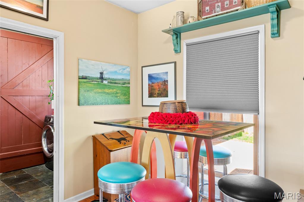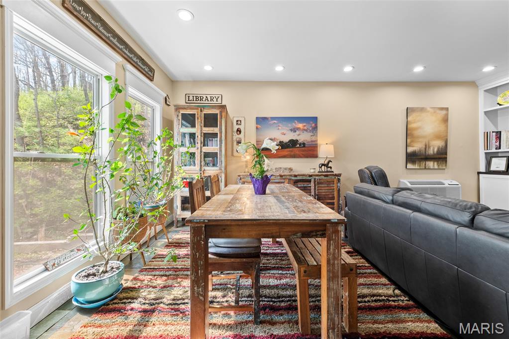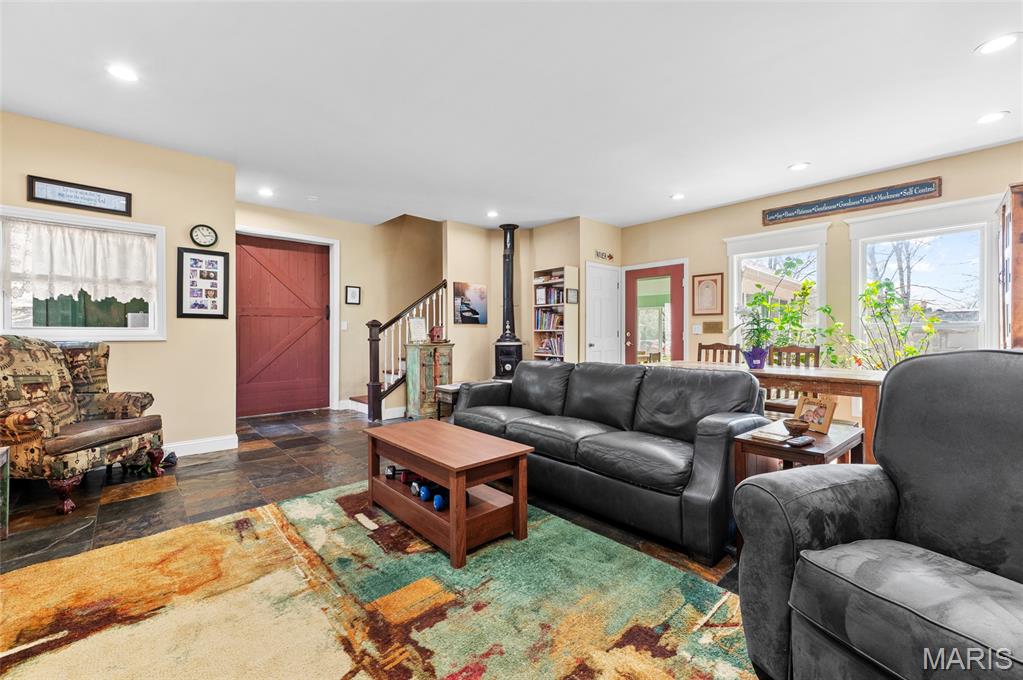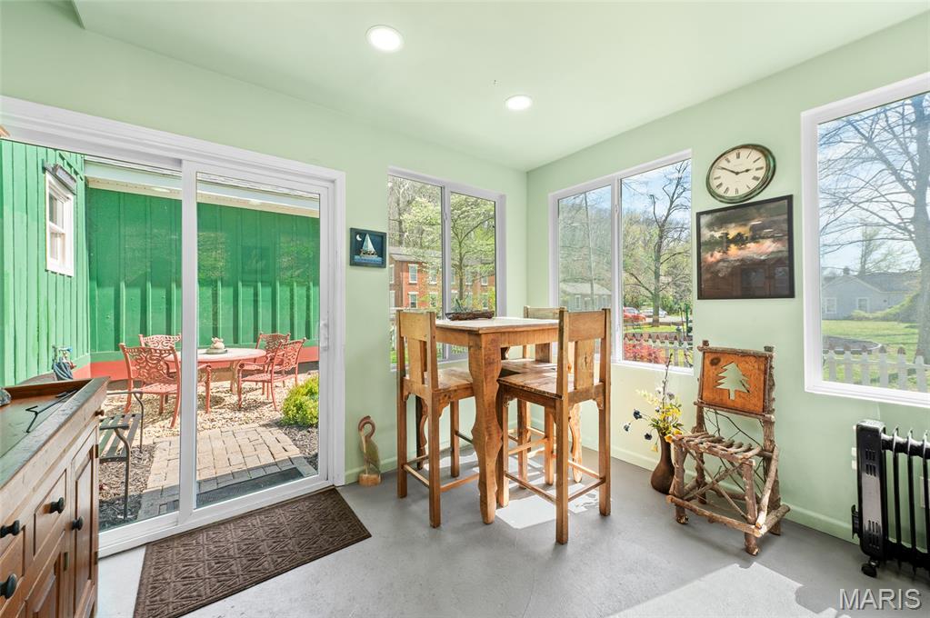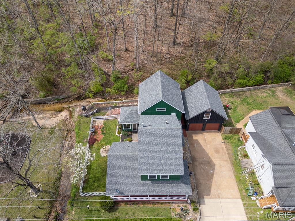 Step into a truly one-of-a-kind opportunity at 67 Mill in the historic village of Elsah—where timeless character meets modern comfort in a serene, storybook setting. Thoughtfully designed to honor the traditional Holland heritage of its owners, this charming home showcases distinctive board and batten siding and sits nestled beside a peaceful park and gently flowing creek. Inside, you’ll find a spacious and versatile layout featuring 4 bedrooms with a desirable split-bedroom floor plan, including a main-floor primary suite for ultimate convenience. The home offers 2.5 baths, main-floor laundry, and a dedicated office with tranquil views overlooking the woods and water—perfect for working from home, now made even easier with newly available high-speed internet. Designed for both relaxation and entertaining, the home boasts three separate living areas: a welcoming living room, a cozy family room, and a light-filled sunroom that brings the outdoors in. Recent updates provide peace of mind and modern appeal, including a new roof, siding, gutters with leaf guards, fresh paint, updated trim, expanded living space, new fencing, an inviting fire pit, and updated appliances. Outside, the meticulously landscaped yard is a true retreat, highlighted by a stunning retaining wall that gracefully separates the home from the creek. The oversized detached 2-car garage includes a loft area ready to be finished—ideal for additional living space, a studio, or a private getaway. With regular septic maintenance and quarterly service checks already in place, this home has been lovingly cared for at every turn. Located just minutes from local attractions like Raging Rivers, the Great River Road, and Grafton, you’ll enjoy the perfect blend of privacy, charm, and accessibility. Rare, refined, and rich with character—this is more than a home; it’s a lifestyle. Schedule your private showing with your favorite agent today and experience the magic of Elsah living.