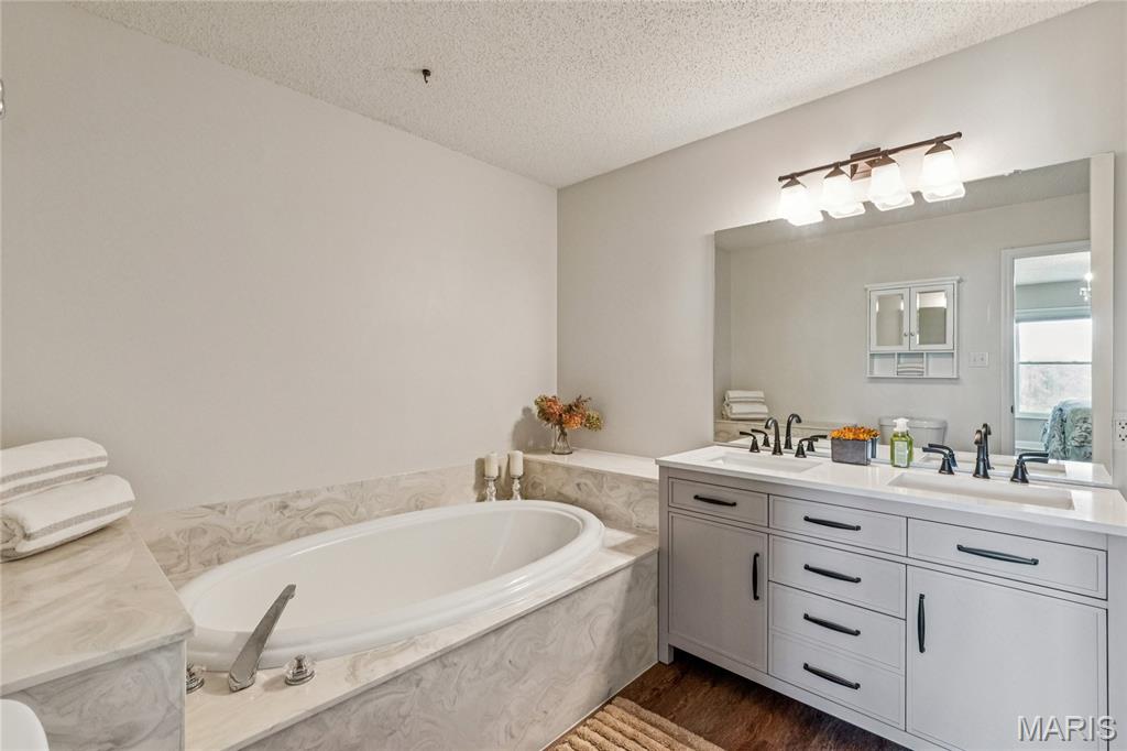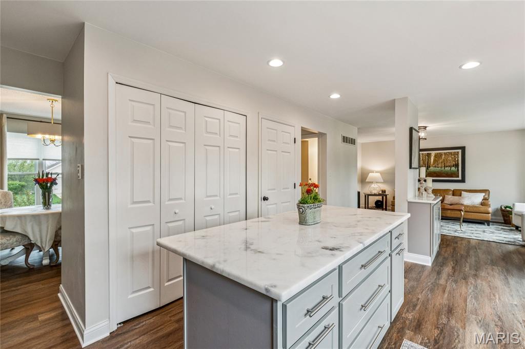 Rare opportunity awaits in sought-after Monticello Manor~ this spectacular home is situated on a private courtyard overlooking the tranquil fairways of Persimmon Woods Golf Club. Inviting curb appeal sets the tone for this residence with classic style and comfort in the details. Passionately renovated and meticulously maintained, this home offers functional space to live, work and entertain! The main level showcases a stunning kitchen with walls reconfigured to create an open floor plan featuring marble topped cabinetry, premium appliances~ Samsung smart refrigerator and double ovens, built-in spice rack and room for friends and family to sip and chat at the center island. A gracious dining room, coffee bar, family room and flexible living room or home office complete the main level. The remodeled staircase cascades to a serene primary bedroom suite ~ with a spa-inspired bath featuring a step-in shower, soaking tub and walk-in closet. Three additional comfy bedrooms and a renovated hall bath with frameless LED front light and backlit anti-fog vanity mirror complete the second level. Enjoy the sights and sounds of nature, peaceful mornings and starry nights out back with room to relax on the deck overlooking the private, tree-lined backyard. Move right in, unpack and start enjoying your new home with so many desirable features and upgrades: new architectural shingle roof - 2025, newer windows, HVAC 2021, newer hot water heater 2022, new overhead garage door opener with ability to operate via WiFi app or Alexa, kitchen and bath renovations, New LVP flooring, programmable smart lighting in living, dining & primary bedroom and thermostat controlled by app. The Monticello community offers three pools~ one just a short stroll down the street on Old Stone, a club house and tennis / pickle ball courts! Just minutes from highway access, top-rated schools, shopping and everyday conveniences.