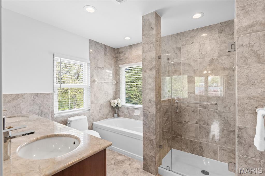 If you’ve been dreaming of a home that combines modern amenities, pride of ownership, and impeccable condition, this property delivers all that and more. Its crisp, attractive curb appeal offers just a glimpse of the quality and style that await inside. Step into a bright, open floor plan enhanced by rich new wood flooring—an ideal setting for both everyday living and entertaining. A welcoming den overlooks the front yard, while the generously sized dining room flows seamlessly into a stunning kitchen designed to impress. Highlights include an oversized center island with beautiful granite countertops, a six-burner KitchenAid gas stove with downdraft exhaust fan, abundant white cabinetry, and a Samsung refrigerator with a built-in TV screen. The kitchen also provides direct access to a covered patio, perfect for alfresco dining and outdoor gatherings. The spacious family room offers a comfortable place to relax and opens to an oversized deck and large backyard, creating an effortless indoor-outdoor lifestyle. Upstairs, the home continues to impress with a spacious primary suite featuring an updated full bathroom and a walk-in closet. Three additional bedrooms and a second full bathroom complete the upper level. The lower level adds even more versatility with a large recreation room, two bonus rooms, and a half bath. Direct access from the two-car garage into the kitchen adds everyday convenience. Move-in ready and meticulously maintained, this exceptional home truly checks every box—your dream home awaits.