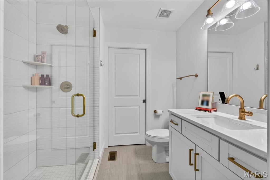 Beautifully designed story-and-a-half home offering the perfect blend of comfort, style, and ease. The open floor plan is ideal for everyday living and entertaining. Rich hardwood floors run throughout the main level, complemented by a light-filled great room that flows easily into the breakfast room and stunning kitchen. The kitchen features an oversized center island, designer cabinetry, and quartz countertops. The main floor primary suite provides a private, peaceful retreat with a spacious walk-in closet and a luxurious bath complete with a freestanding tub and walk-in shower. Upstairs, two generously sized bedrooms each offer their own en-suite baths, creating comfortable and private spaces for family or guests. The finished lower level expands the living space with a family room, an additional bedroom, and a full bath, perfect for hosting or relaxing. Lawn care, landscaping, irrigation, and snow removal are included in monthly HOA, offering added convenience. Ideally located near shopping, dining, and major highways, this move-in ready home offers a simplified lifestyle in a fantastic location.
